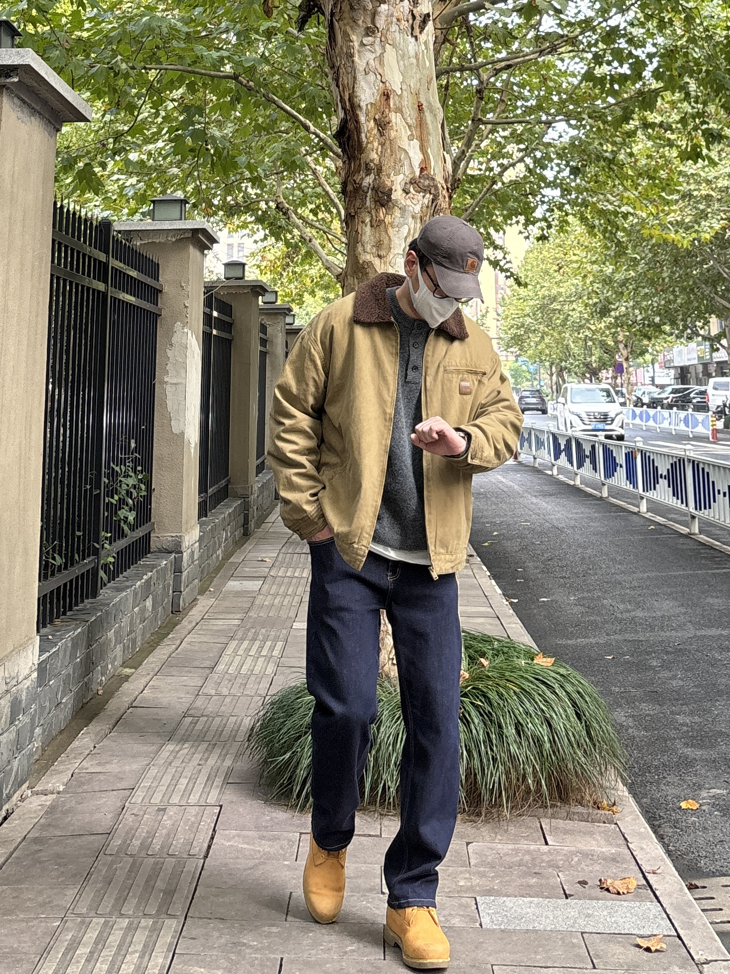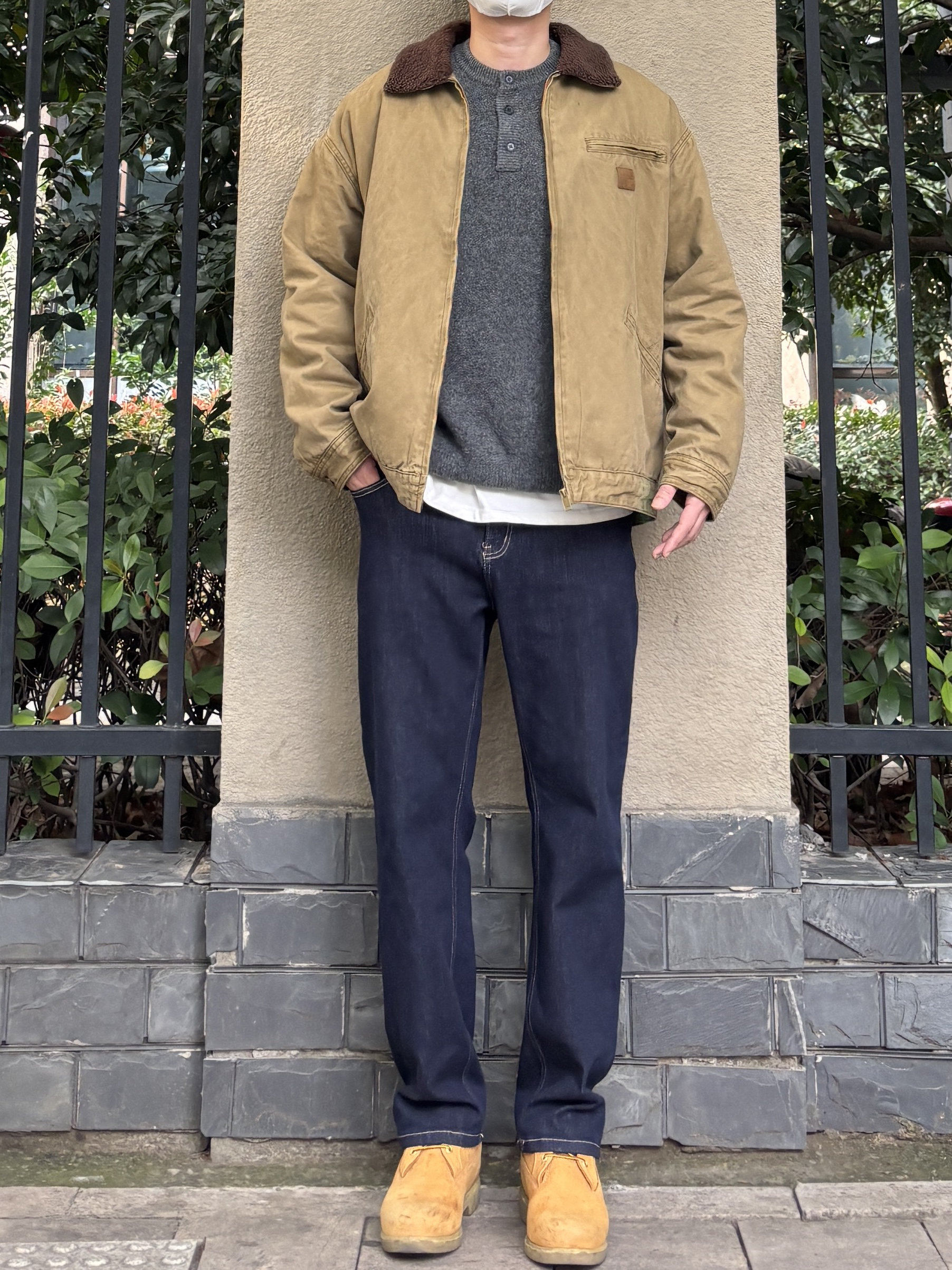 冬天还是得穿工装风,今天这套贼拉有型 底特律羊羔绒棉服夹克+灰色亨利领针织衫,帅的同时也别忘了保暖。 搭配原色直筒牛仔裤和经典中帮工装靴,美式风格,硬朗帅气😎 - 今日穿搭 衣服裤子:NICE LILI 鞋子:timberland