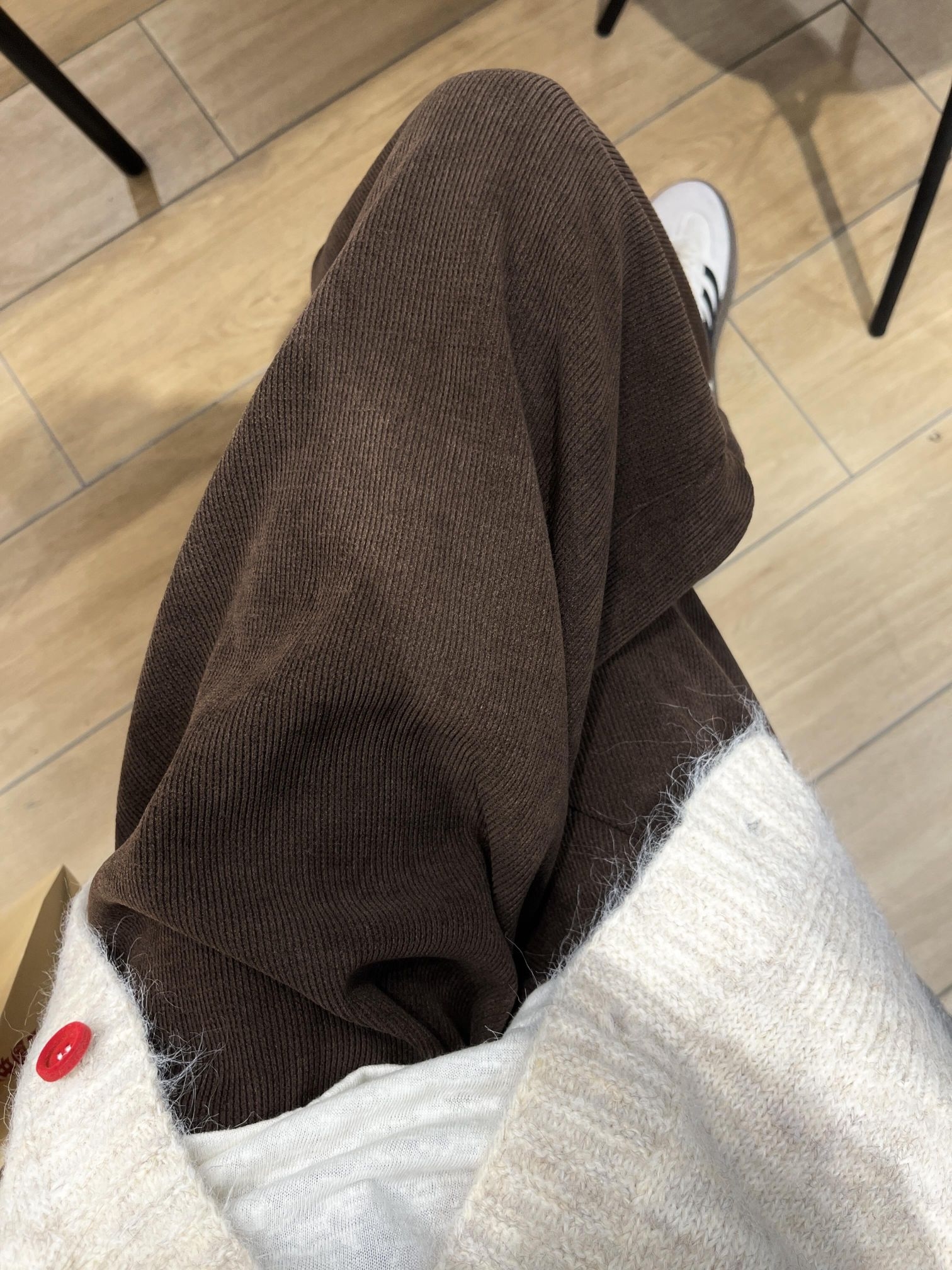 🍂 米白针织开衫+深棕阔腿裤=温柔感满分!红色纽扣点缀瞬间提亮,搭配白色厚底鞋悄悄增高。灯芯绒裤脚露出黑色绒里,保暖细节超贴心~ 同色系叠穿高级感拉满:浅灰毛衣配棕裤慵懒舒适,针织材质软fufu治愈力MAX。商场购物or居家休闲都能打,购物袋手机成自然道具! ✨穿搭小心机: 红蓝棕纽扣打造视觉焦点 阔腿裤+厚底鞋=长腿公式 柔软材质碰撞增加层次感 日常场景随手拍出生活化时尚 秋冬穿搭...