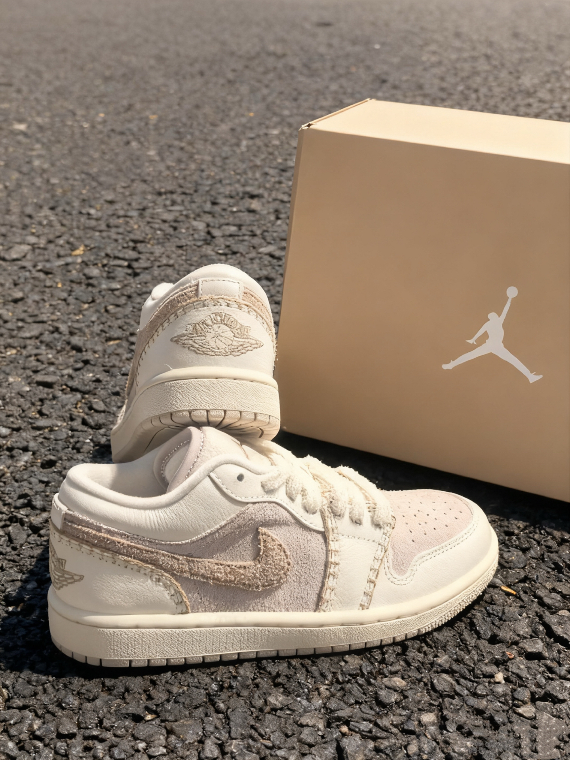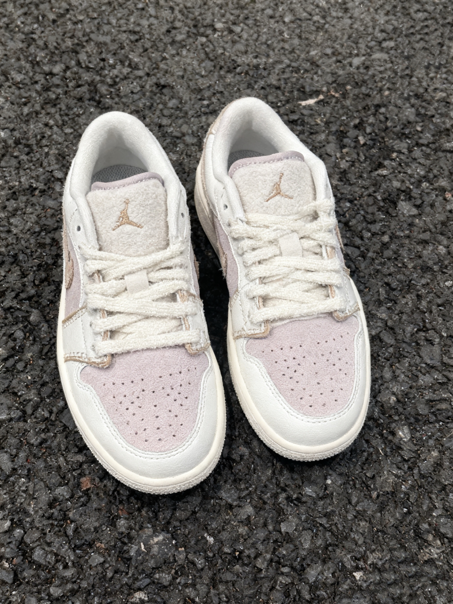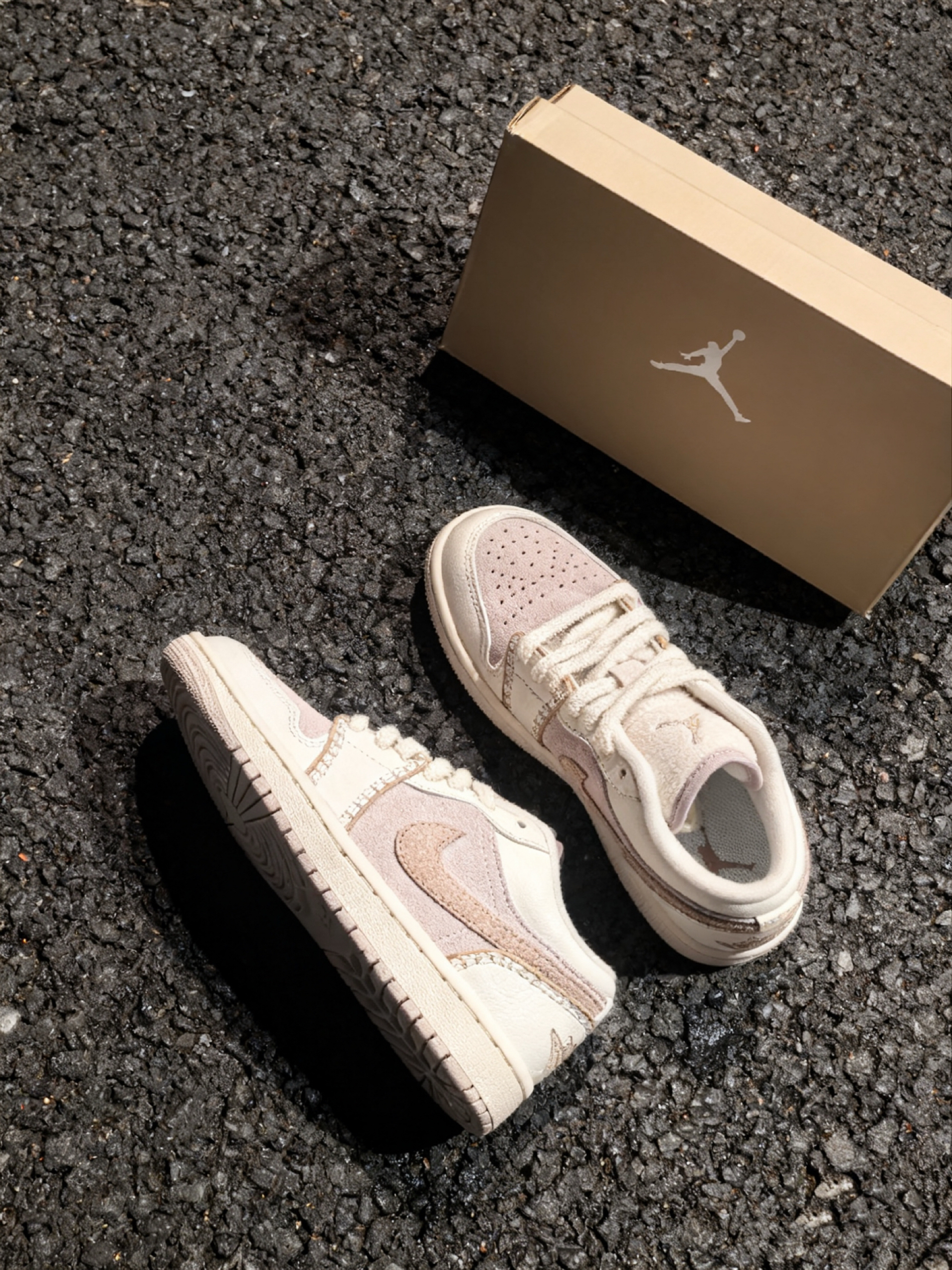 谁懂啊家人们!刚拆箱这双粉白AJ的时候,我直接被颜值戳中💘 麂皮+毛绒的拼接也太会了吧,上脚软乎乎的像踩棉花,走一天逛街脚都不酸(本扁平足狂喜!)。 粉调是那种低饱和的淡紫粉,配牛仔裤、小裙子都巨搭,随便一穿就是温柔氛围感🥰 细节也很戳——鞋舌的小标是刺绣的,鞋带毛茸茸的很有质感,连鞋盒都精致到想当收纳盒! 唯一小缺点就是麂皮有点容易粘灰(但拿湿纸巾擦两下就没了),还有就是有点小贵,但架不住它...
