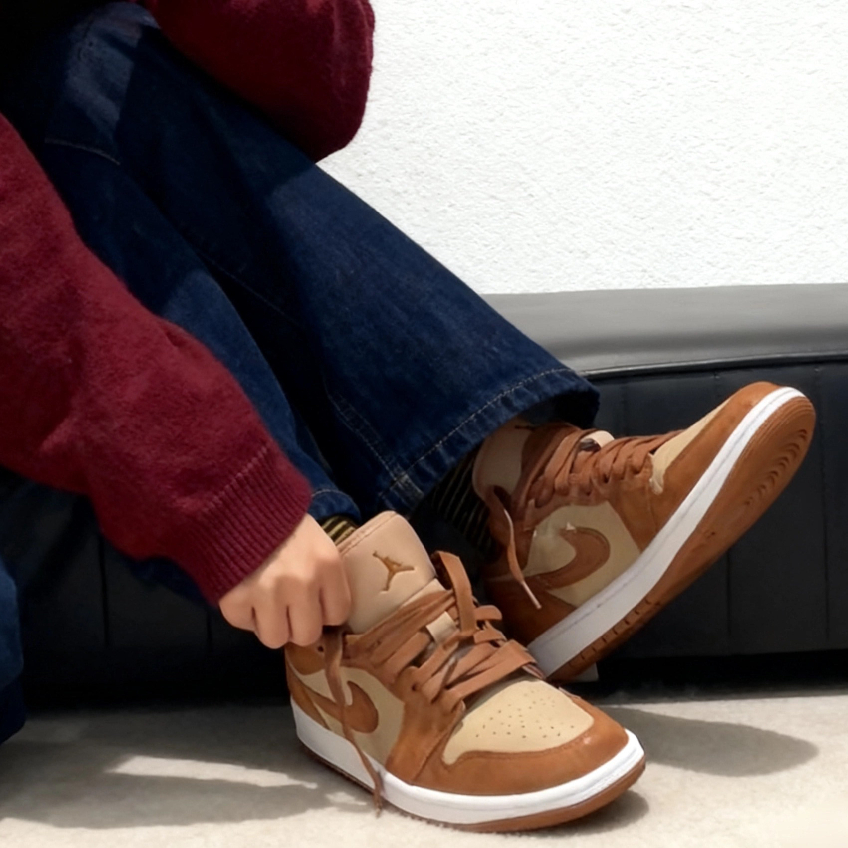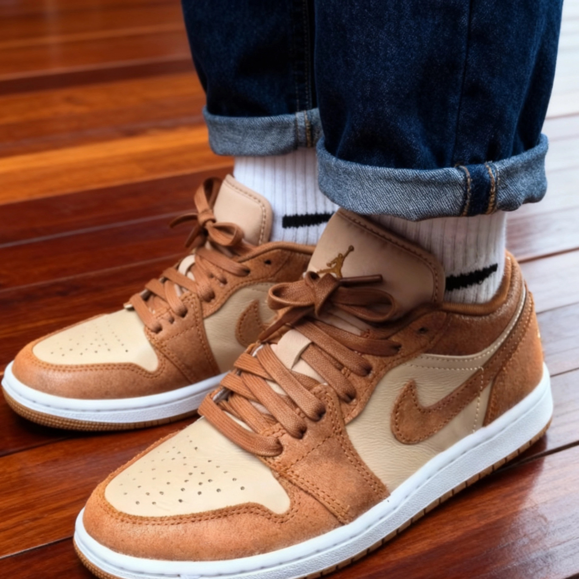 偏旧的复古质感超有味道,焦糖色自带温暖滤镜,和深蓝色牛仔裤搭在一起,慵懒氛围感直接拉满~ 尺码正常、脚感舒服还百搭,完全是秋冬鞋柜里的“刚需款”,#今日份秋冬季新dunk #秋日宝藏运动板鞋 这两个标签贴得超准,妥妥的秋冬穿搭神器!