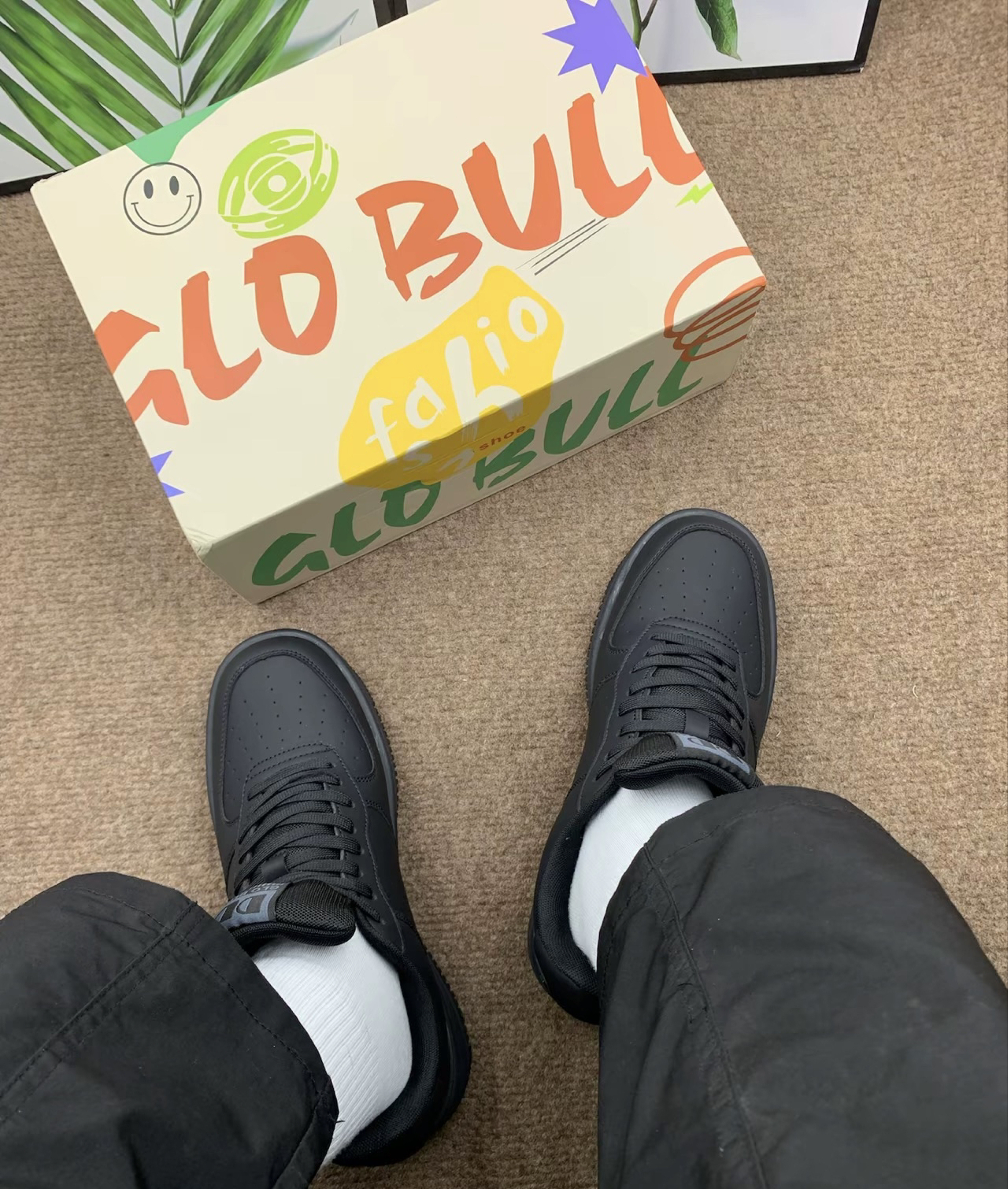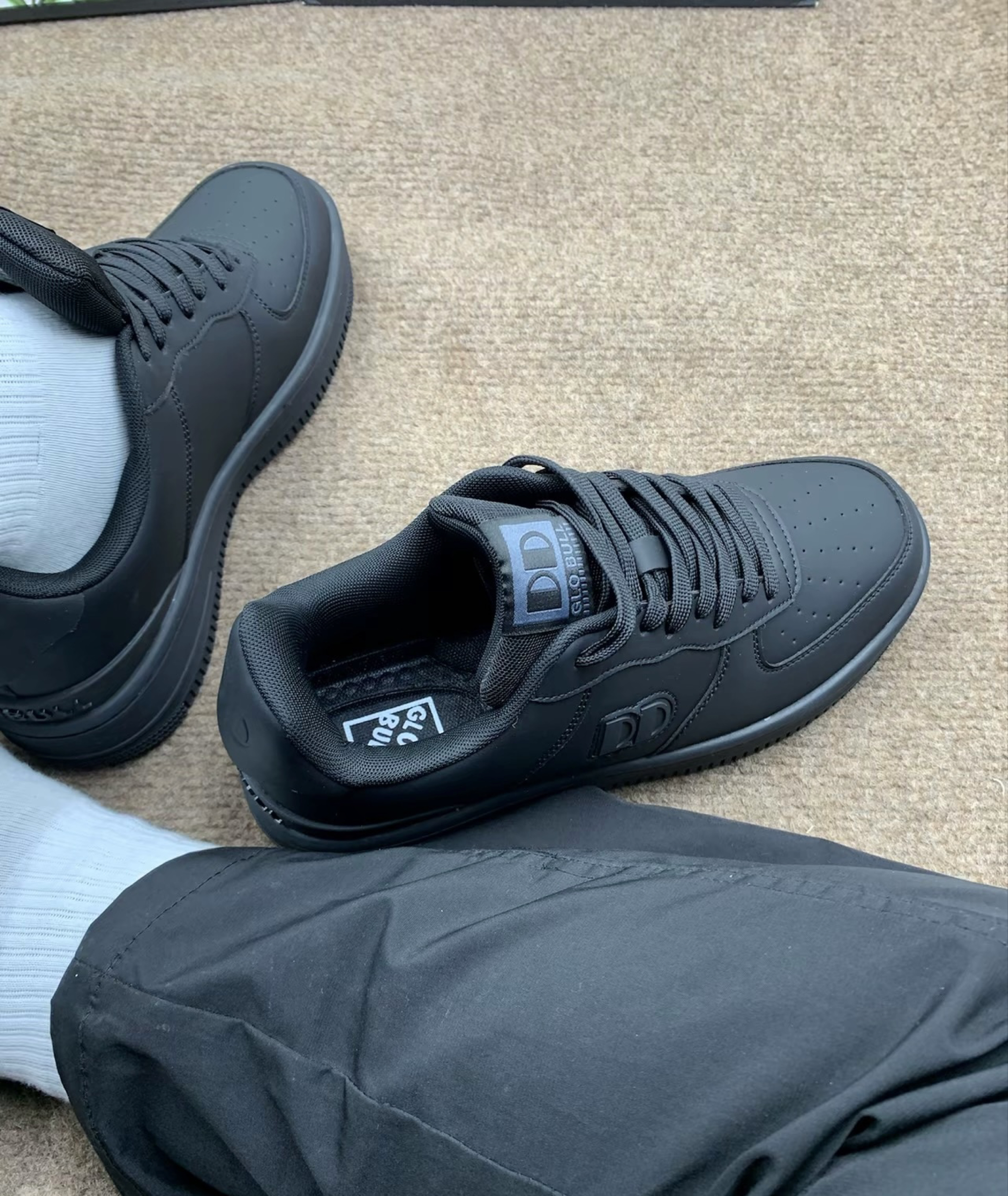 这双全黑的板鞋我真的一眼就爱了! GLO BULL 这颜值,纯黑的配色特别百搭,我不管是配牛仔裤还是运动裤,甚至搭个简单的短裤都很合适,穿上就有种酷酷的感觉,完全不挑风格~ 再说说质感,摸上去鞋面很柔软,不是那种硬邦邦的材质,穿着真的蛮舒服。鞋底看起来也挺厚实的,我长时间走路也不会觉得累呢 搭配鞋面纹路和小细节真是简约不简单呢 推荐给喜欢简约风又追求舒适的朋友