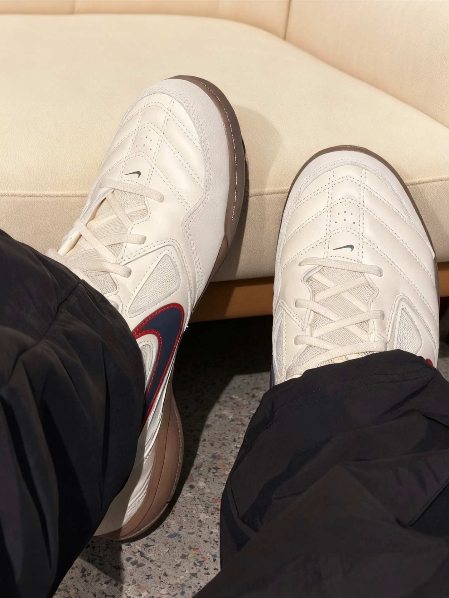 这双Nike复古鞋真的让我想无限安利!鞋身的红蓝CP配色是点睛之笔,恰到好处的点缀让基础小白鞋瞬间有了特点,不会显得单调。 上脚自带一种随性的松弛感,搭配深色裤子也不会因为鞋身白而显得突兀,反而能透出浓浓的复古味儿,日常穿既舒服又能凹出时尚感,鞋控真的可以冲!