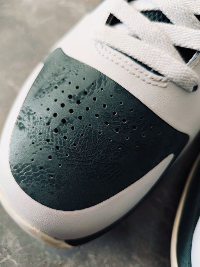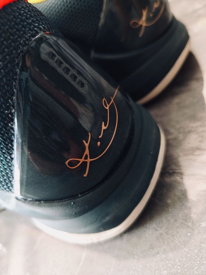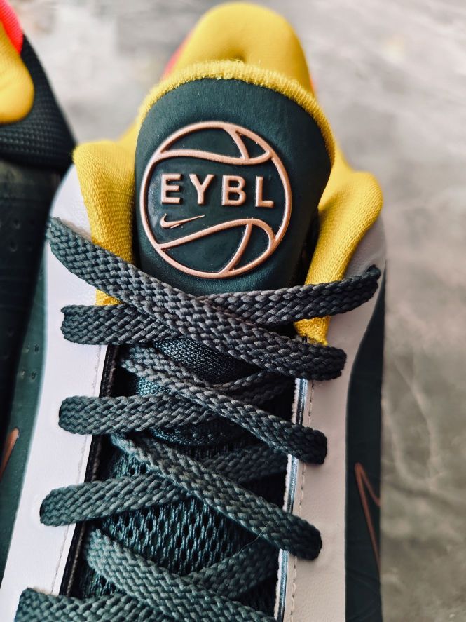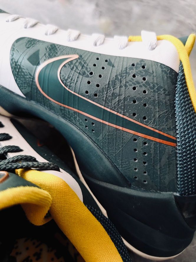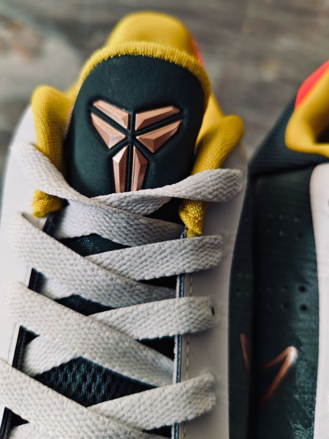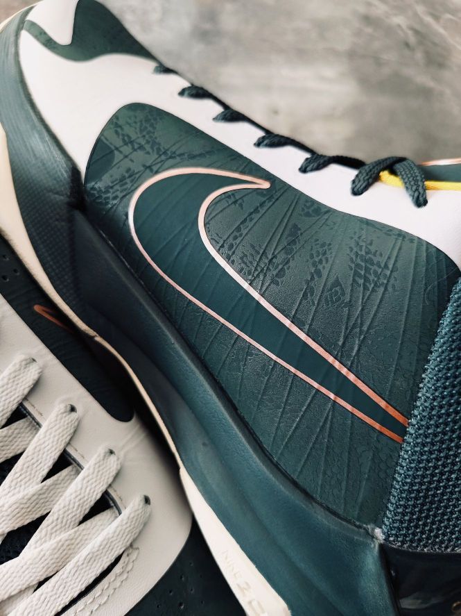 穿上它你就是精英 今天拍 NIKE KOBE 5 EYBL 绿色灰色金色➕后跟的一抹橙红色 大胆的撞色设计,用到了 XDR 的耐磨橡胶大底,科比 5 我认为科比系列最好的球鞋!还有蛇鳞的暗纹!