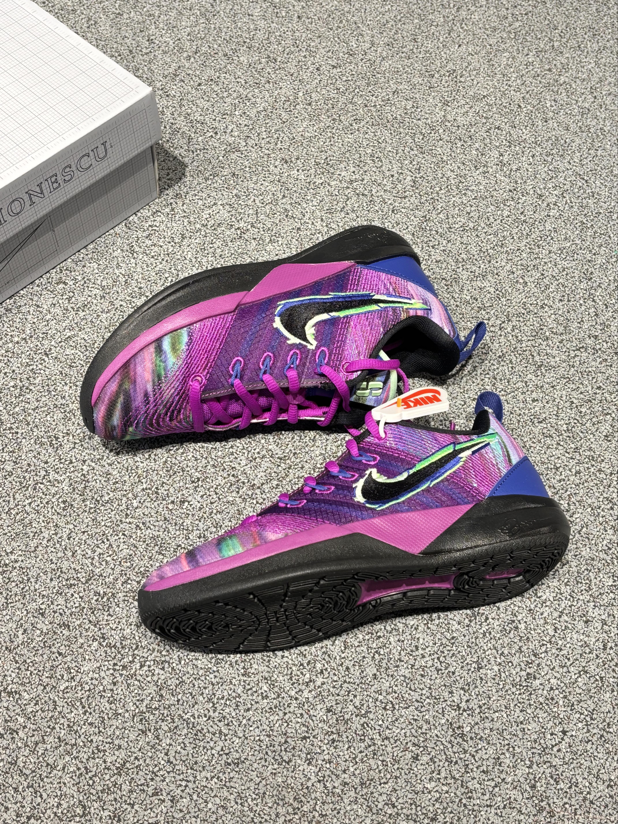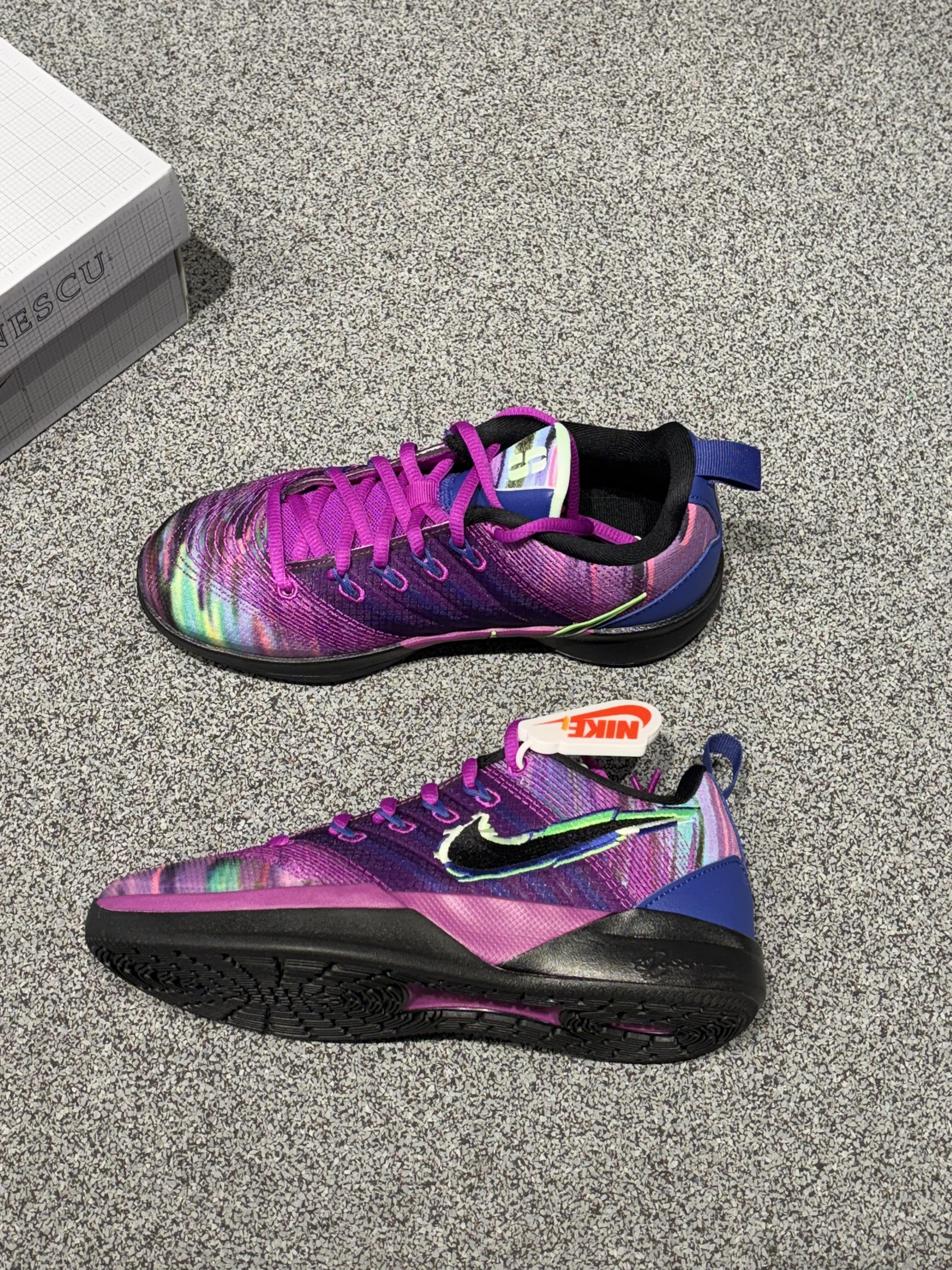 拿到这双鞋的瞬间,直接把“日常+球场”的穿搭选项拉满——这哪是篮球鞋,明明是行走的潮流信号枪! 「上脚暴击:又野又飒的“双面选手”」 ▪️✅直接戳中潮人DNA:渐变紫+幻彩镭射纹理也太会玩了!光线下像裹了层流动的霓虹雾,配荧光粉鞋带直接把“吸睛度”拉满,球场热身时被队友问了三次“这鞋哪入的”。 ▪️✅是“实用党也能冲”:别看它长得野,脚感是真的软弹——网布鞋面透气到能感觉到风,踩下去的缓震刚好...