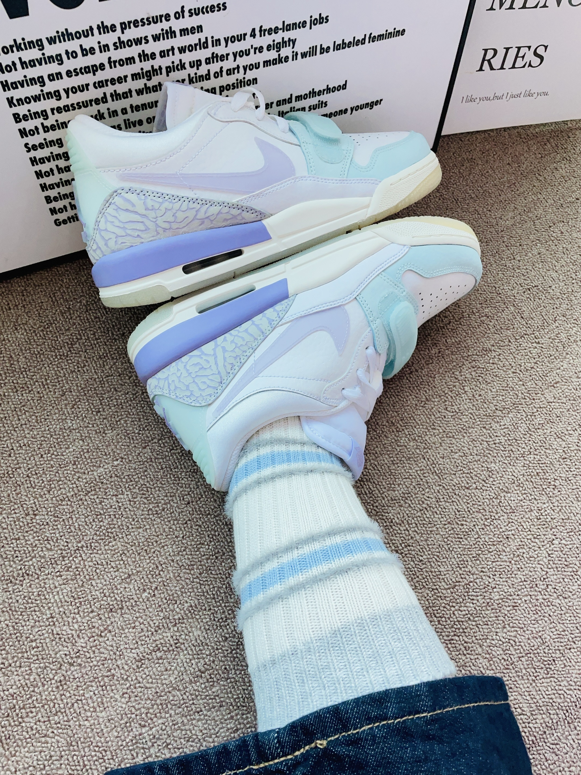 本篇笔记关联了PRIMEET 24SS透气吸汗运动薄款中筒袜 AF44018H 2白2灰1蓝 5双、Air Jordan Legacy 312 板鞋 运动休闲鞋 三合一魔术贴缓震复古回弹合成革 GS/白色/绣球花紫/冰川蓝等商品,为用户提供真实的使用体验和购买参考。