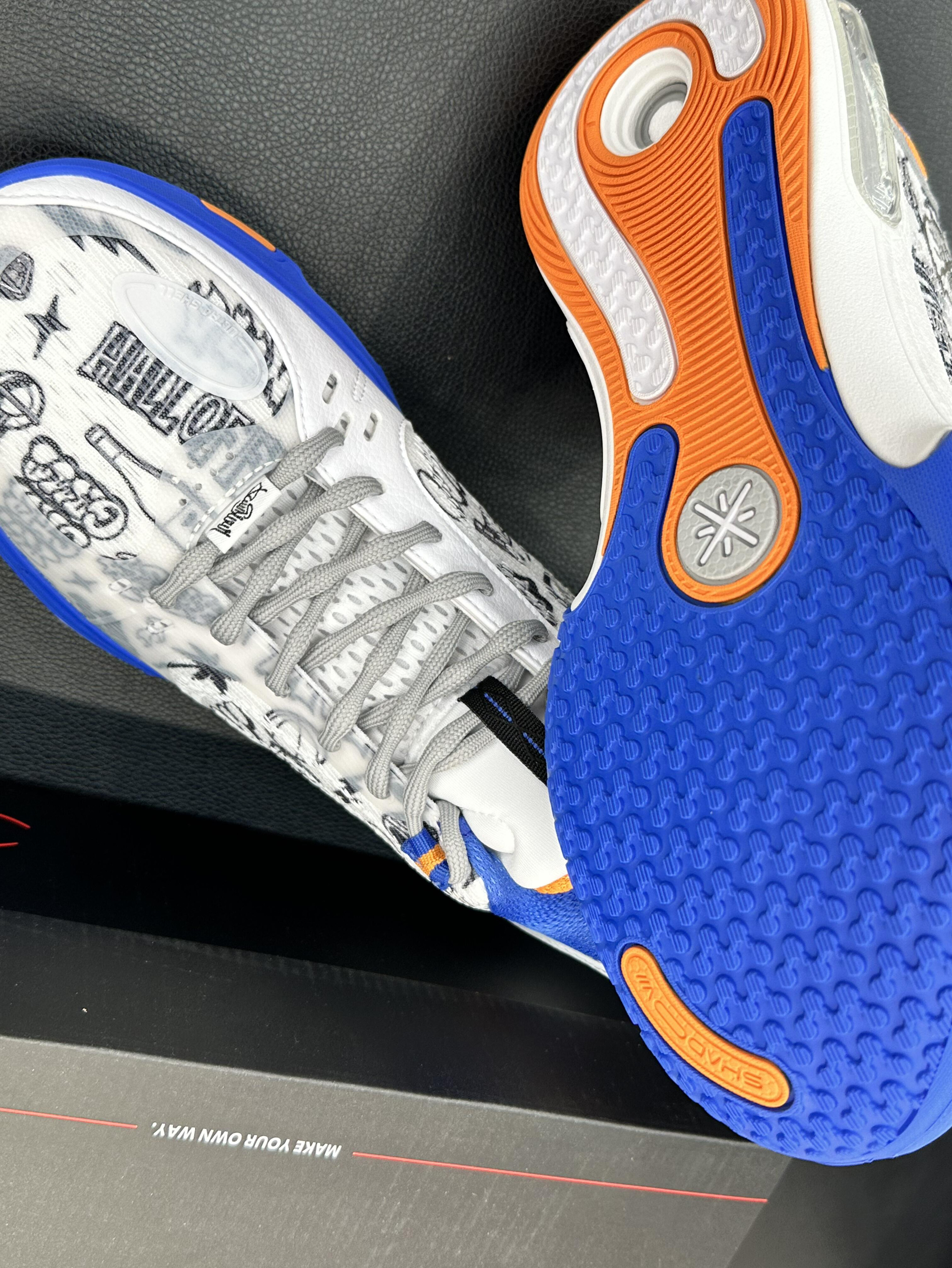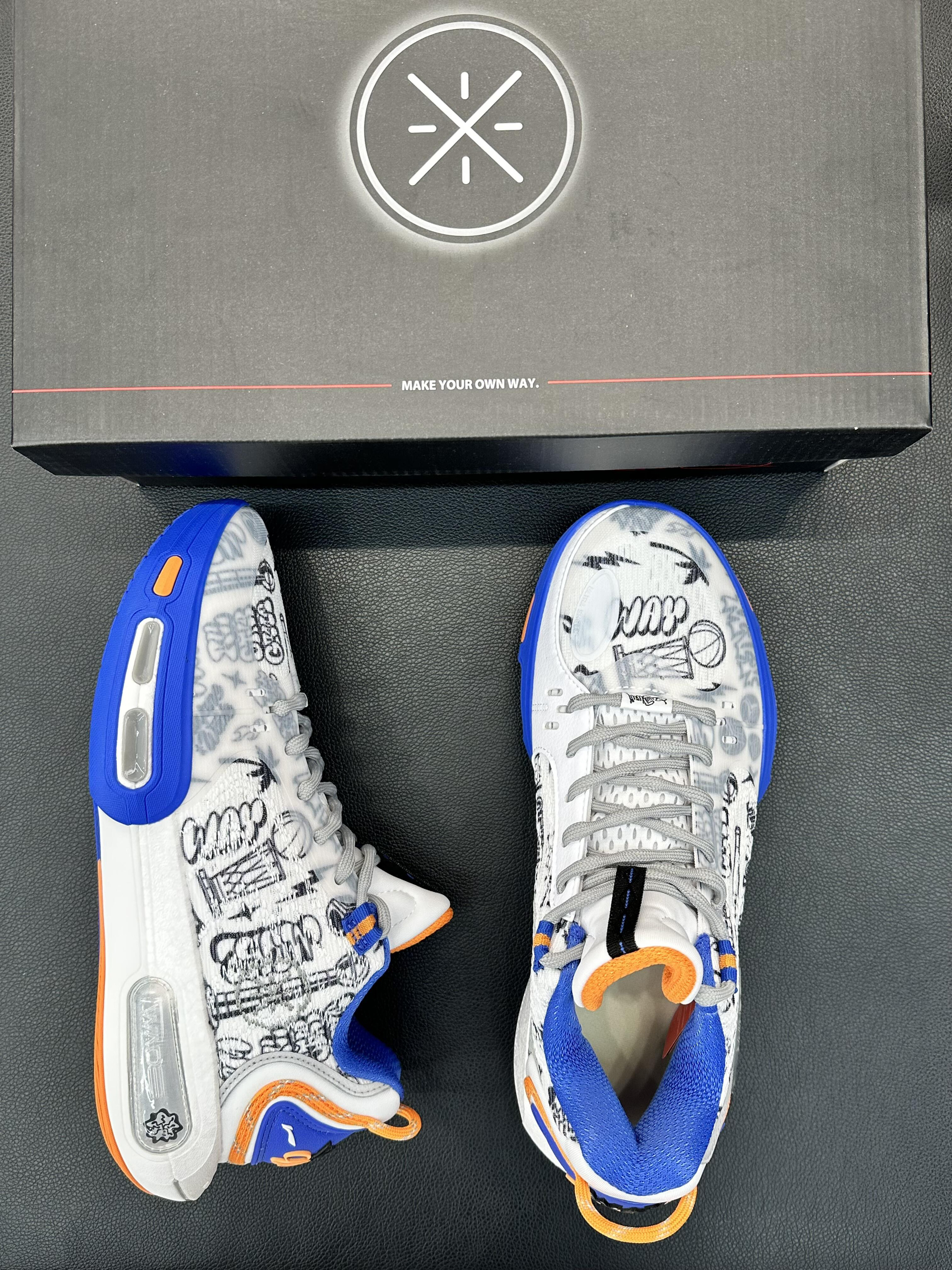 打开鞋盒直接被戳中——李宁韦德系列的涂鸦款,鞋身满是篮球、闪电、标语的手绘风图案,像把一整本生活随笔印在了鞋上,连鞋盒的“MAKE YOUR OWN WAY”都在喊“这就是我的专属风格”。 「上脚暴击:是“个性党也能踩的舒服”」 ▪️✅戳中自我表达欲:满印涂鸦根本不是“花里胡哨”,是把“我的生活态度”穿在脚上——篮球元素是热爱,标语是态度,走在街上像移动的“个人名片”,被同好拍肩问“你这鞋写满...