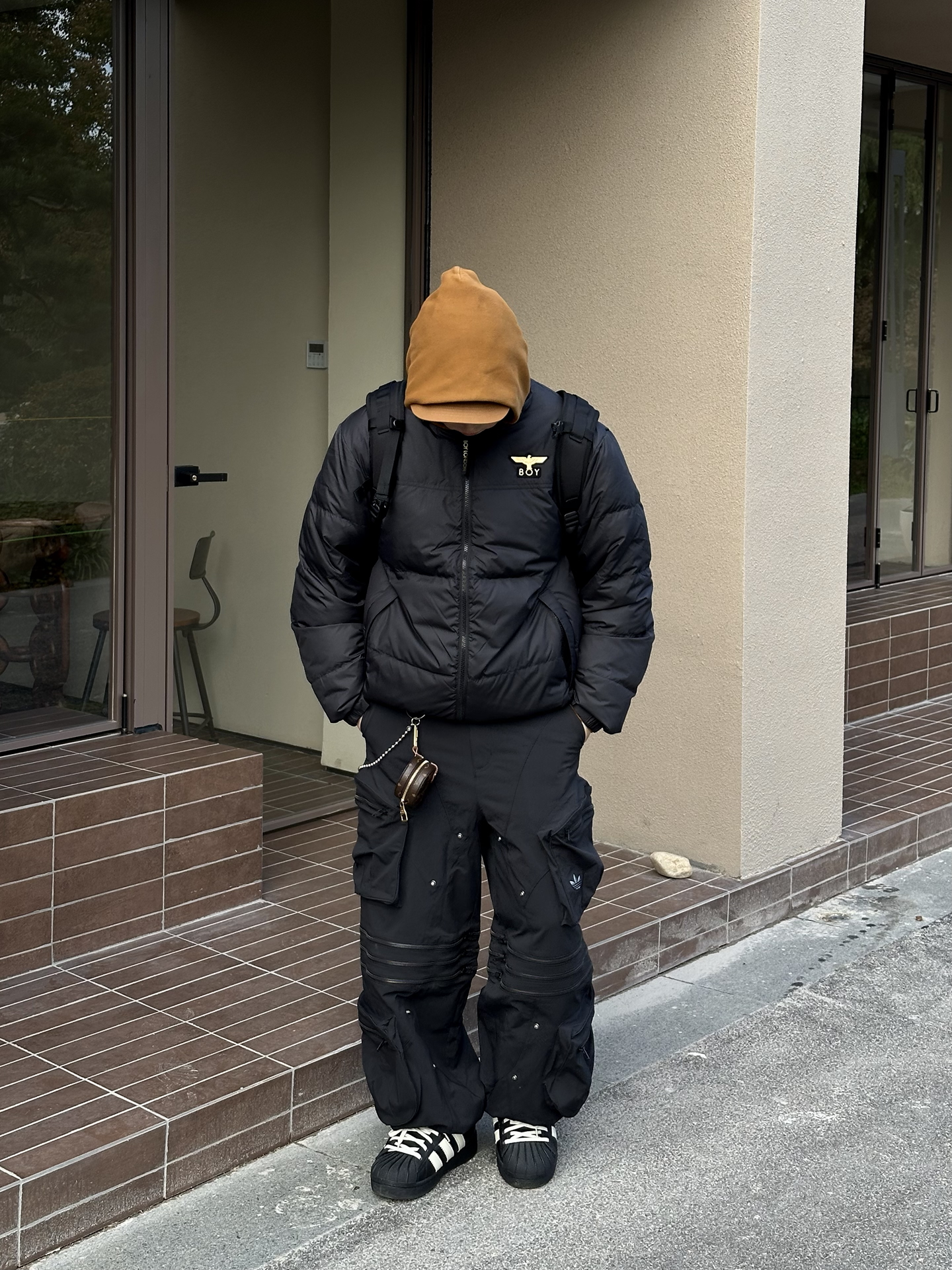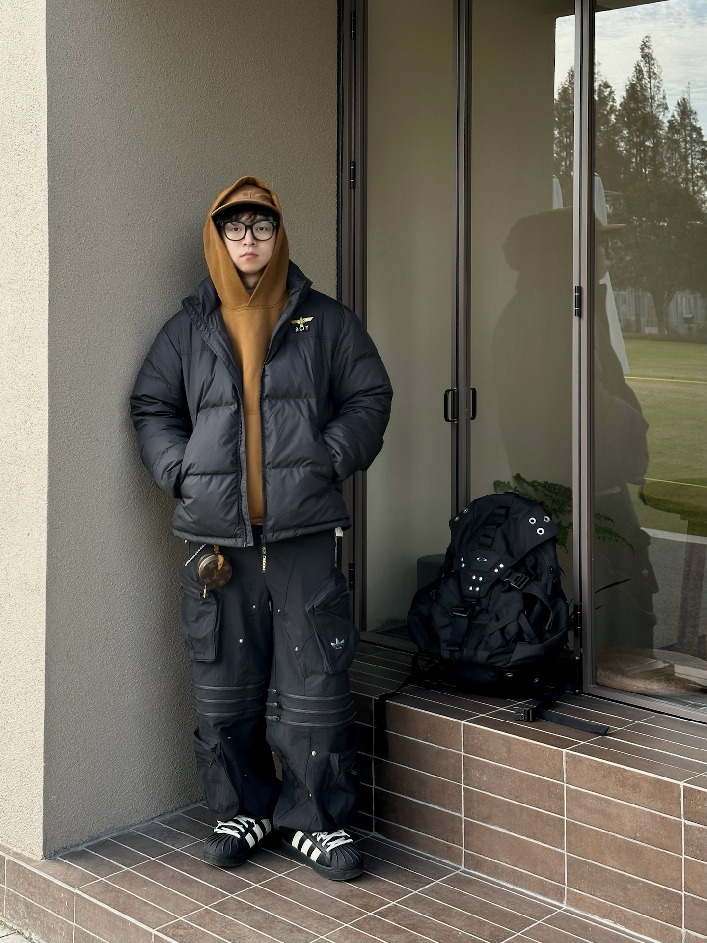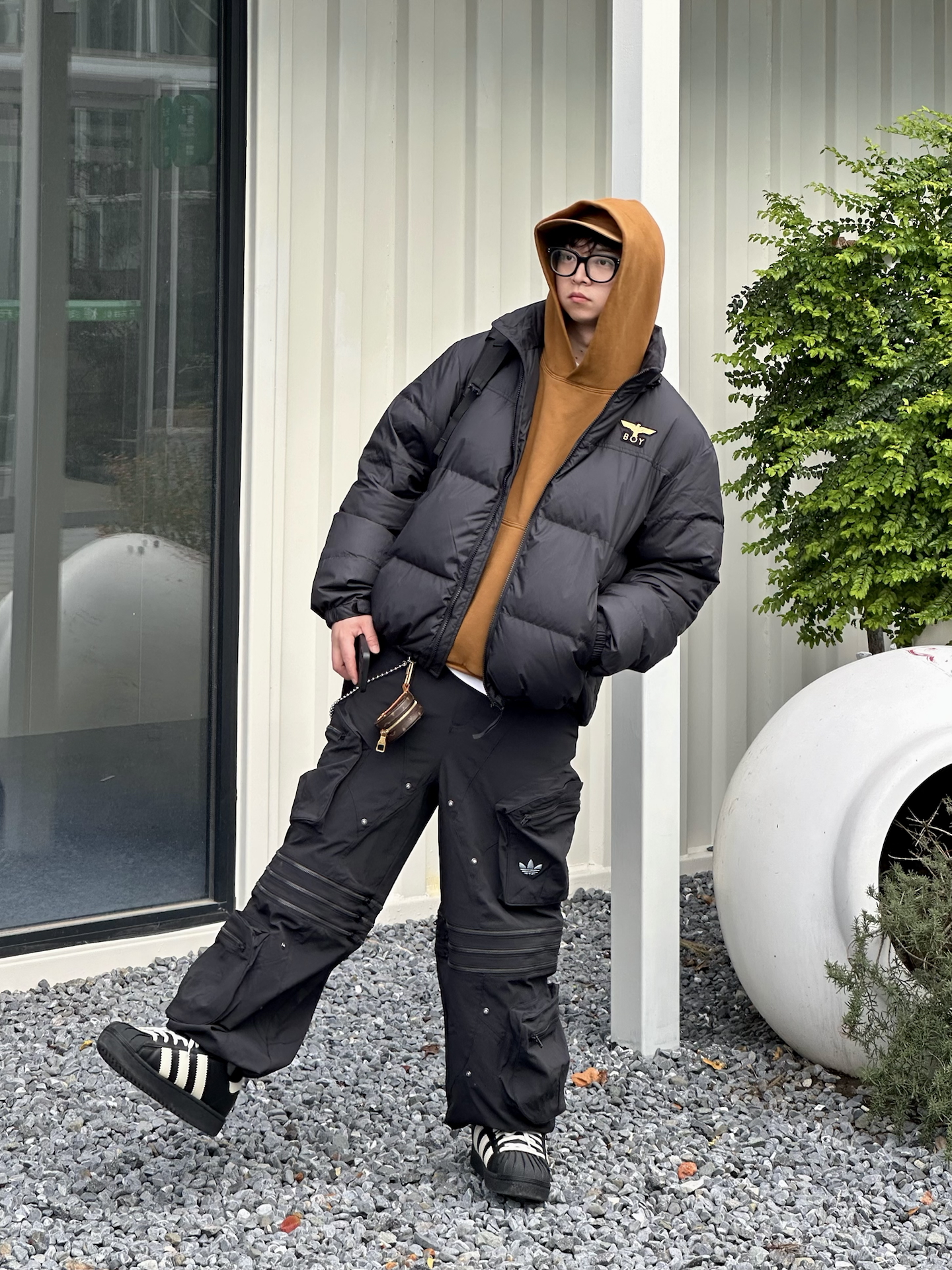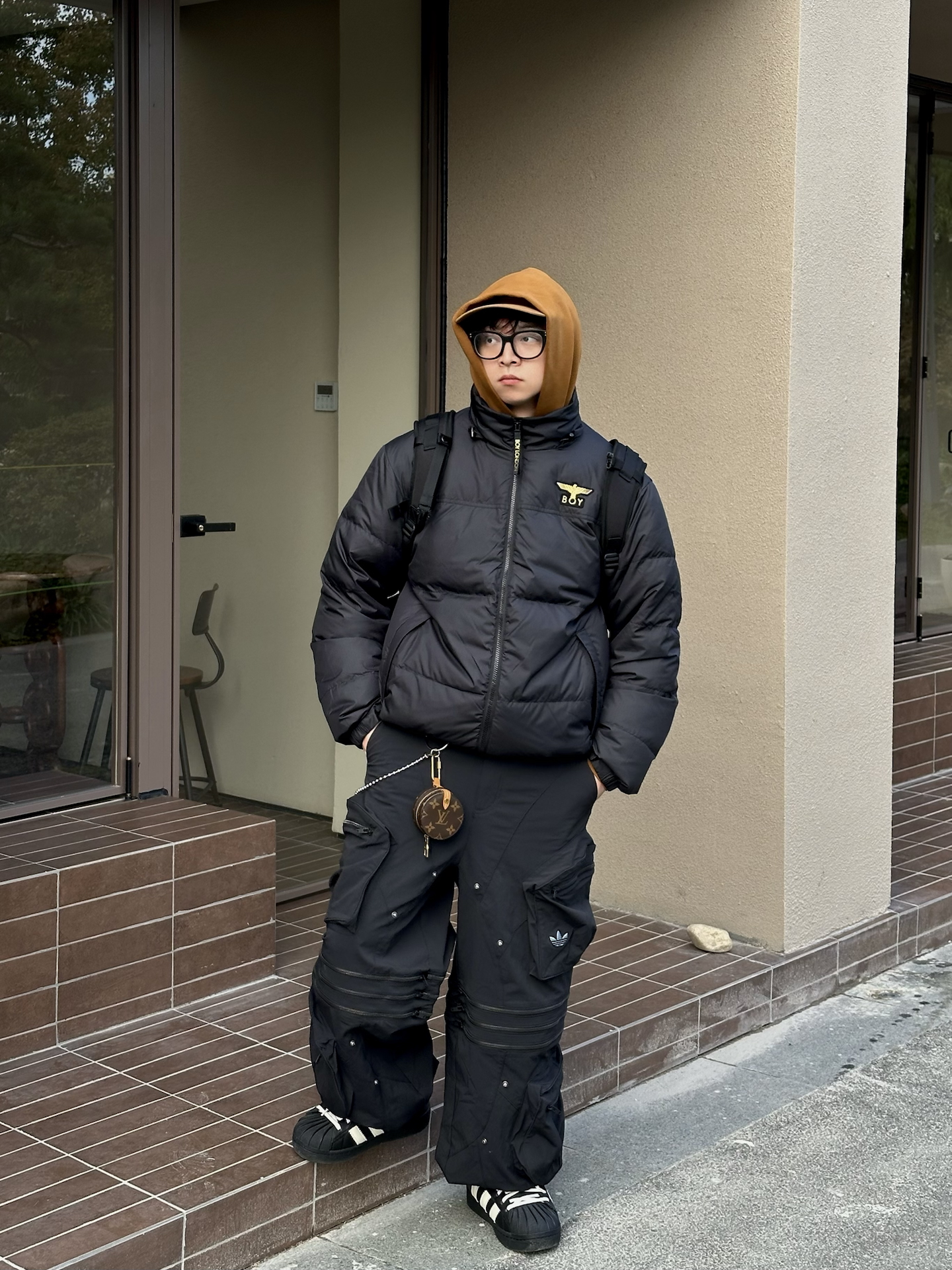 哈喽👋🏻大家好哇 这里是🪨石地夫的穿搭小日记📝 - 今天出门是上短下长的廓形ootd 上身这件Boy London的面包羽绒服 短阔版型简直是我这种小个子的秋冬救星💫 下摆还带抽绳真的爱了🤩 小小的金色经典老鹰🦅➕BOY标,高级又低调✨ 90充绒量保暖可真不是盖的🔥 内搭一件卫衣直冒汗(穿多了😅) 搭配adidas x GALI这条黑色阔腿工装裤真的很绝☑️ - 📏本人173,70kg,平时穿L,...