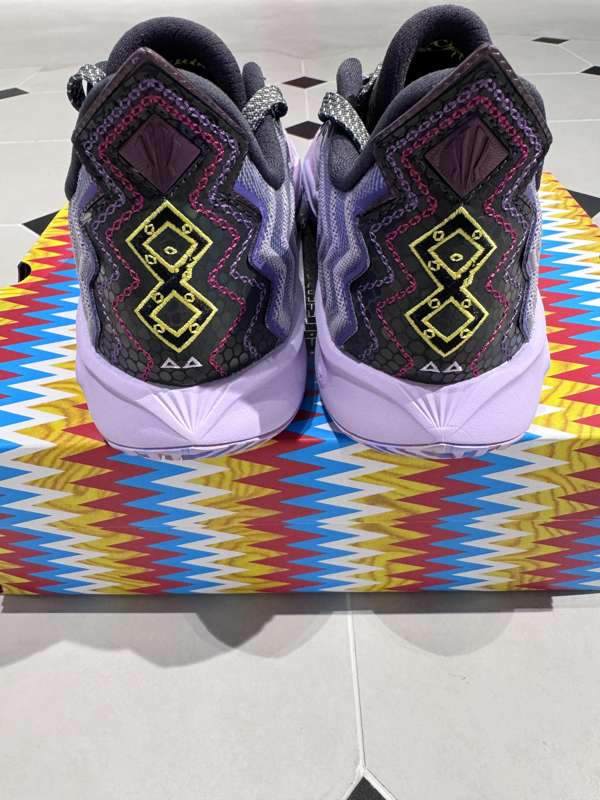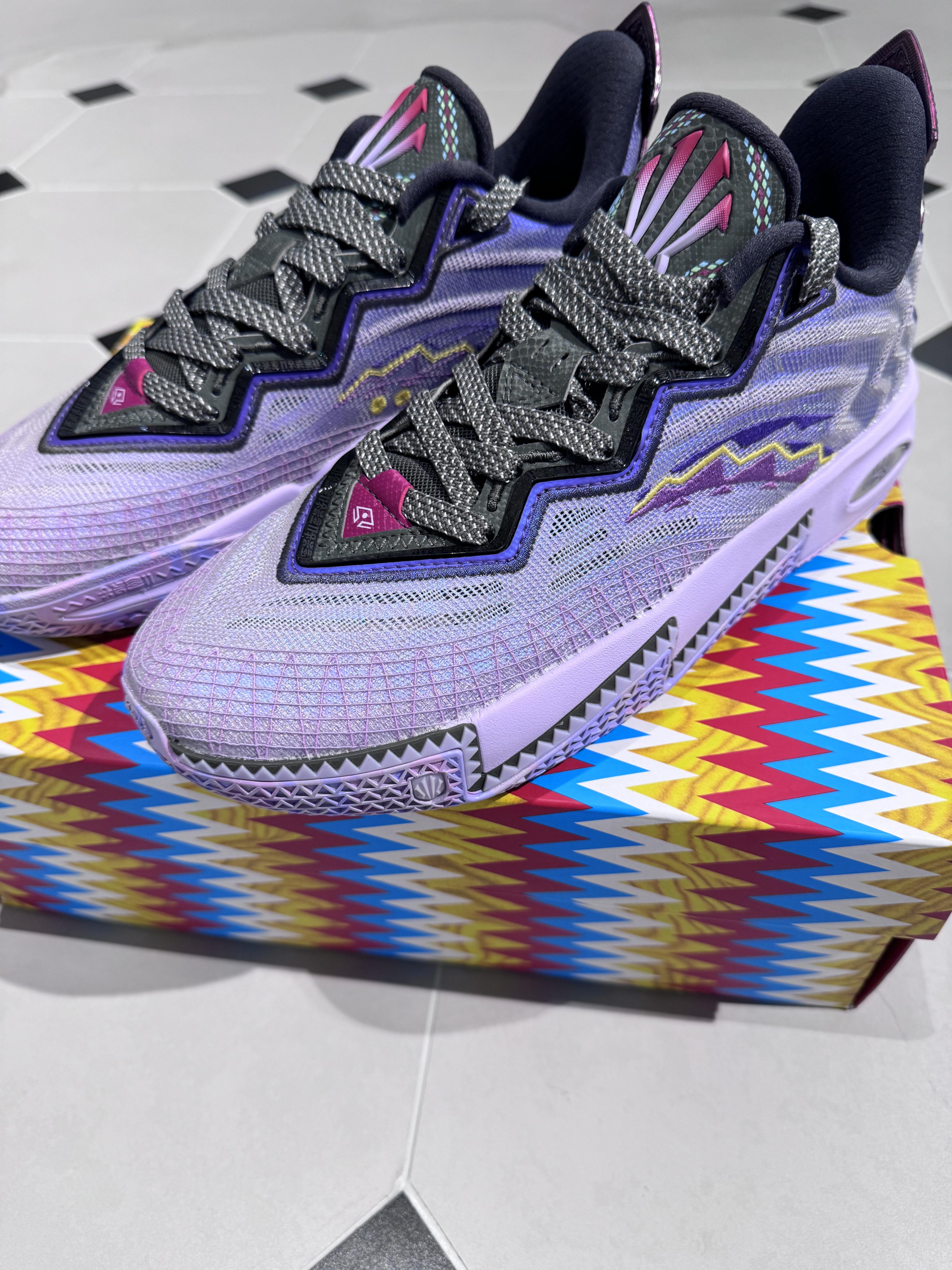 拿到这双鞋的瞬间,直接被鞋身的渐变紫+闪电纹路戳中——像把傍晚的星云和电竞屏里的电光揉在了一起,连鞋底的细节都写着“又野又浪漫”。 「上脚暴击:是“球场党也能爱的浪漫脚感”」 ▪️✅戳中审美盲区:渐变紫+荧光线条根本不是“花”,是把“赛博浪漫”穿在了脚上——球场热身时,光线下鞋身像流动的星云,队友拍着我肩膀说“你这鞋自带打光板吧”; ▪️✅是“浪漫也能打”:别看它长得像艺术装置,实战脚感是真·...