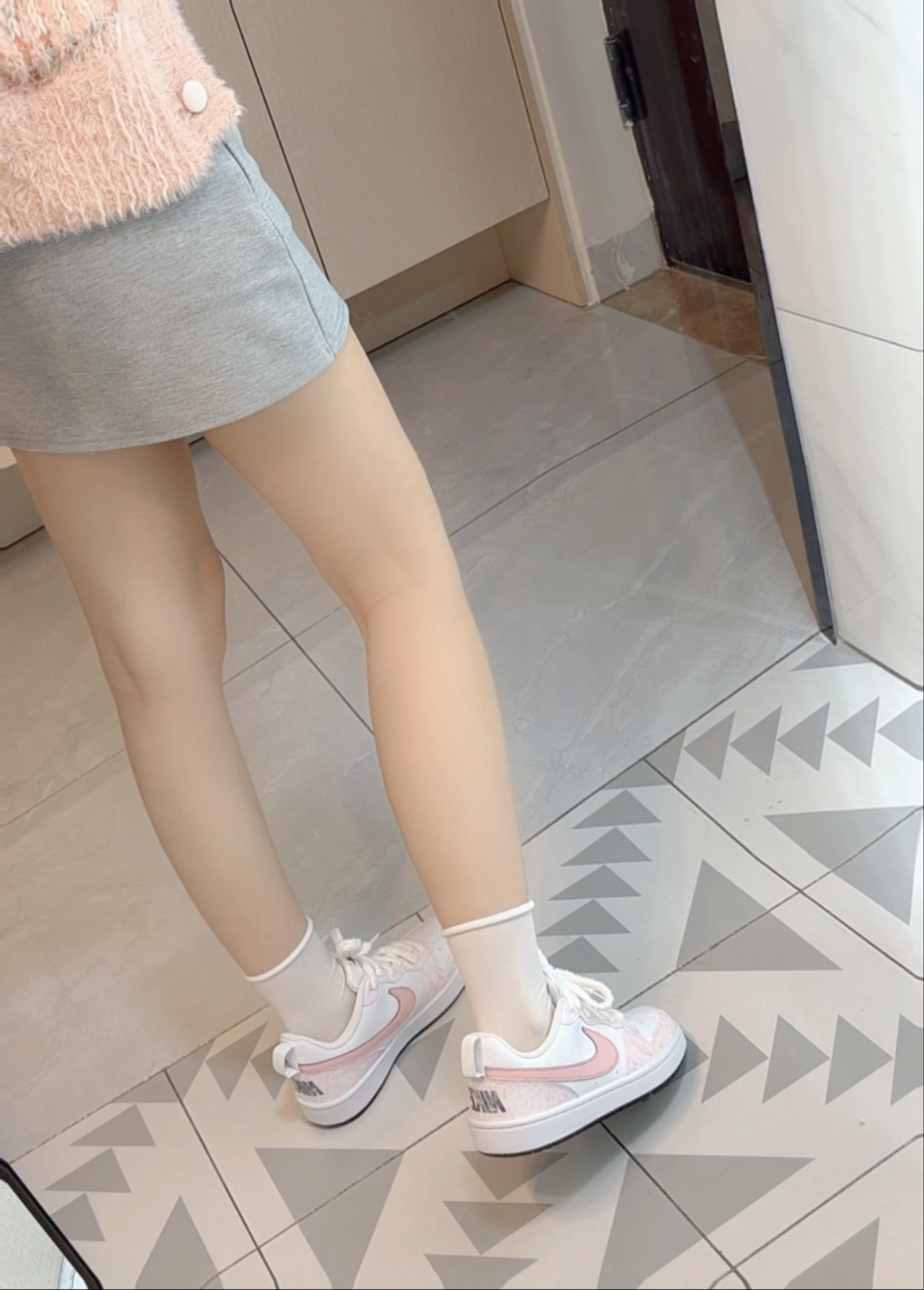 粉色系板鞋真的很温柔动人的感觉 🥰秋冬搭配粉色系毛衣穿搭 简直不要太少女心啦 上Jio很修腿型 显得脚瘦长瘦长的😁 而且粉色系那种淡淡的粉! 秋冬搭配任何色系的衣服都很OK
