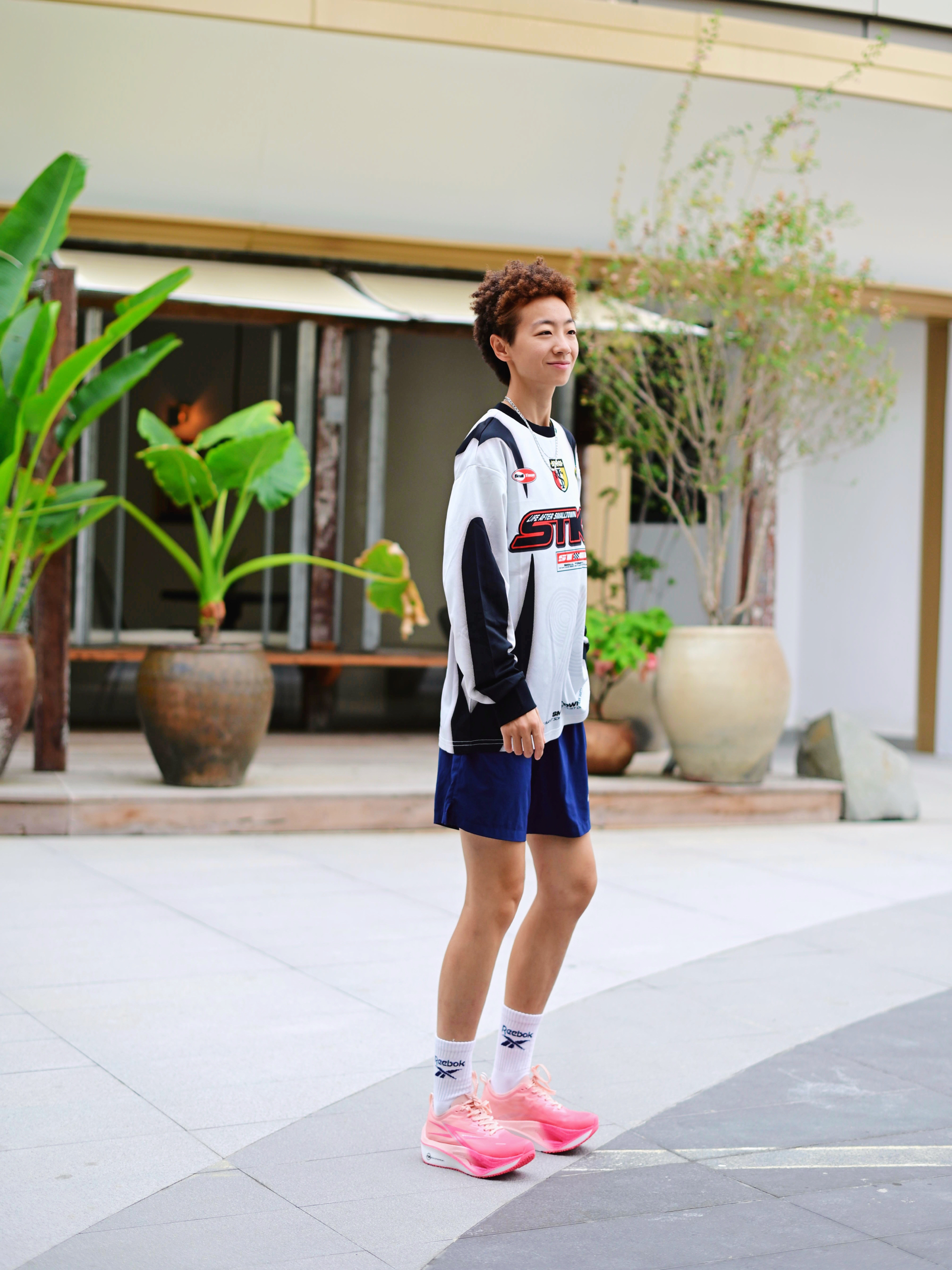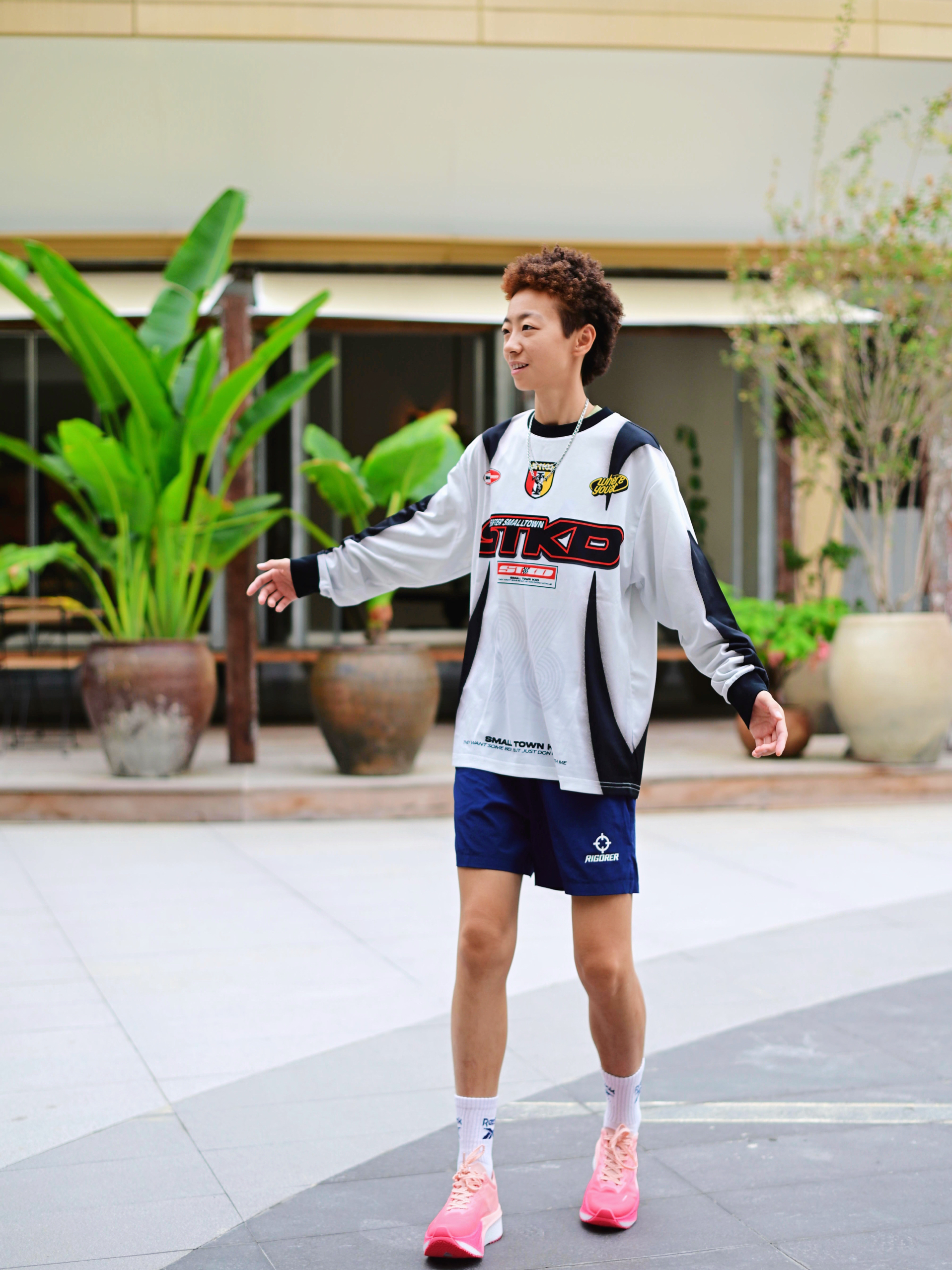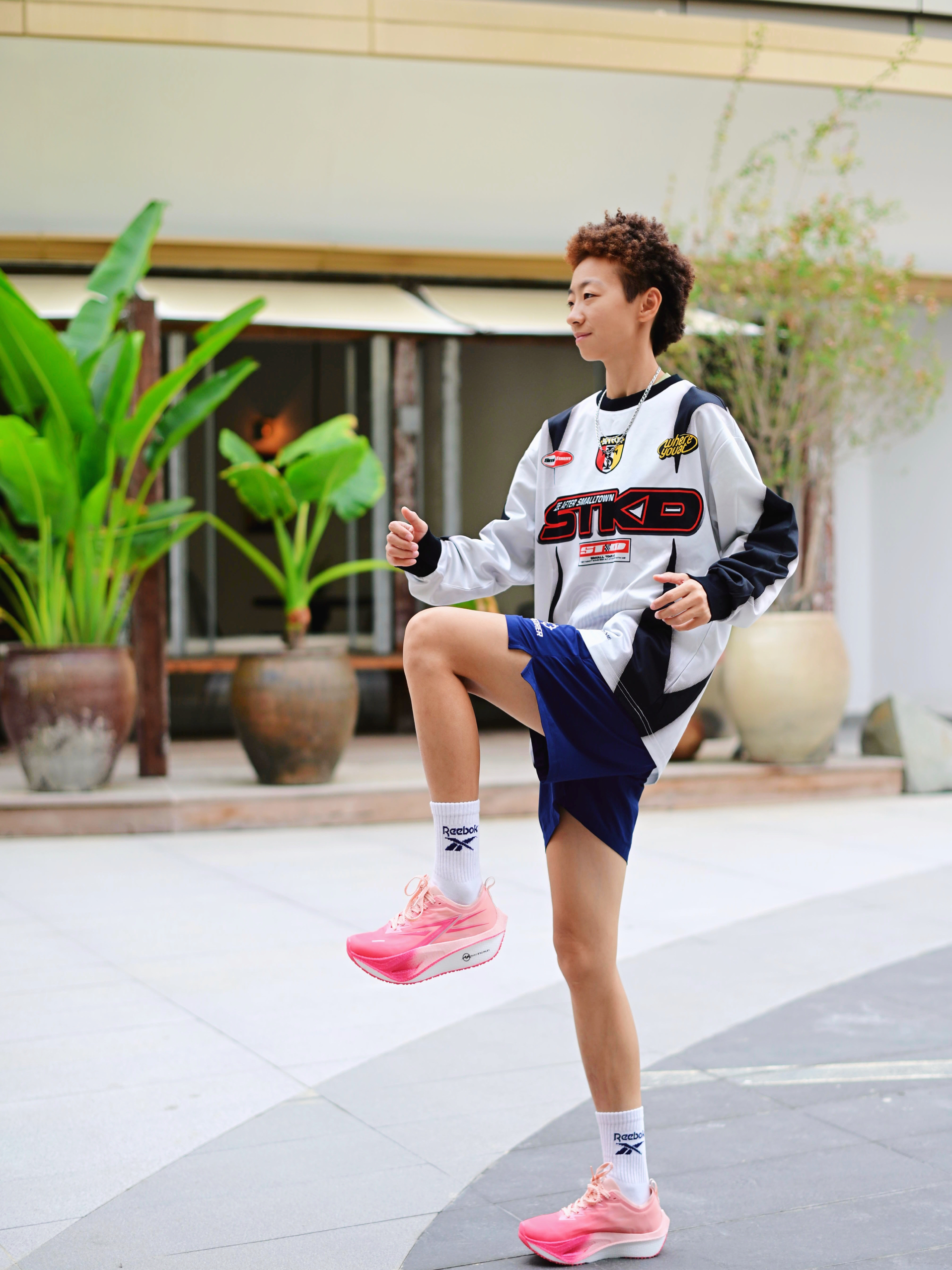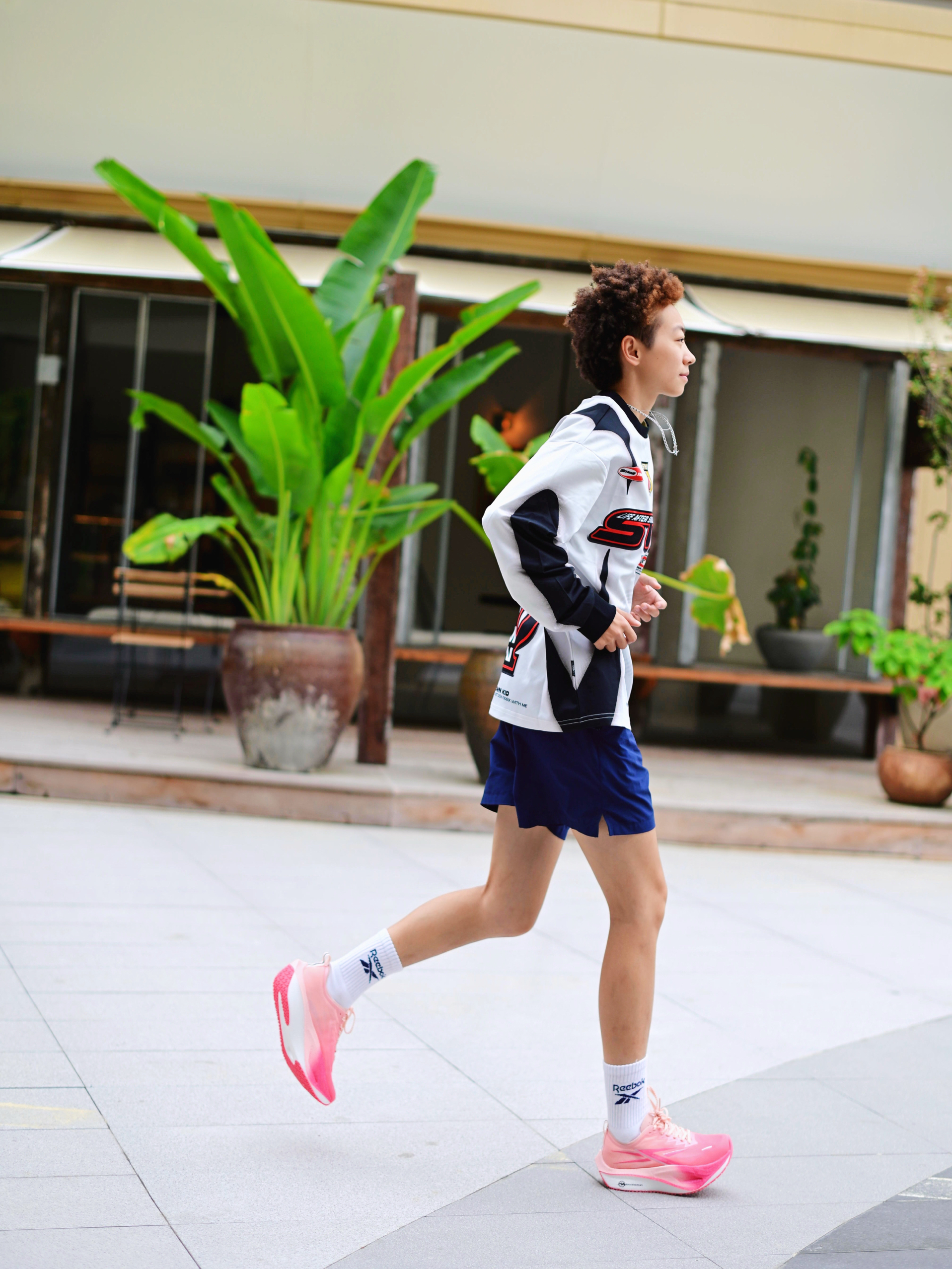 172CM|55KG 👔:m👖:m|👟:39码 周末的晨跑时间到!🍂 秋冬的户外总带着寒意 但运动热情不能减~ 上身长袖黑色防风外套搭配灰色运动短裤 上脚A.KNACKFUSS粉色跑鞋 瞬间点亮整体造型 每一步都能感受到舒适的减震回弹 透气性也让双脚保持干爽 Gogogo