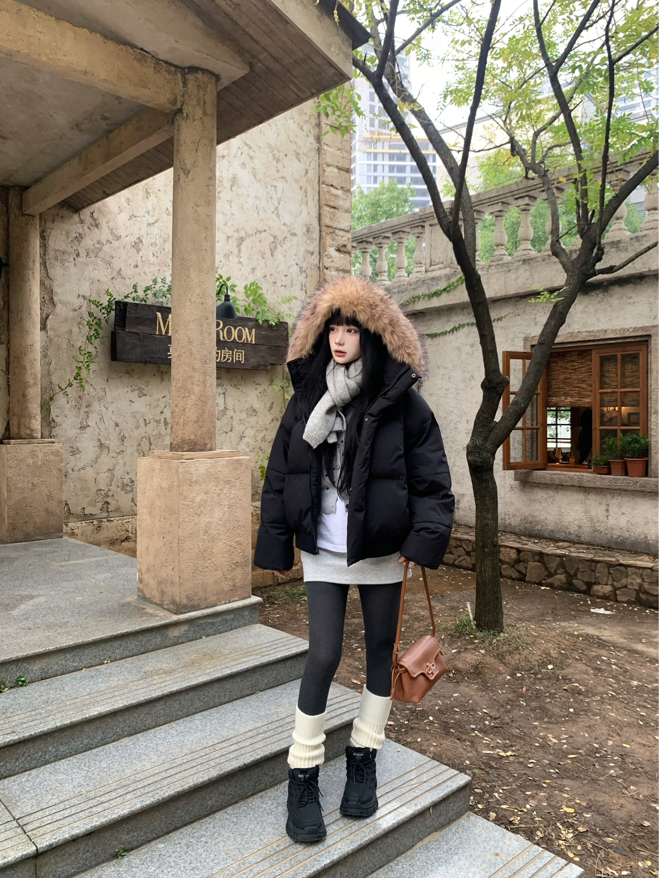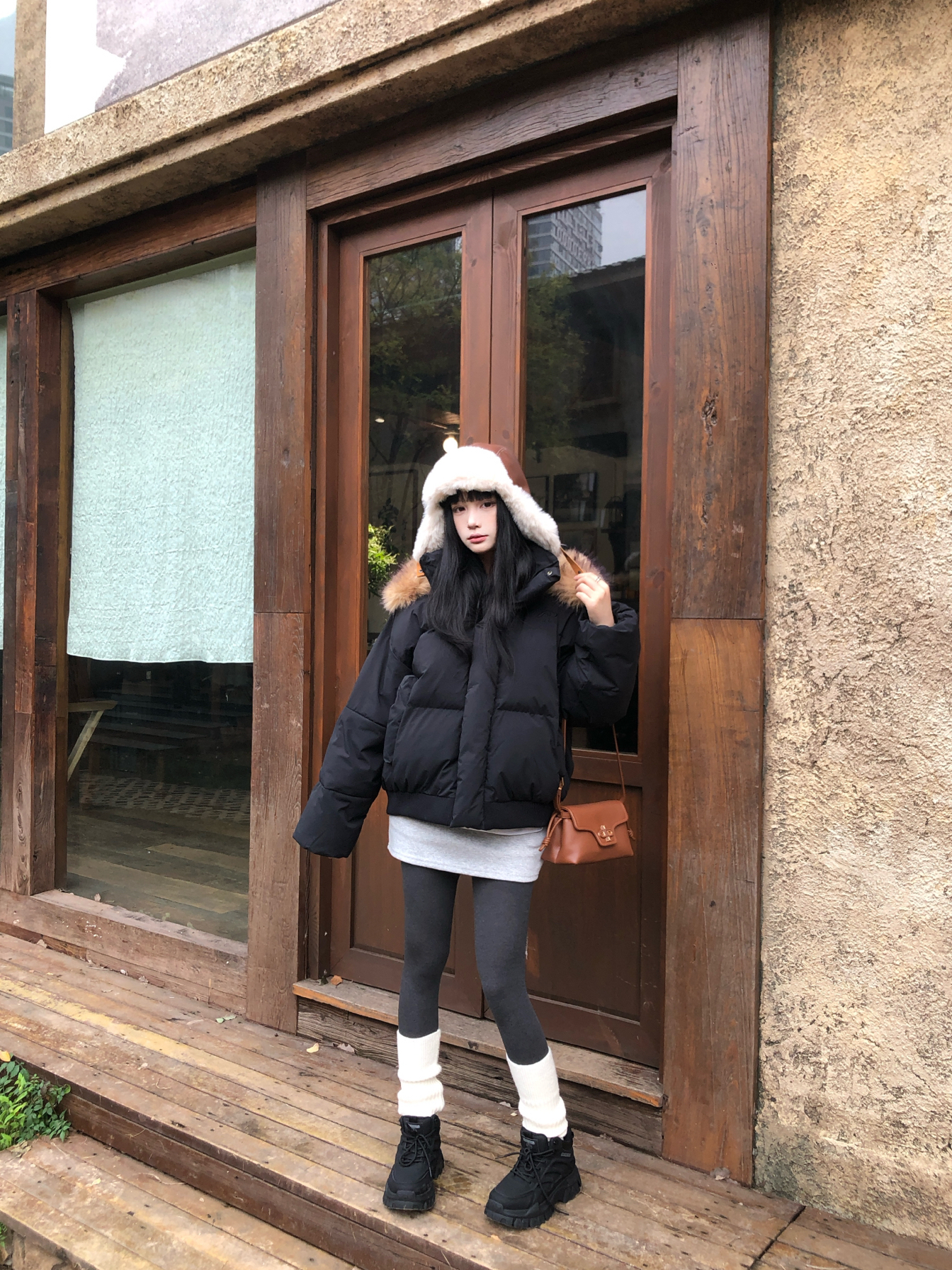 我的冬日速成美式穿搭公式来咯 简约毛衣搭配A chock座山雕羽绒服🪶 小个子可以穿合身一点 我162穿m就刚好~ 上身保暖舒适 日常穿也不费力的百搭 搭配灰打底裤➕堆堆袜➕哆啦A梦户外靴👢 靴子我就穿黑色增高的 上脚也很舒适😌 包包用棕色pedro信封包点缀💼 小巧轻便又使用 四季都比较百搭 双十一入手很不错 美式感满满