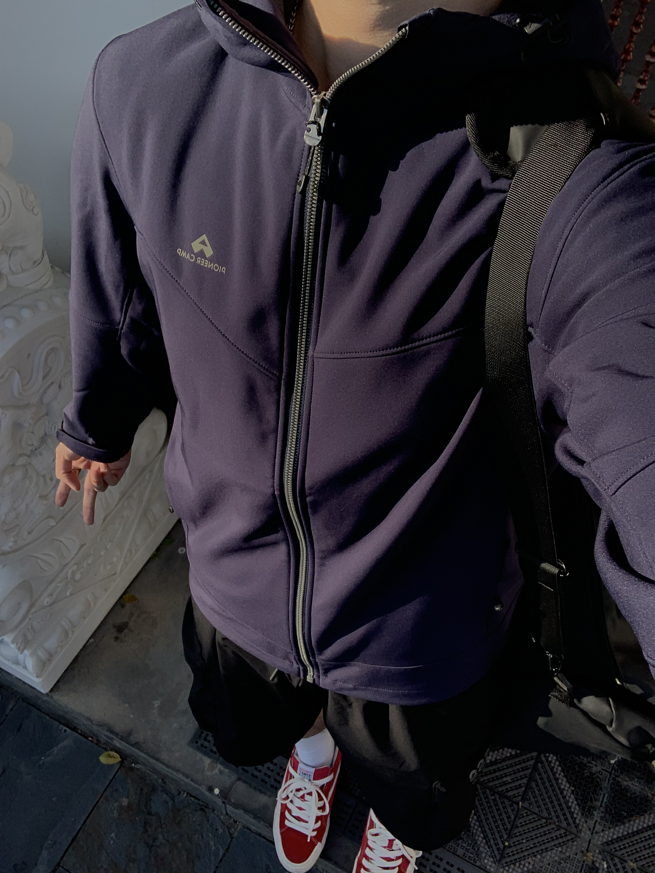 🧍♂️当复古国风撞上街头vibe💥活人感拉满的“不费力帅”!在巷子里炸街📷 👔上衣:我穿的是深海蓝L码偏修身,喜欢宽松可以选正常尺码👌装下穿搭野心~内里搭白T,简约哩😎户外野人们,安排安排haha 👖下装:上长下短,随性带感,街头味儿拿捏! 👟鞋子:红色复古板鞋❤️给整体穿搭来个亮色暴击!复古少年感直接拉满