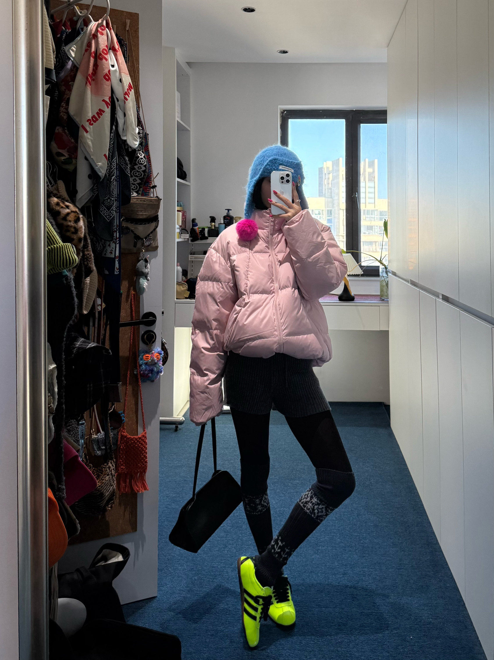 Teenie Weenie这件粉羽绒,是把50年代常春藤的甜柔裹进了当代少女感里👧 小熊IP的暖感没丢,反而和灰针织短裤撞出点利落劲儿 脚下Adidas Tokyo是复古德训的轻量版,奥运遗产的运动骨血混着东京街头的锐度,荧光色刚好跳脱甜腻 当学院派的浪漫撞上城市运动基因,甜酷的平衡感才是秋冬的松弛解🕶️ 你们最近会用什么单品中和甜系?