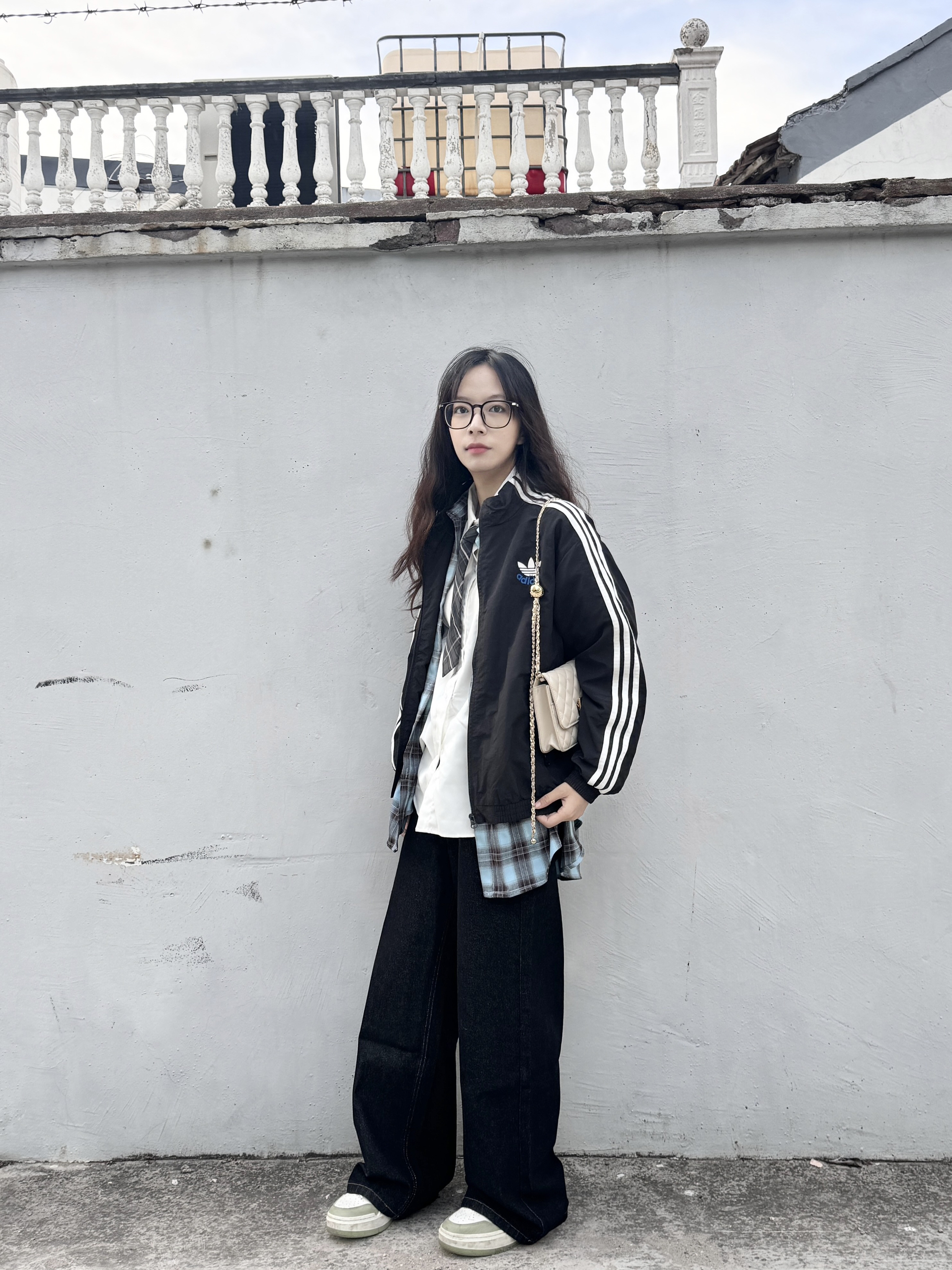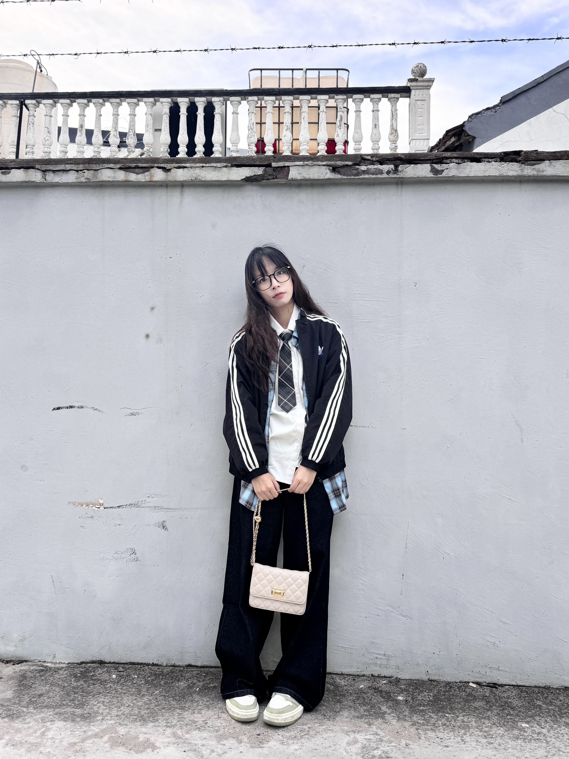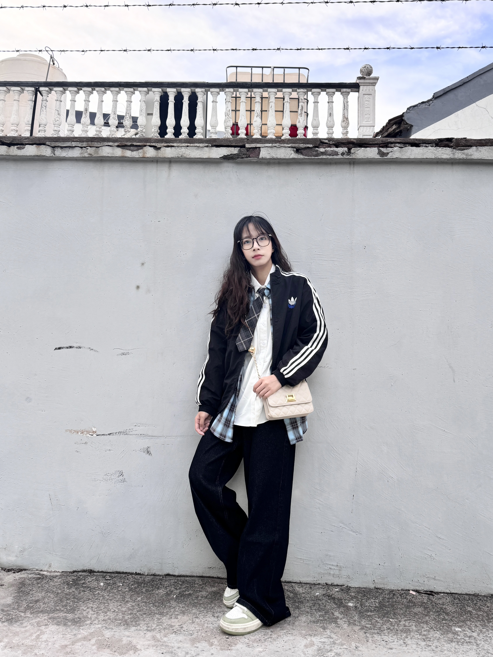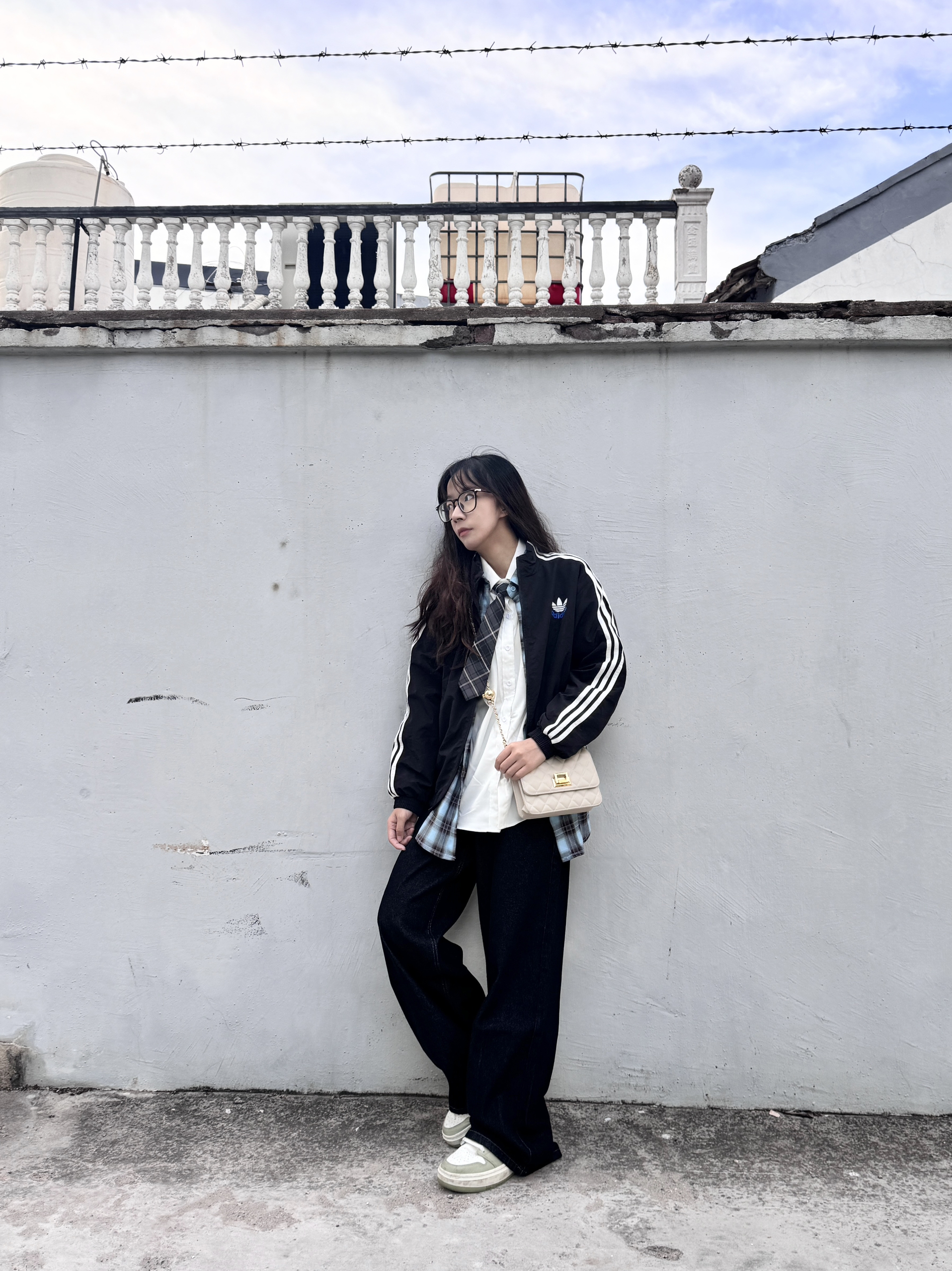 黑色运动风外套搭配白色单肩包 这个包包真的挺好看的,链条是可以调节长度的 可以腋下包也可以当做挎包 里面容量还挺ok的 日常的话放一些手机啊,气垫之类的没问题 喜欢这种简单的搭配