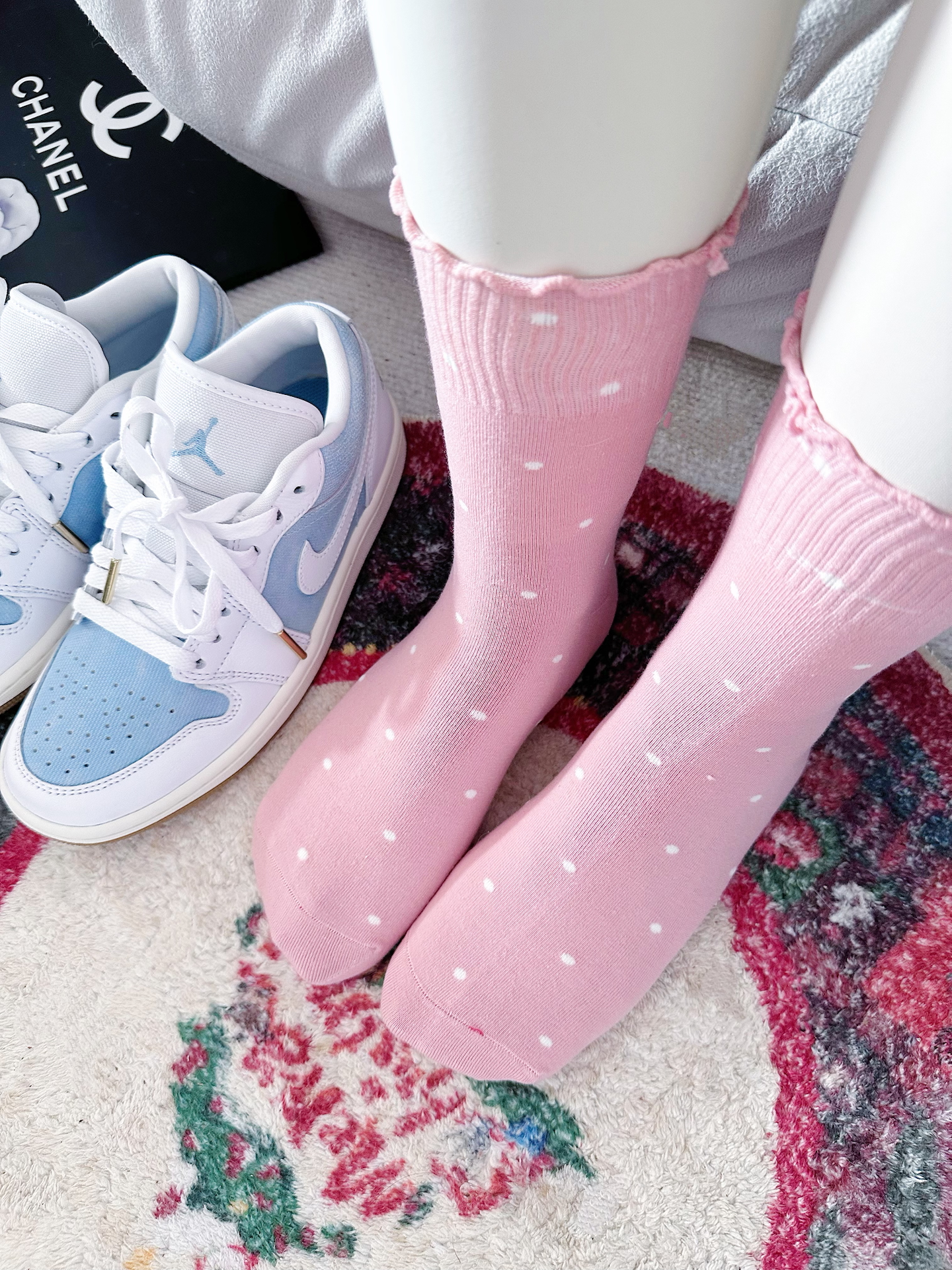 我的木耳边袜袜和我的Jordan篮球鞋好配哇💕 每个颜色都温温柔柔滴踩在心吧上 波点图案更是增加俏皮感🤔 穿着一点都不勒脚丫 棉质柔软细腻还格外透气🎶 穿好鞋也不怕臭脚丫✨ #交出你的鞋靴链接 #高颜值的袜子 #特别强推的一款袜子 #猫人的袜子 #暖烘烘过冬搭子