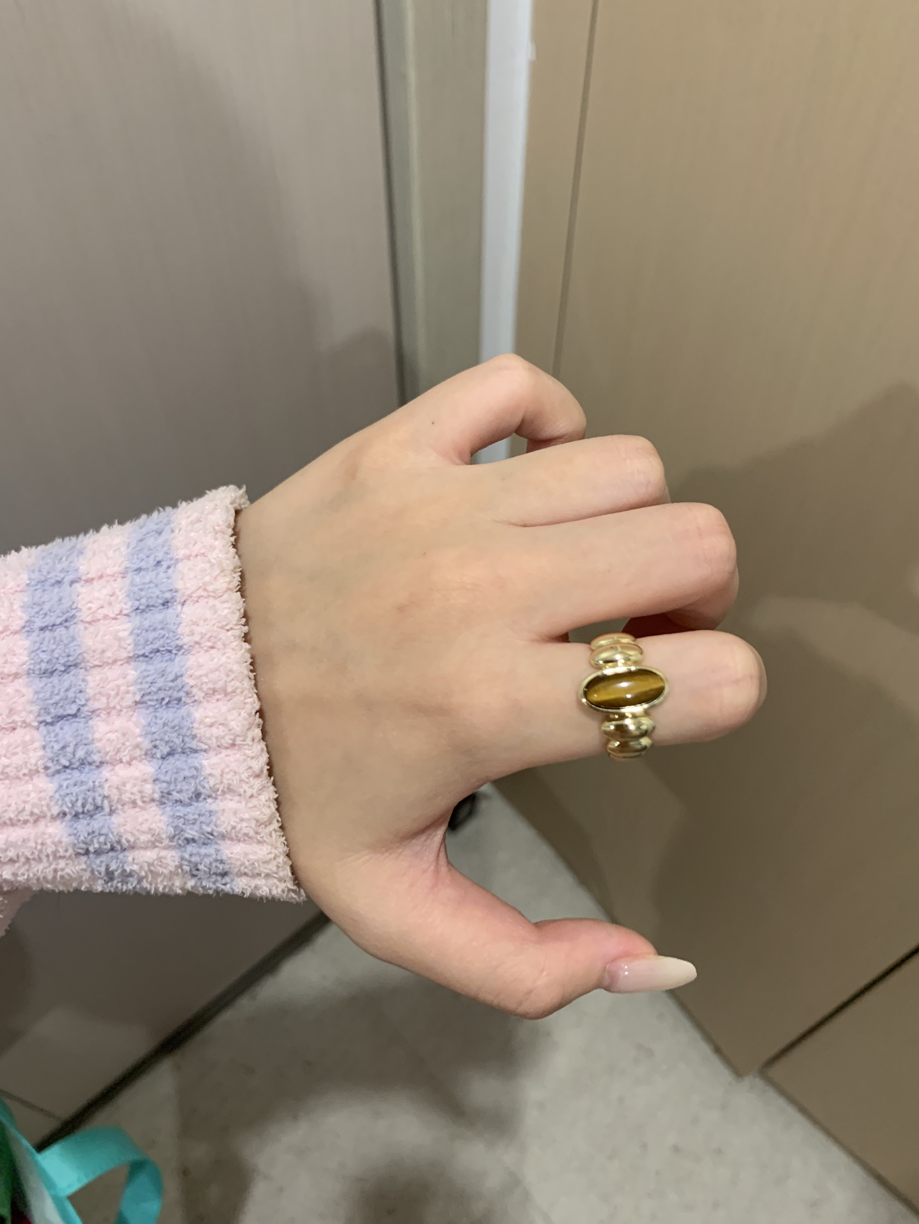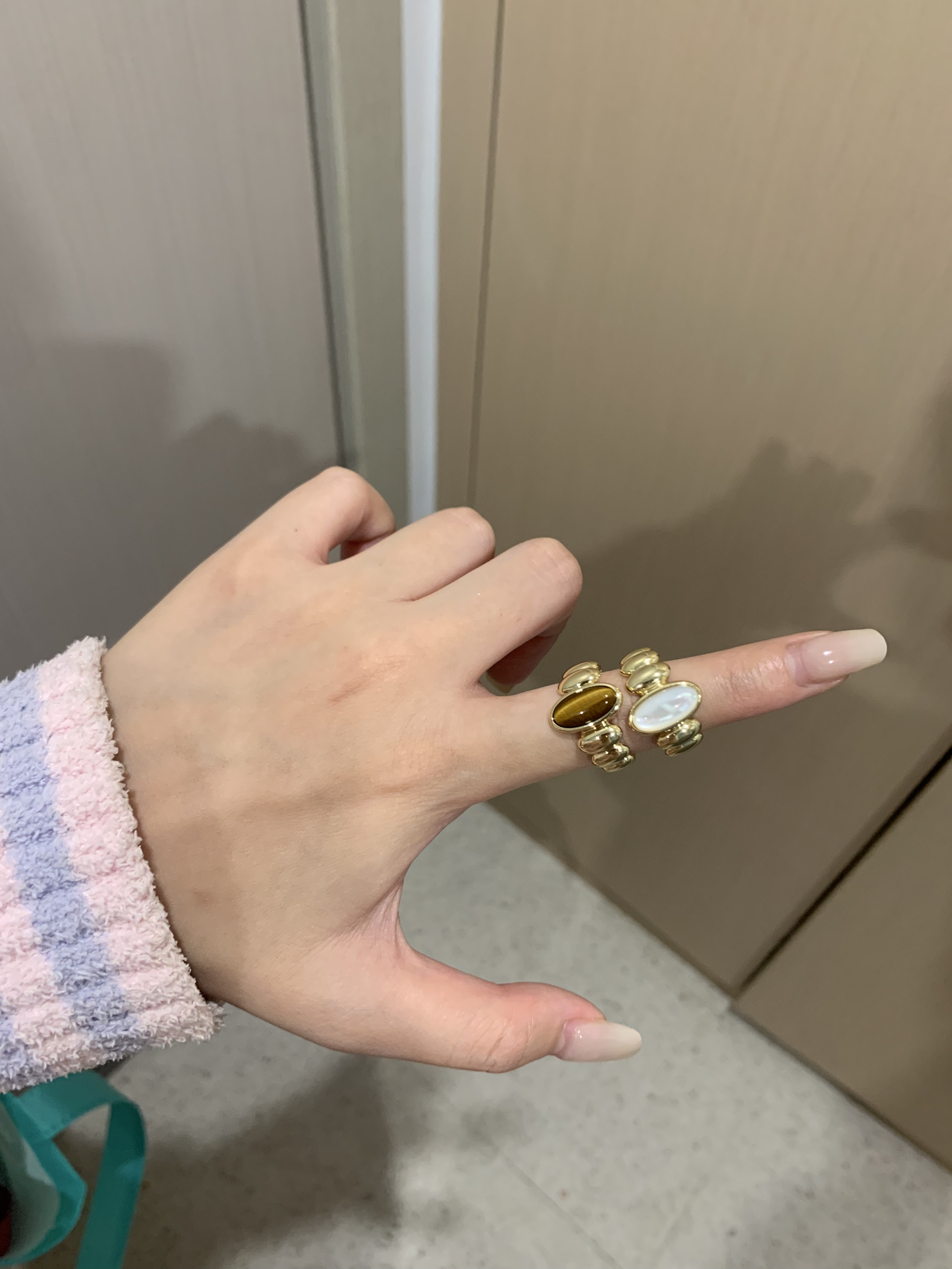 虎眼石/贝母 蛋面设计开口戒指 虎眼石感觉比较适合秋冬 看起来比较沉稳大气 贝母款真的很漂亮很干净 适合穿纯色浅色衣服 虎眼石扣1 贝母扣2