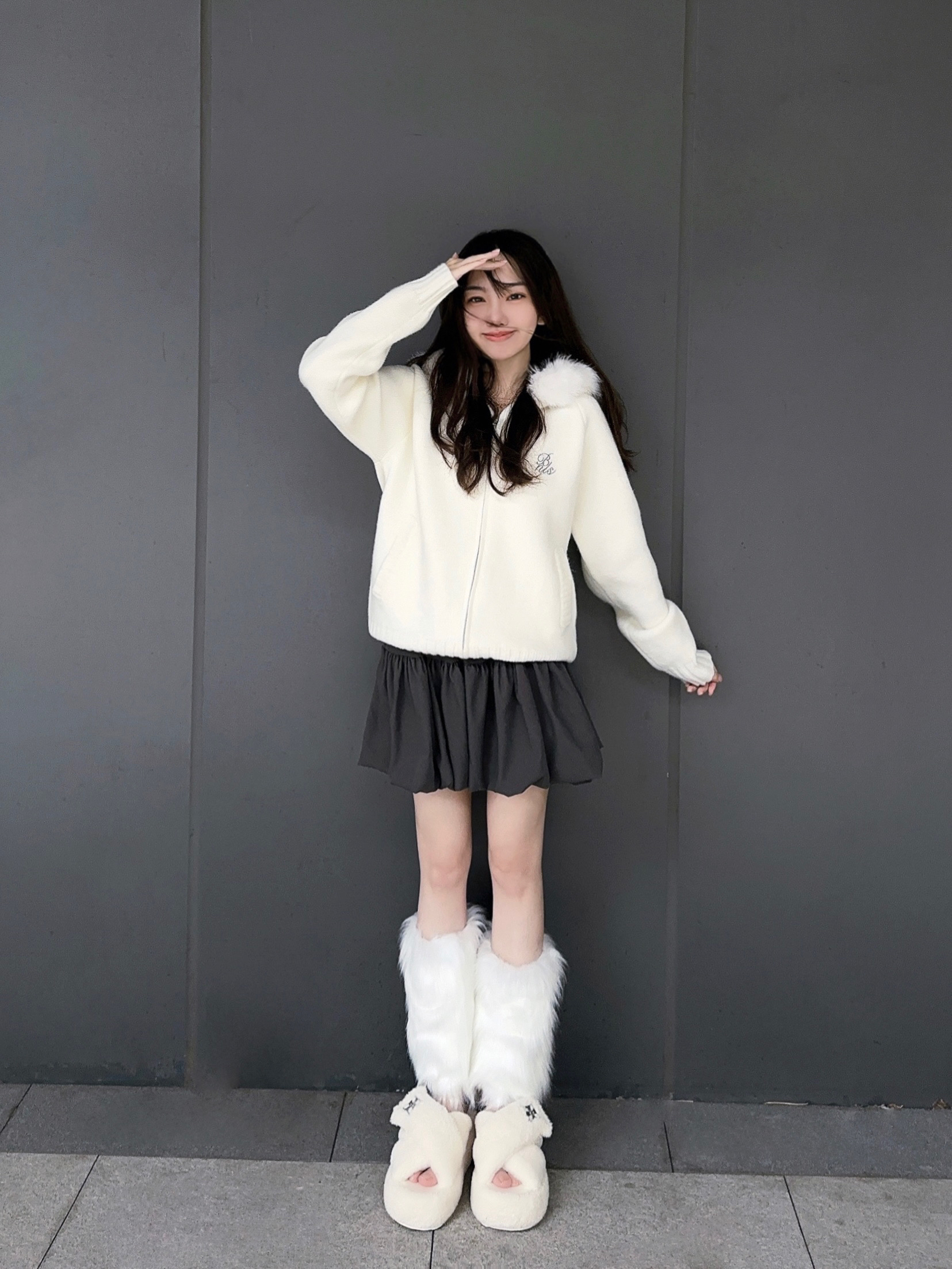 毛茸茸真的很有冬日氛围感 今天穿 BONELESS 毛领毛衣外套+灰色短裙 简约的色系跟冬天也很适配哦 外套上身好减龄呀毛毛领显得很俏皮 软糯的毛衣穿着很暖和,而且不显臃肿哦