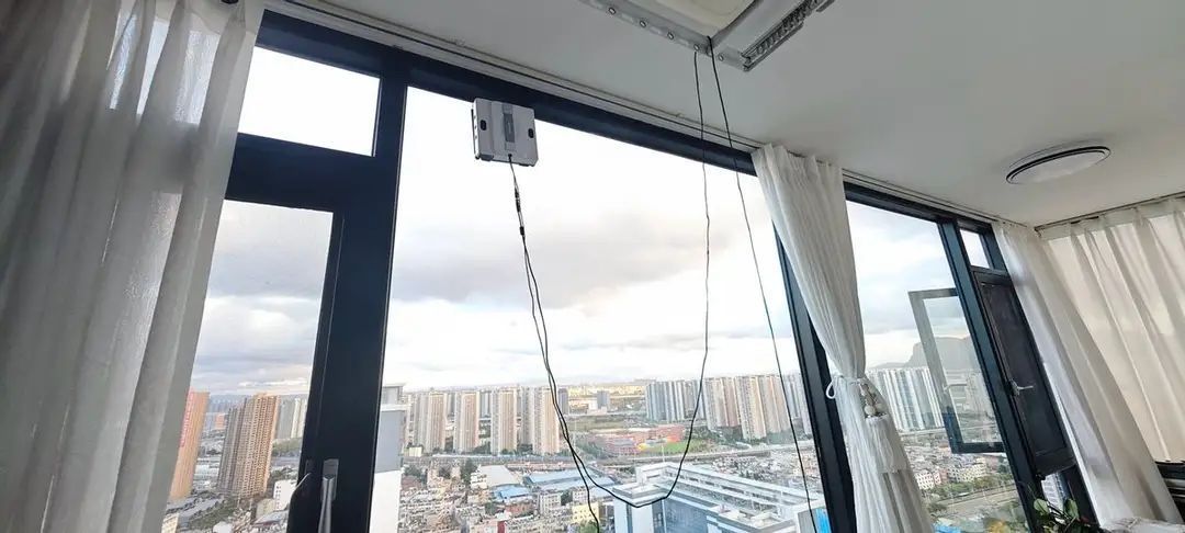 希亦W1擦窗机器人凭借四大核心技术突破,在同类产品中脱颖而出,重量轻,整机才1100克重,使用中的安全性高多了。配置了4.5米长的登山级安全绳,使用时如果意外跌落,有了安全绳就不怕了,同时,4.5米的长度,能轻松覆盖大户型的落地玻璃。直流电源接头也采用了锁紧电源接头。为了减轻机身重量,希亦W1采用外置式电源,交流220V市电通过适配器转换为直流24V向机器供电,为了防止机器运行中意外扯脱电源线,电源插头使用了类似航空插头的螺纹锁紧装置。全功能遥控器可以手动控制机器运行。采用了超声波雾化系统彻底告别水痕。区别于传统喷水机器人,希亦W1创新性采用六个独立超声波喷头阵列左右两侧各三个。实测中,当设备启动时,高频震动将普通清洁水分解为5-10微米级雾滴,通过精密气流导向装置均匀喷洒在玻璃表面。这种雾化方式使水分子在玻璃表面形成纳米级亲水膜,配合擦布的运动旋转擦拭,实现清洁后几乎零水痕残留的突破性效果,在自然风干后水衡完全消失。通过搭载智能压力控制芯片,W1实现了吸附力的动态平衡。其核心在负压系统正常工作时,风机产生持续负压,既保证足够的吸附力,又通过悬浮的清洁擦布不断调整压力让清洁更加彻底。四角的传感器能检测障碍物,如边框、把手等,传感器会即时反馈压力数据,自动调节运动状态,达到避障的目的。吸力非常强,正常工作时不用担心会跌落,W1搭载的AI智能识别系统通过传感器协同工作,自主规划出字形清洁路径,精准避让窗框金属件,自动调节负压吸力。全过程都有普通话语言提示。无论是内部还是外侧,擦得非常干净,以前年底大扫除时最怕的就是擦玻璃,无论怎么擦,干了都有水印,现在用W1擦,即擦即干,没有水印。在机身内部设置了一个600mAh应急电池在意外断电时能够保持吸力并启动回位,足够用户完成紧急救援操作。