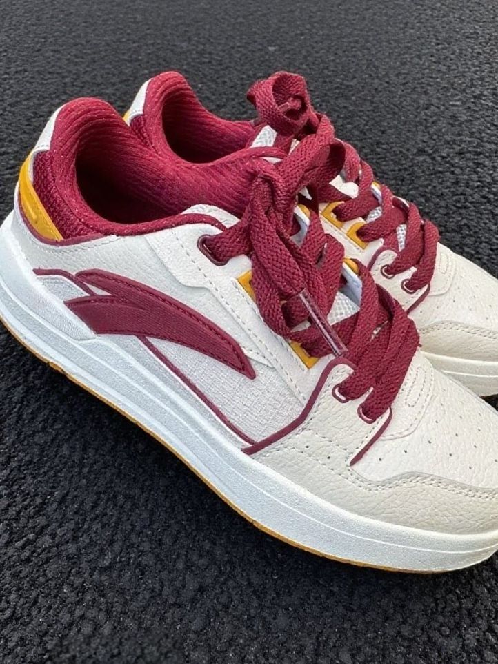 第一眼就被它的配色戳中,米白配酒红加点点黄,复古又有活力,日常搭牛仔裤、运动裤都很绝,出街不撞款~材质是那种软乎乎的皮面,摸起来很有质感,鞋带和鞋口的细节也很用心👍 上脚是真舒服,鞋底软软的,走路逛街一整天也不觉得累。板鞋的版型很百搭,不管是上学、逛超市还是和朋友压马路,穿它都很合适,妥妥的日常穿搭刚需~ 唯一小缺点就是白色部分有点不耐脏,得偶尔擦擦,但这颜值和舒适度,完全可以接受啦~总之,这双鞋...