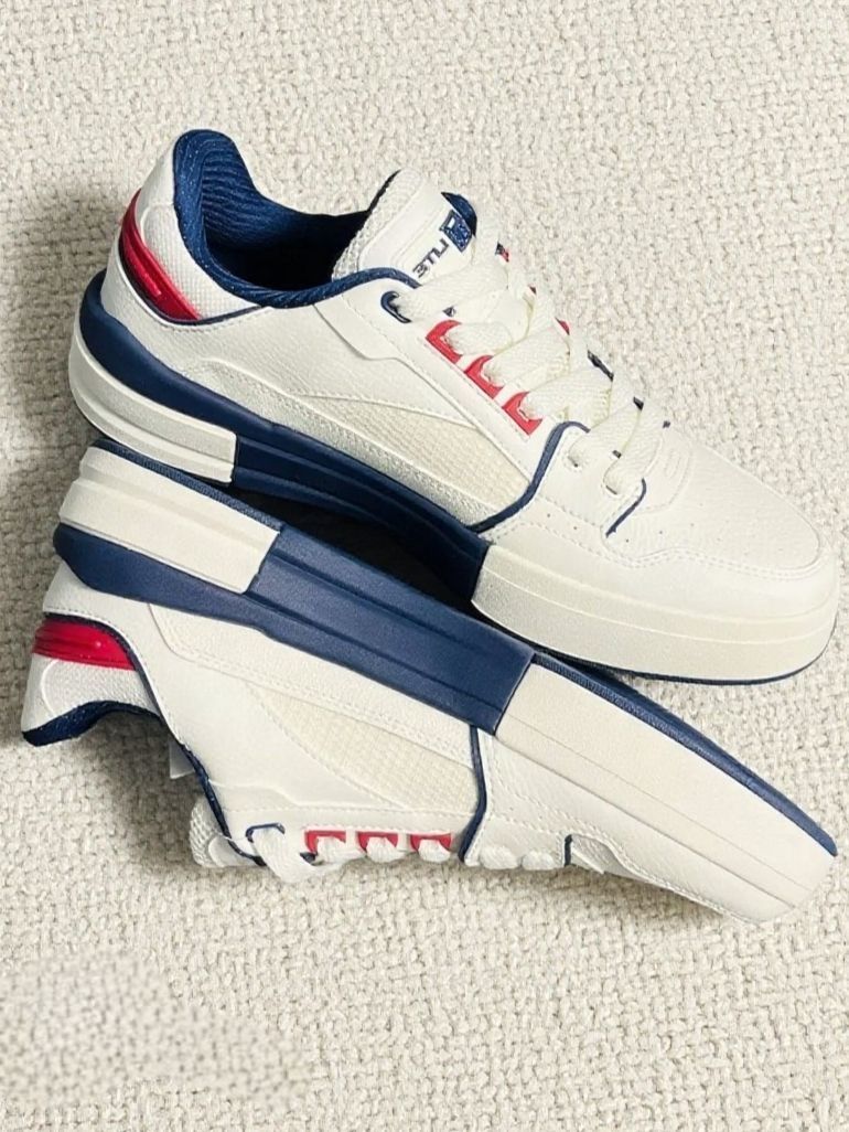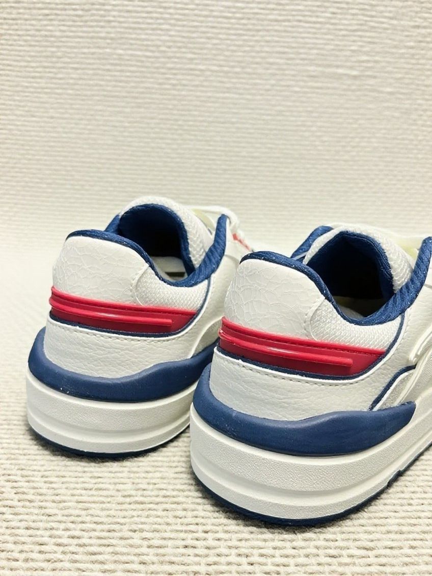 白蓝红的配色太经典了,复古又有活力,板鞋的款式不管搭工装裤、连衣裙都很可,出门随便一穿就很有范儿~皮质鞋面摸起来很扎实,细节处的缝线也很精致✔️ 上脚特别舒服,鞋底软软的,逛一下午街也不觉得累。平时上学、和朋友逛公园都爱穿它,舒服又时髦,回头率还挺高~ 就是白色部分有点容易脏,得勤快点擦,但这颜值和舒适度,完全能接受啦~真心推荐给喜欢简约又好穿的小伙伴们👟