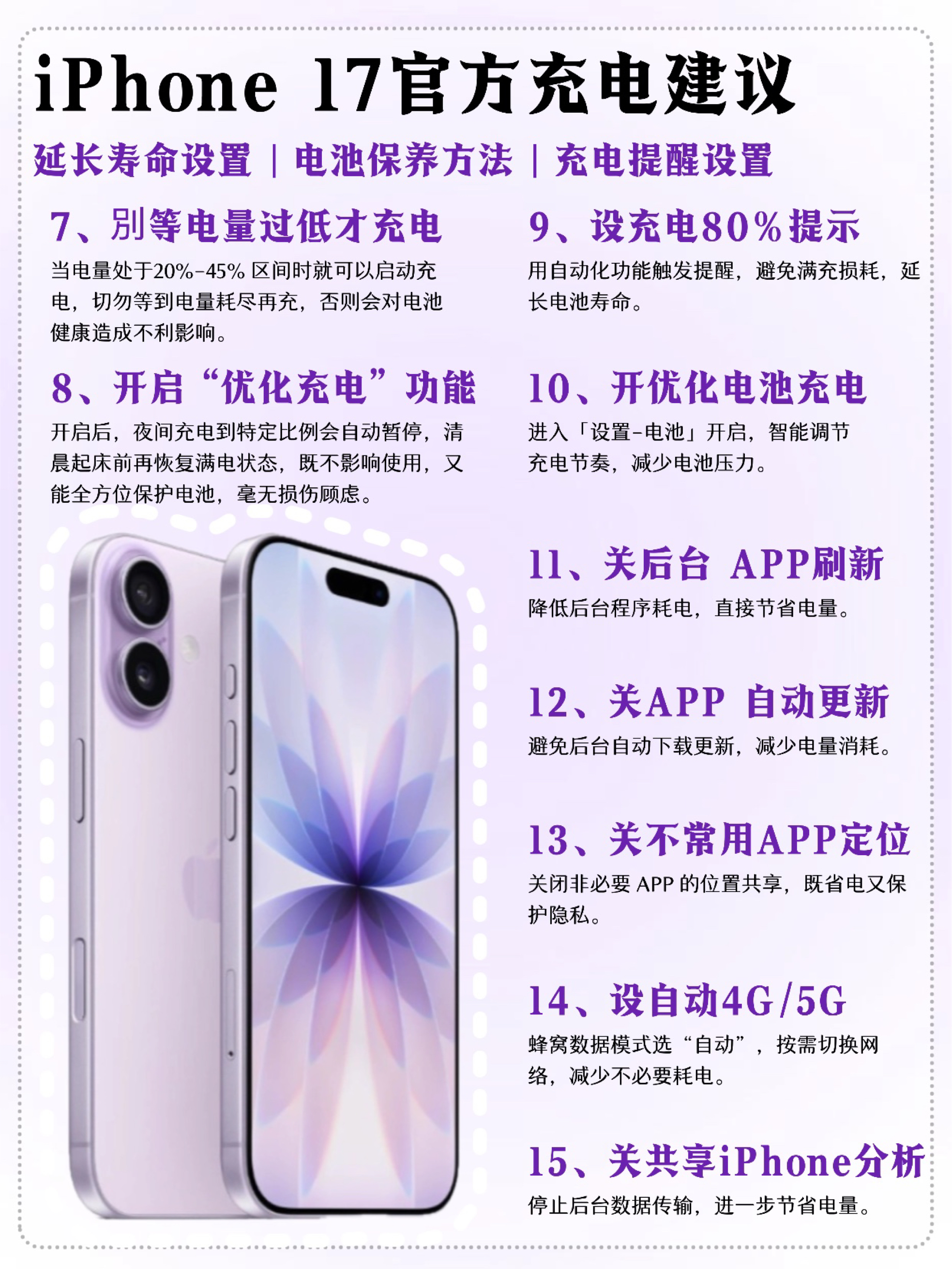 本篇笔记关联了Apple/苹果 iPhone17 5G 手机 超瓷晶面板2 防刮屏幕技术 6核CPU 5核GPU 120hz高刷 1800万前摄 自适应AI摄像 双卡 全网通 视网膜屏 薰衣草紫色等商品,为用户提供真实的使用体验和购买参考。