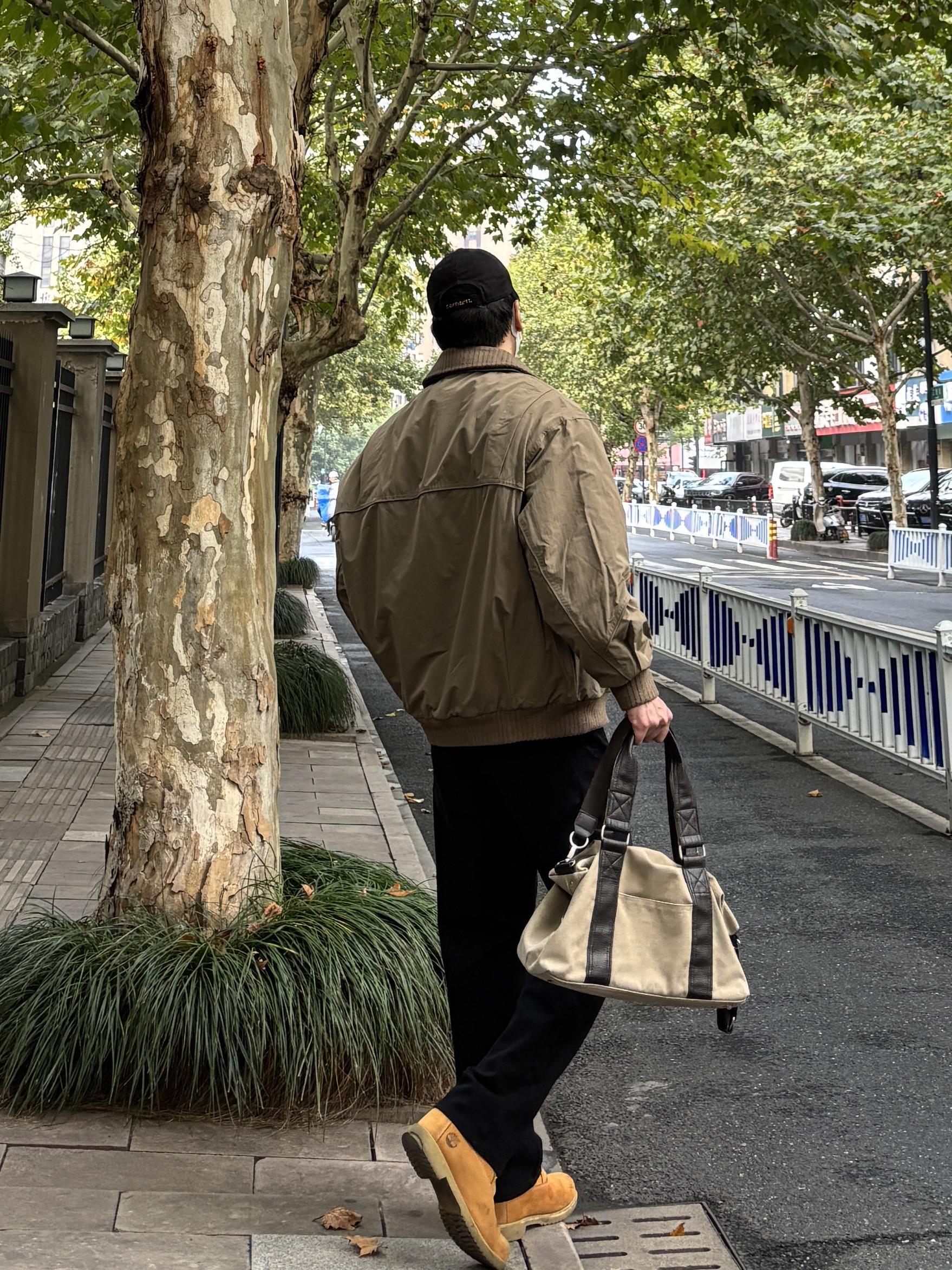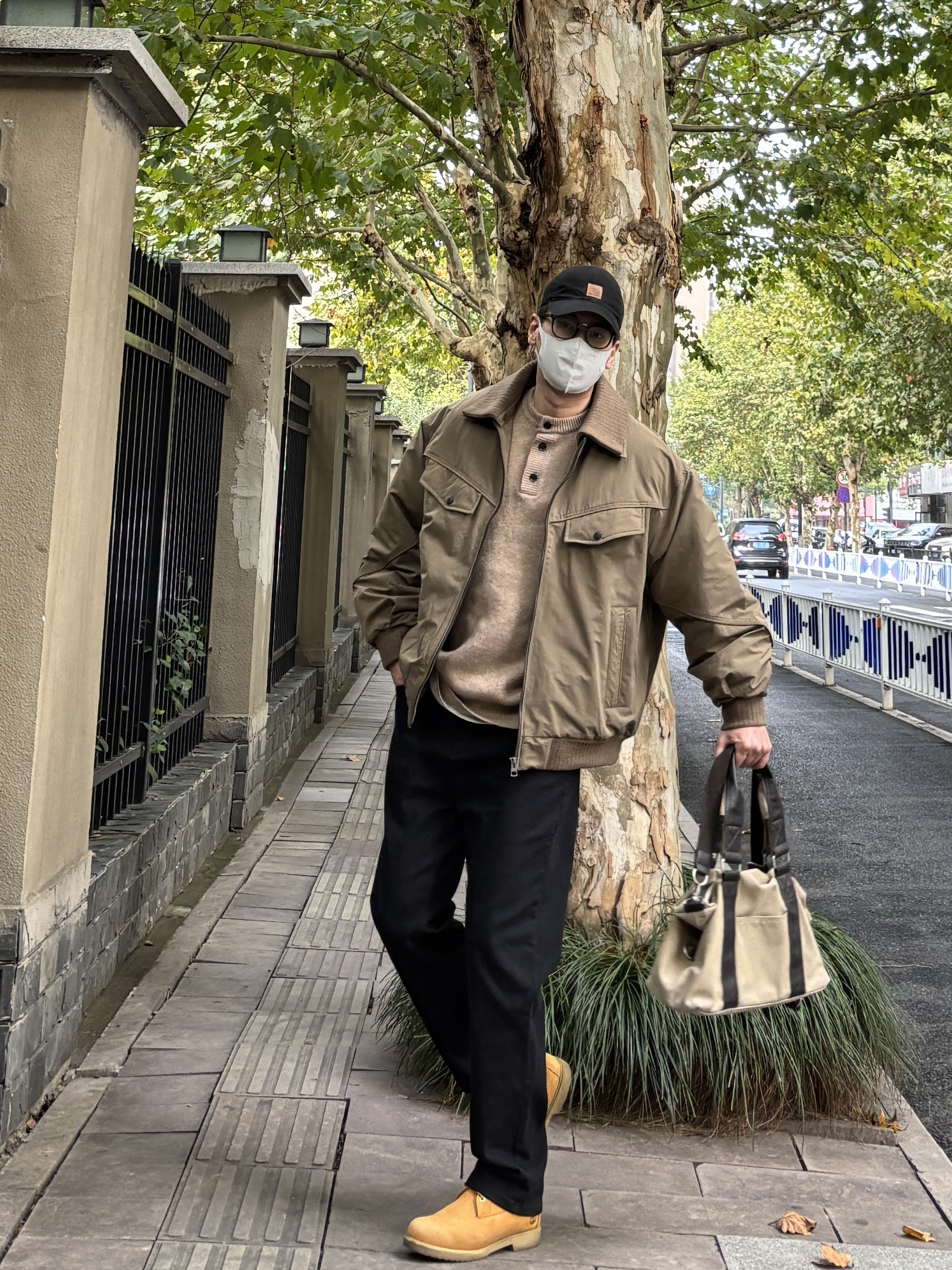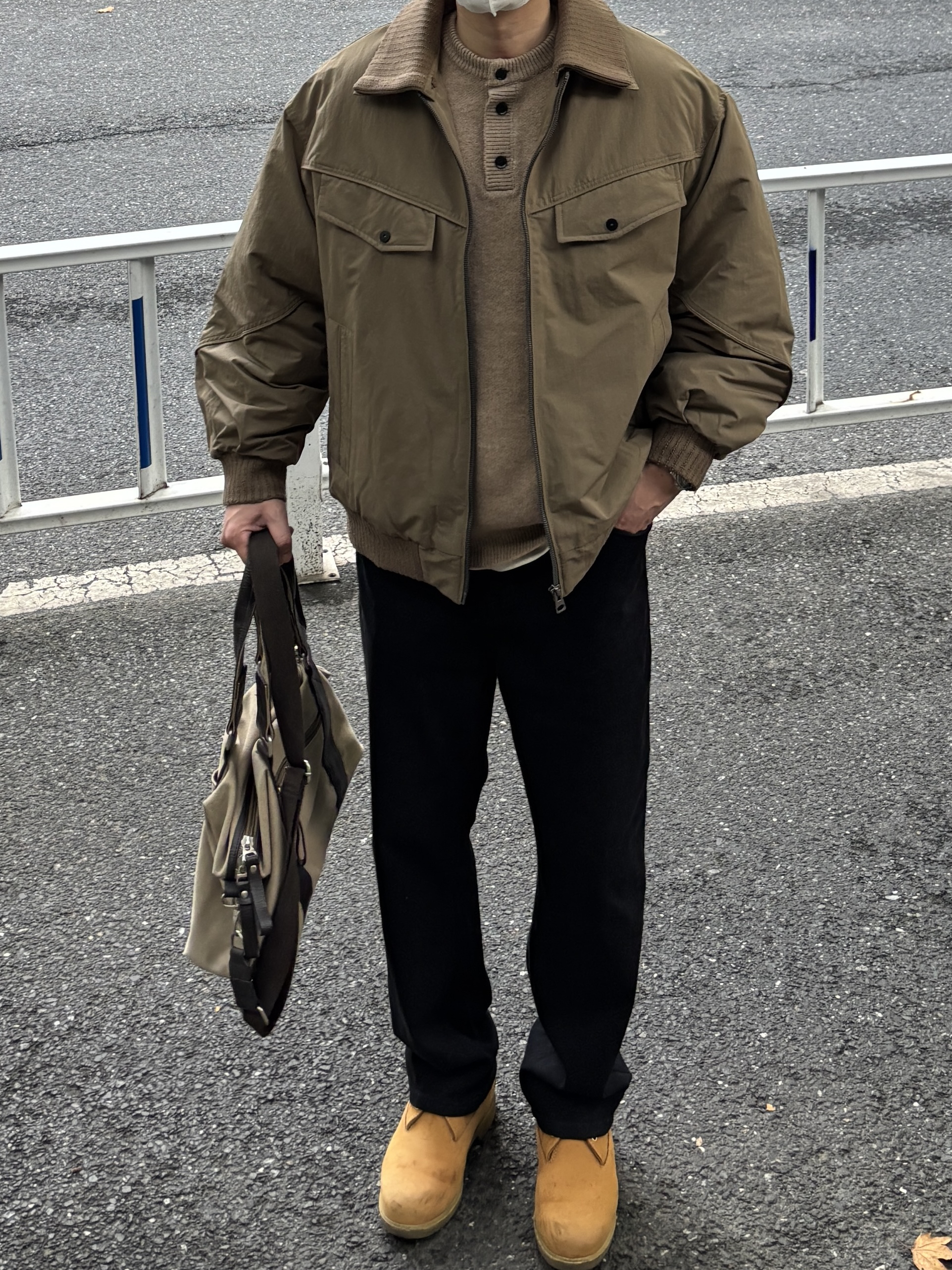 降温天就想把温暖穿在身上~ 咖啡色棉服夹克双层翻领自带层次感,防风性也不错,内搭卡其色亨利领毛衣中和厚重感,黑色直筒牛仔裤简约利落,穿双复古工装靴、拎个帆布拼接手提包,日常这样穿出门随性又很有味道🙋♂️ - 今日搭配 衣服裤子都来自:NICE LILI 鞋子:timberland