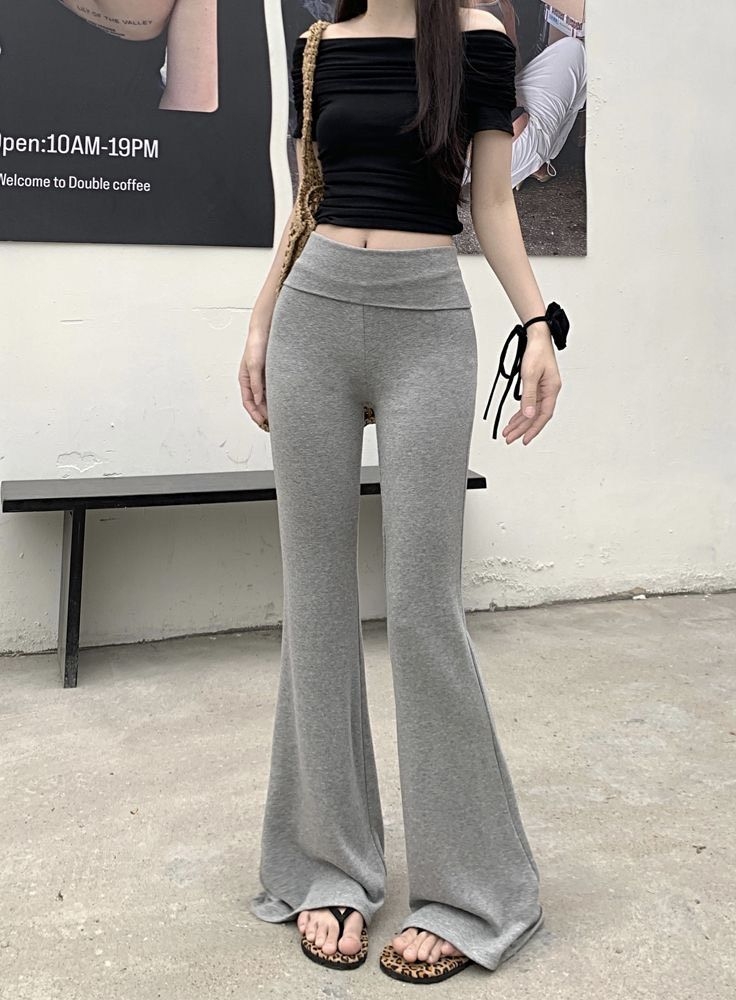 这套“辣妹松弛感”穿搭太戳我!一字肩黑上衣掐出蚂蚁腰,灰调高腰喇叭裤把腿拉到一米八,软乎乎面料舒服到像没穿~配豹纹拖随性又辣,日常出街/咖啡探店都适配,谁穿谁是氛围感美女!