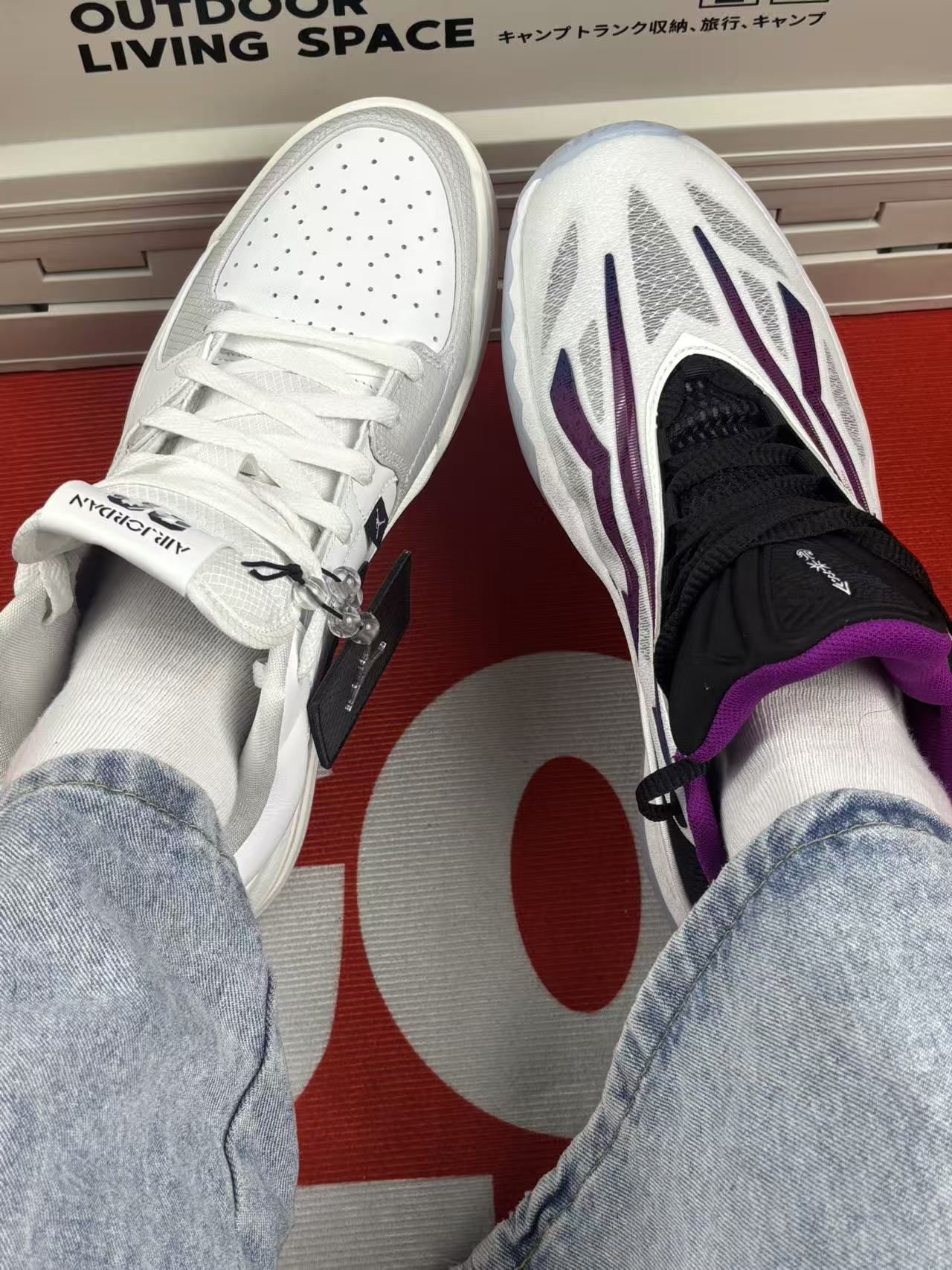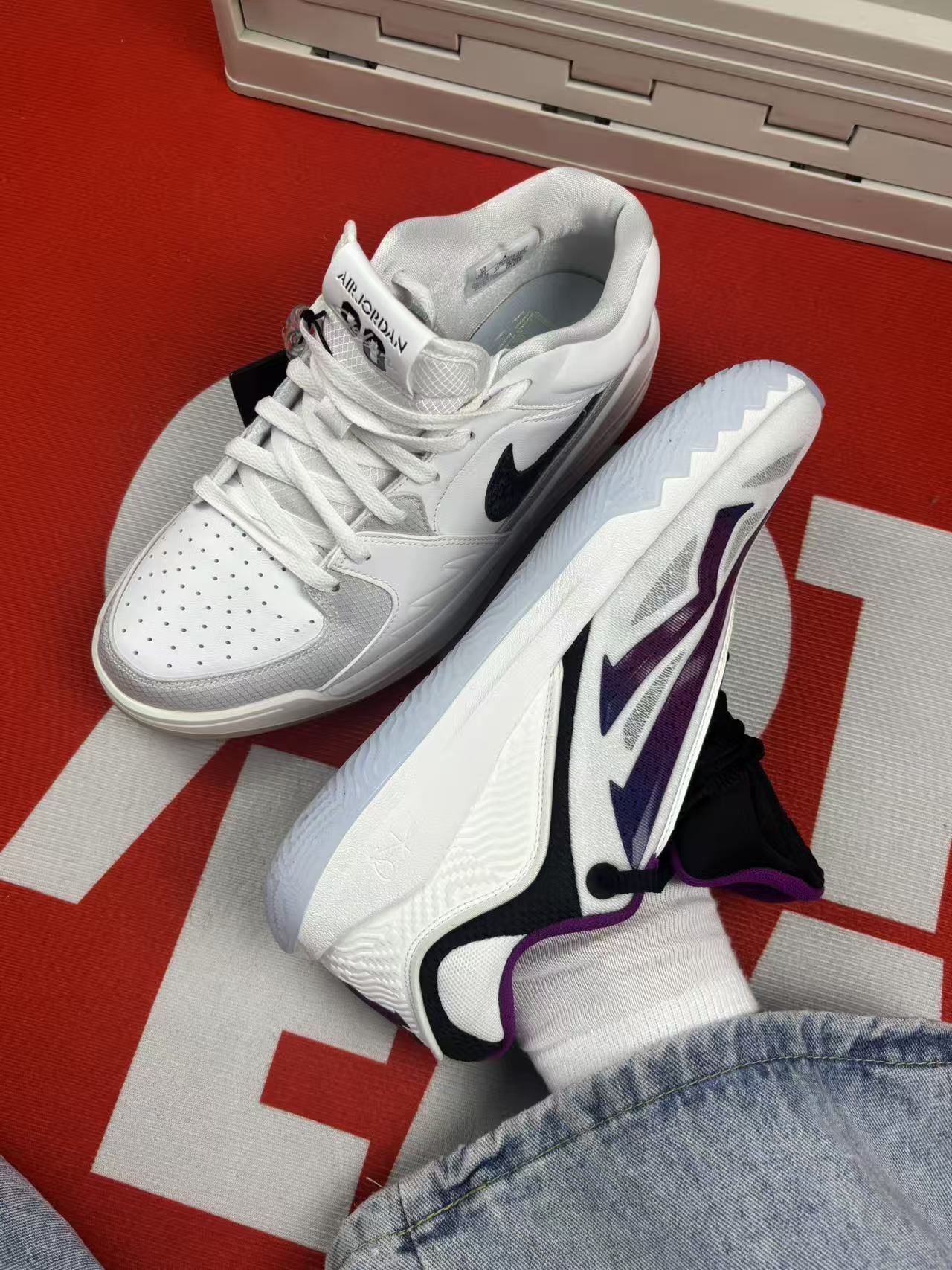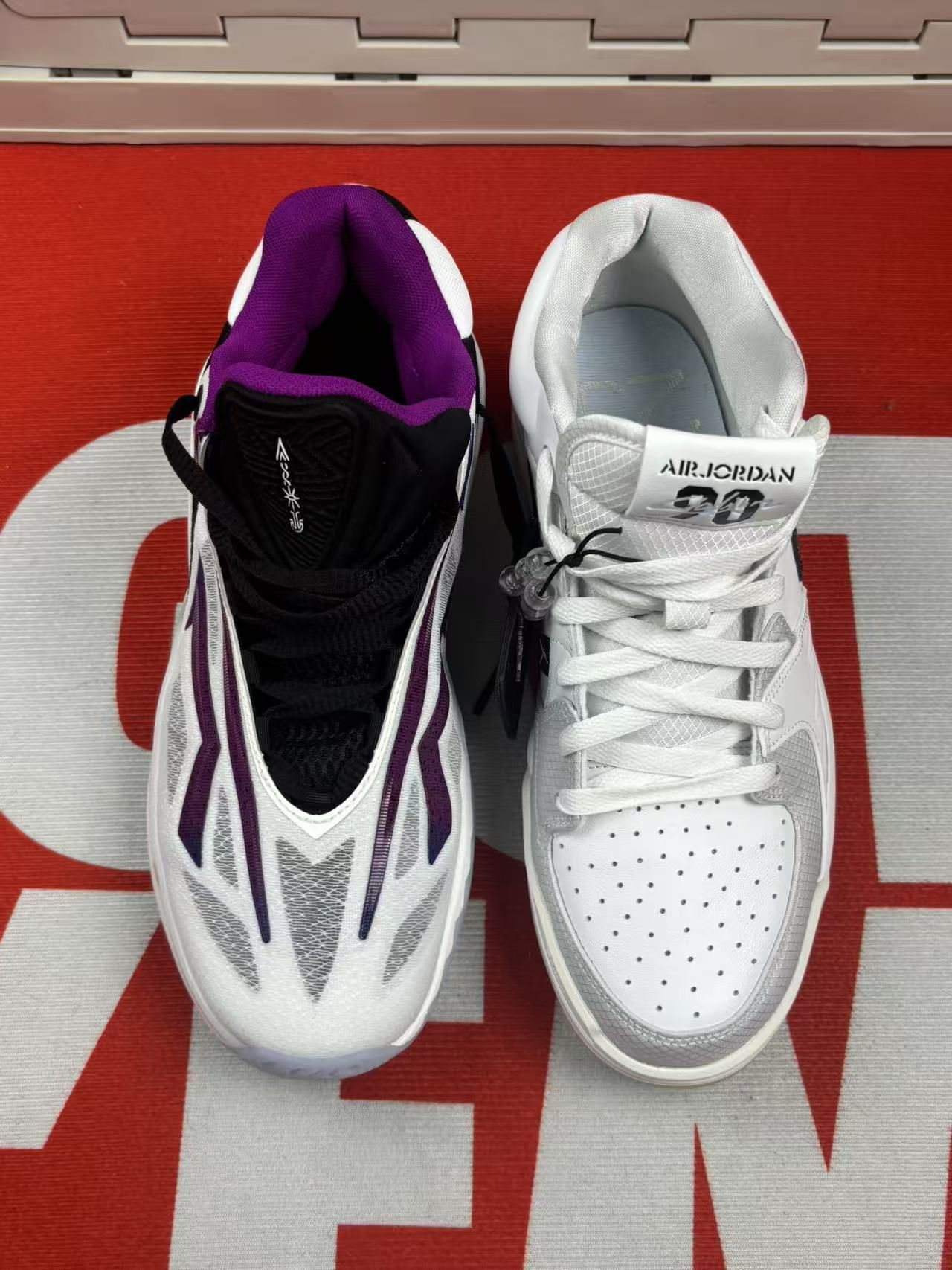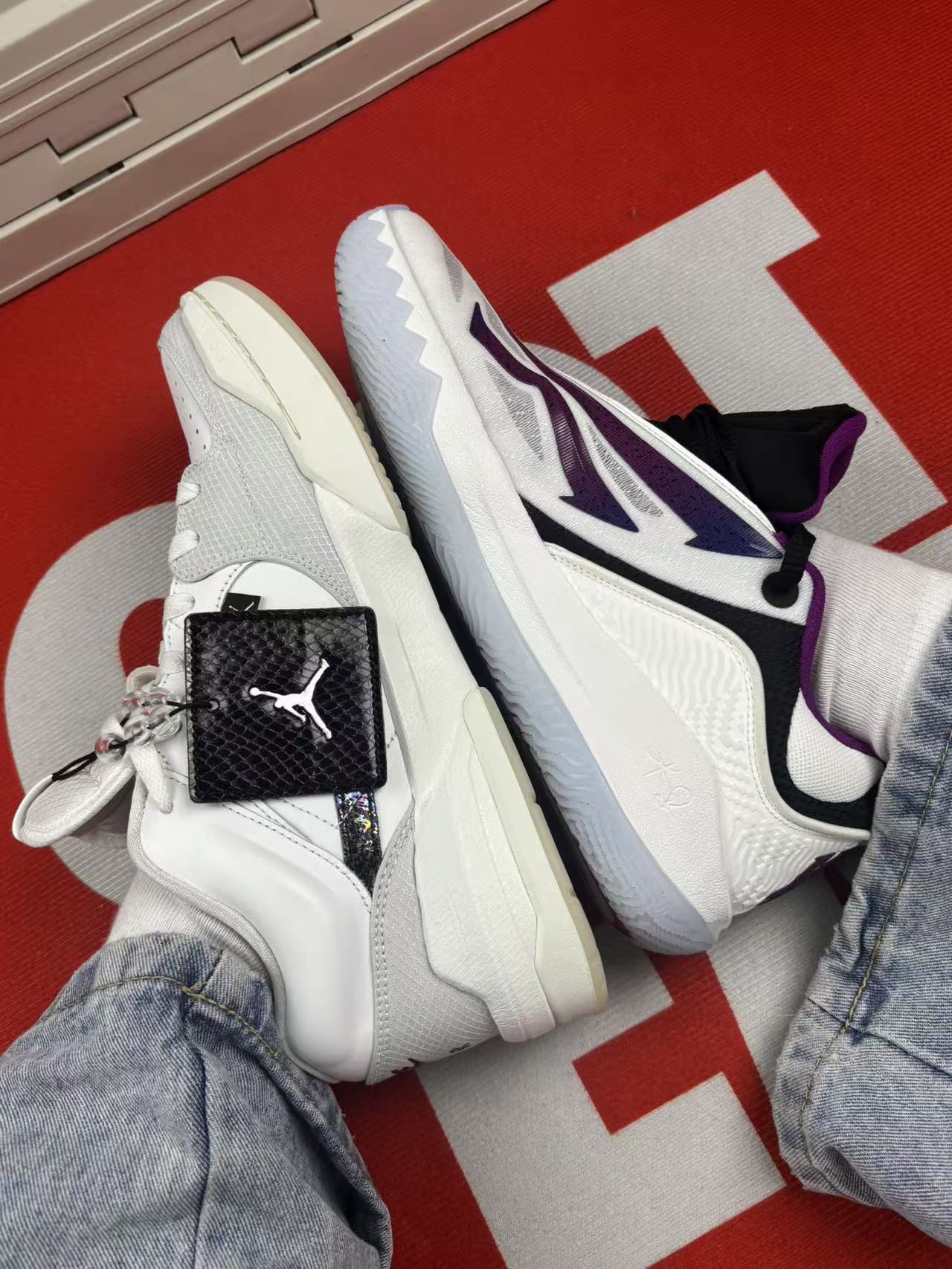 先说说安踏这双欧文先驱二代:上脚第一感觉是鞋底软度刚好,打球时减震算舒服,但中腰的尼龙片支撑感一般,急停时脚会有点晃。鞋面包裹偏紧,脚宽的得选大半码,而且透气性普通,打半场球脚就有点闷。白黑紫配色挺耐看,就是鞋边容易蹭脏,擦起来费点劲。 再讲Jordan这双蛇年限定:脚感偏硬,刚穿那几天得适应下,不过踩开后日常走路还算稳。低帮设计活动方便,但脚踝包裹弱,打球时得自己多系紧鞋带。鞋身的闪粉装饰容易掉...