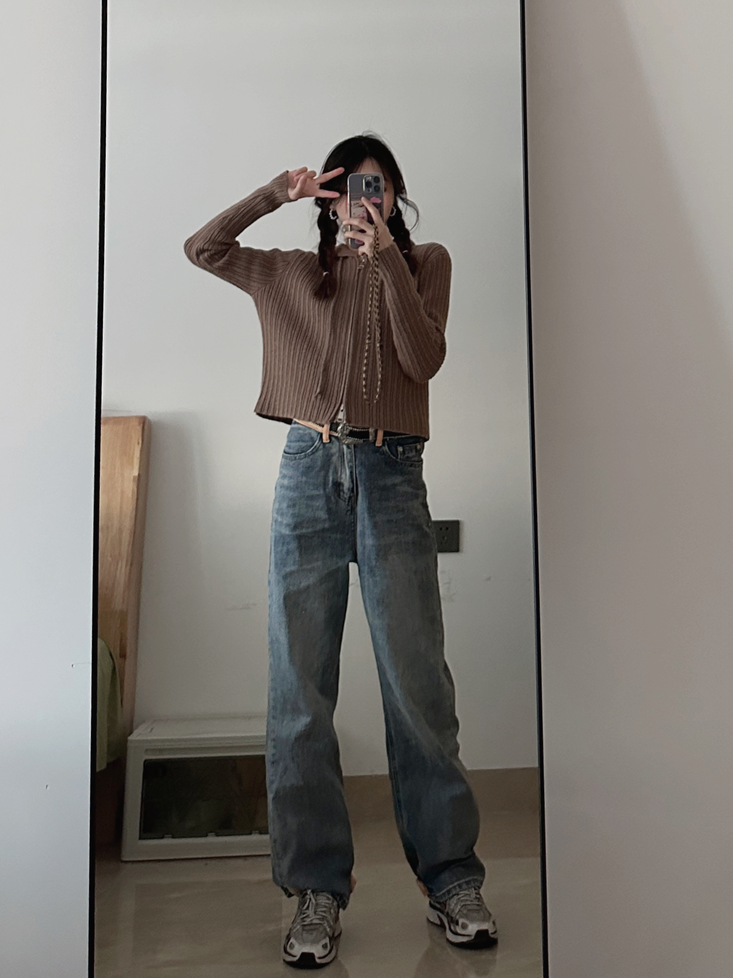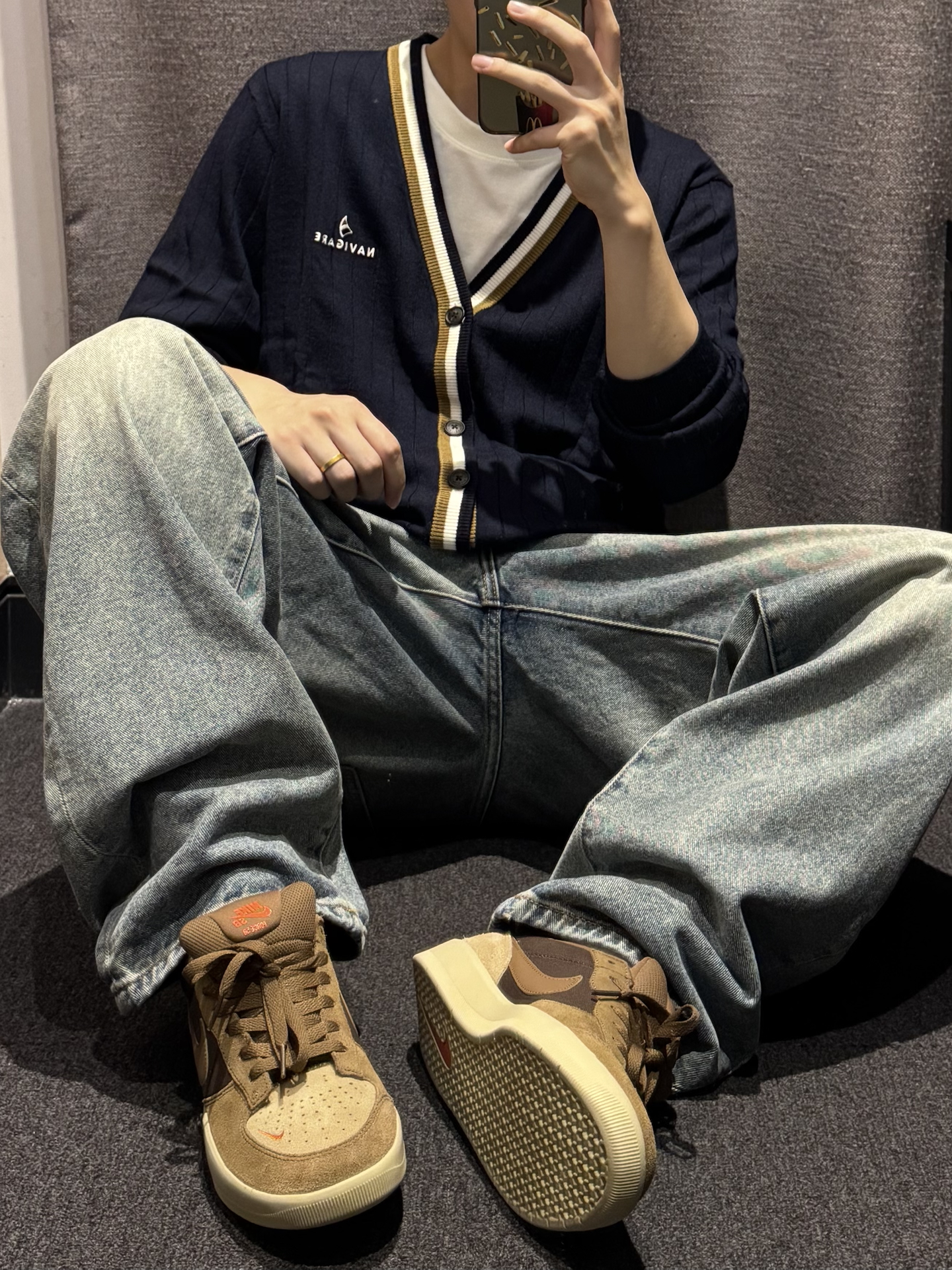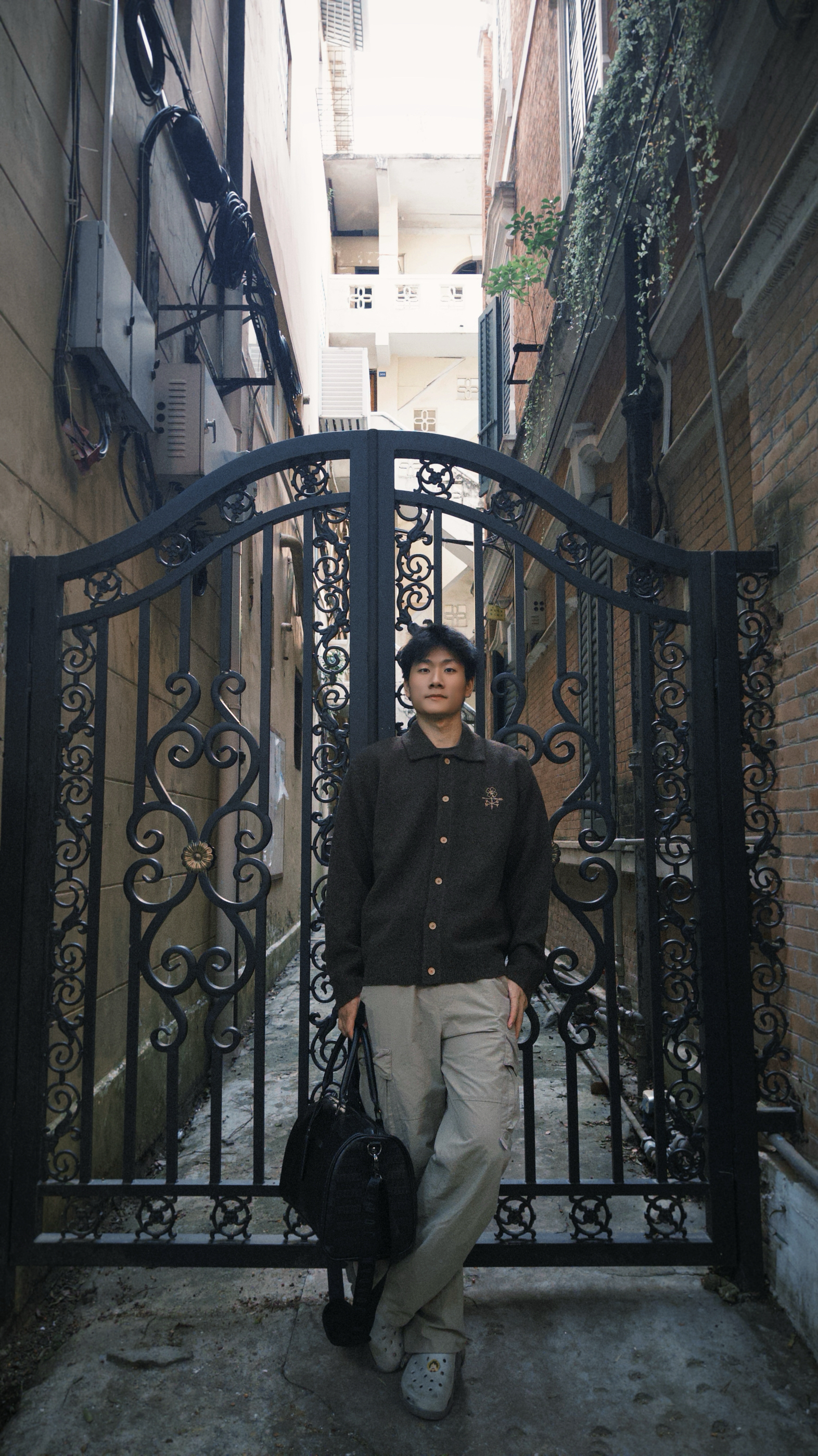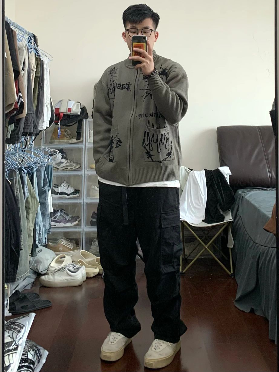 钻进老巷的复古氛围里,这件棕系开衫刚好踩中调性。暗纹刺绣藏着细节质感,翻领+排扣设计自带松弛感,搭卡其工装裤+大容量包,往铁艺门旁一靠,老建筑的故事感直接拉满。 软乎乎的针织面料贴肤不扎,早秋单穿刚好适配温差,日常通勤/扫街穿它,慵懒又不失格调。