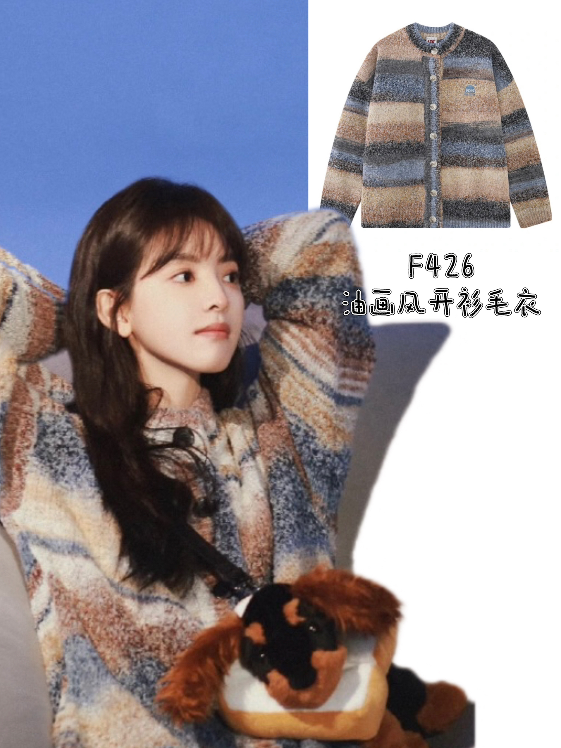 本篇笔记关联了【郭颖Yamy同款】F426 美式不规则油画彩虹渐变撞色V领单排扣开衫毛衣 BDMY23SS-4950 蓝绿等商品,为用户提供真实的使用体验和购买参考。