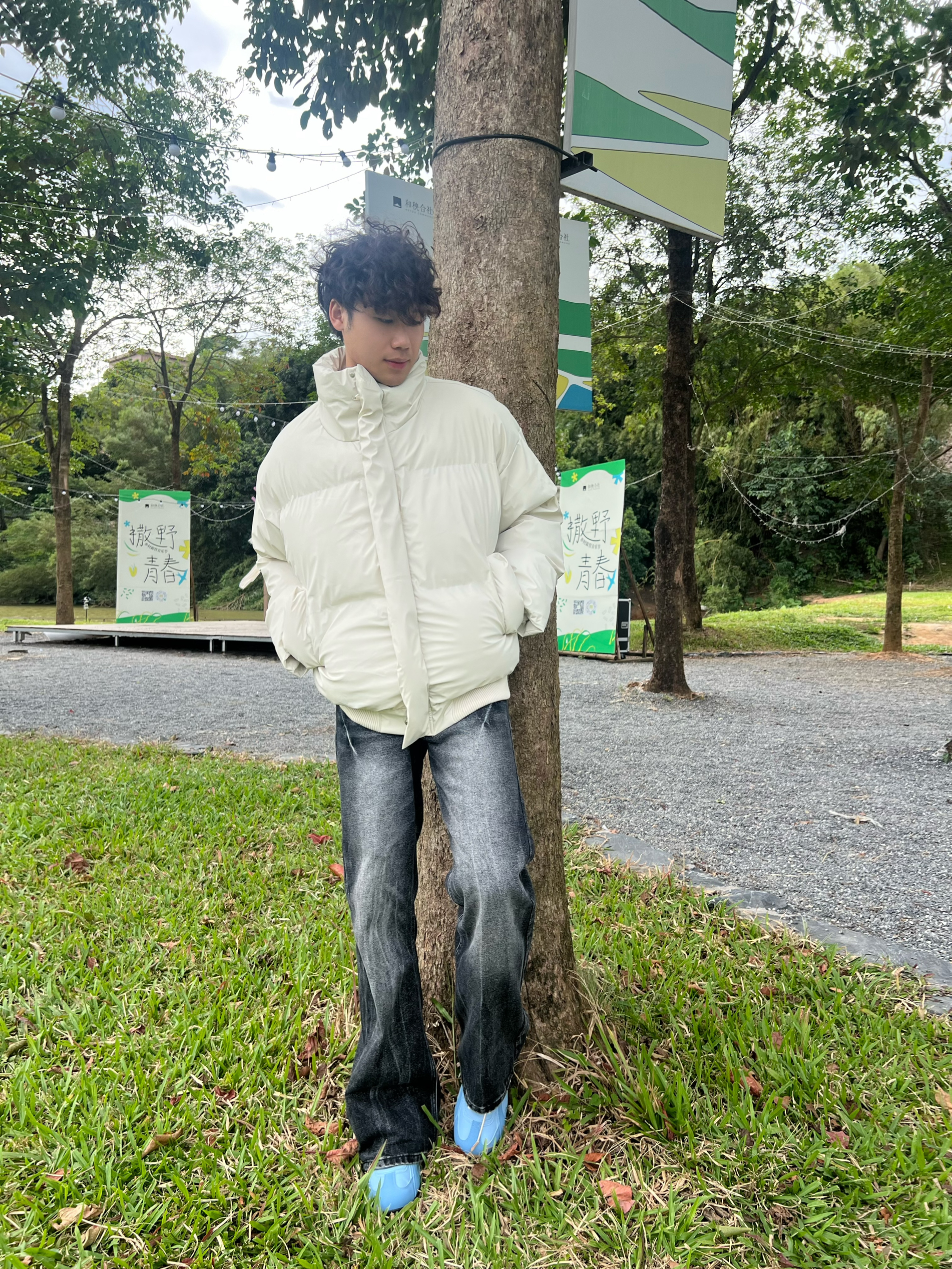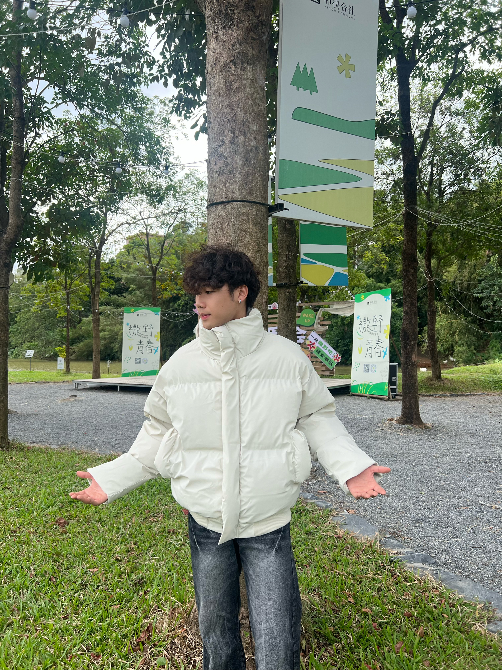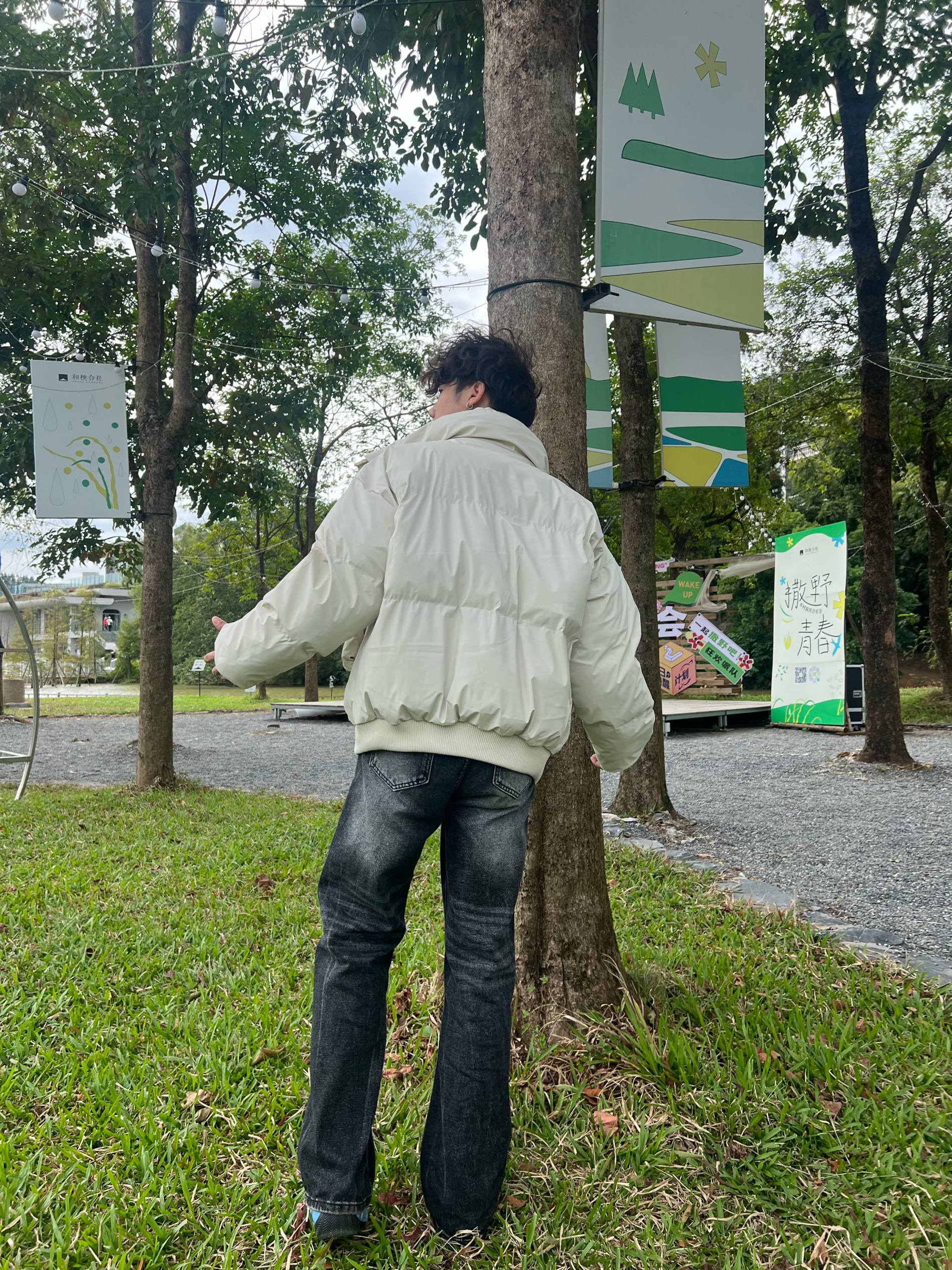 这件奶白面包服也太懂秋冬了!面料软滑还抗风,蓬松度刚好不臃肿,立领设计裹得暖乎乎~内搭基础白T适配度拉满,深灰阔腿裤垂感绝了,水洗做旧质感高级又藏肉!浅蓝鞋点亮整套,慵懒又有层次✨舒服保暖还能穿出少年感,这质量+颜值直接焊在身上!