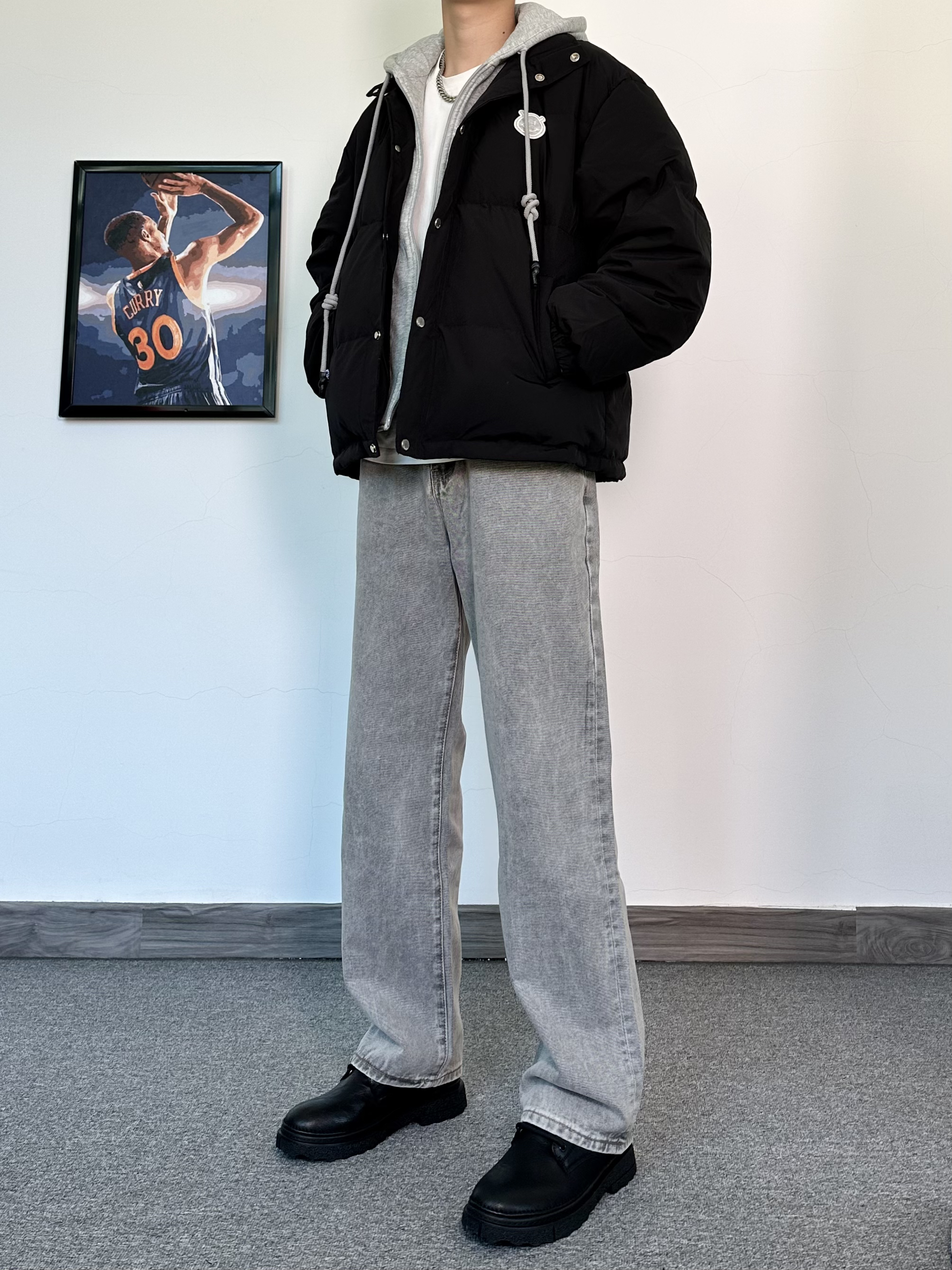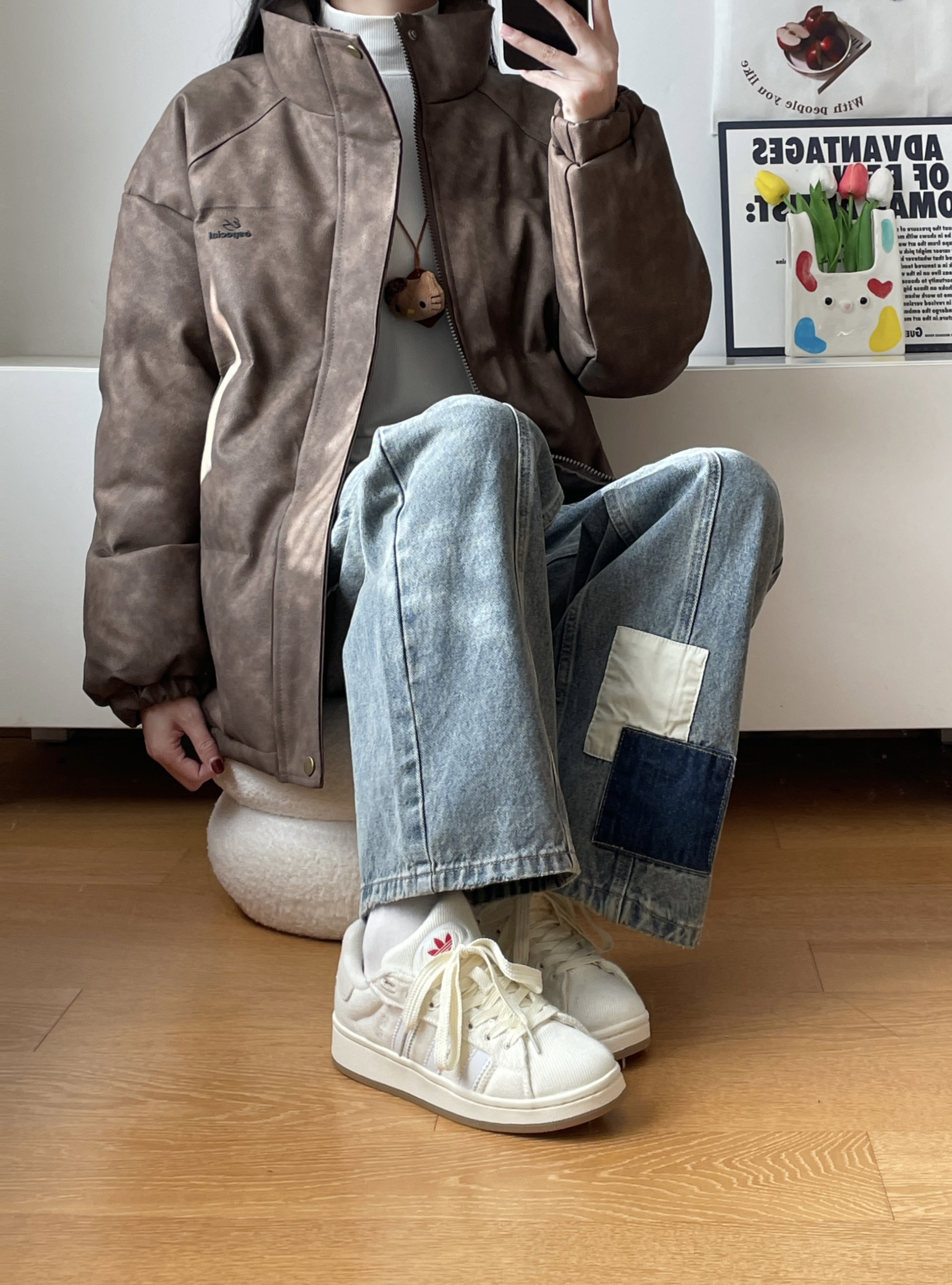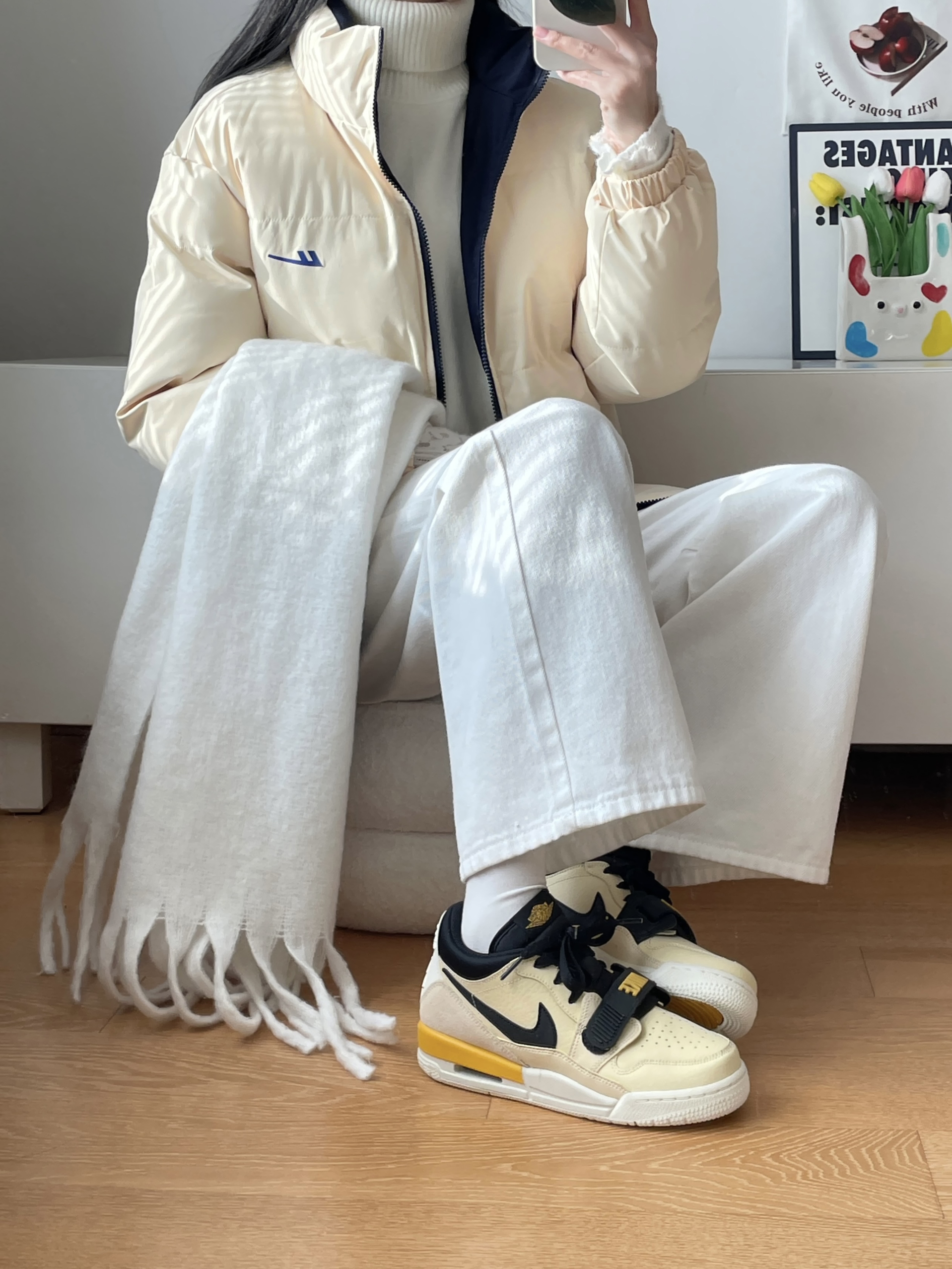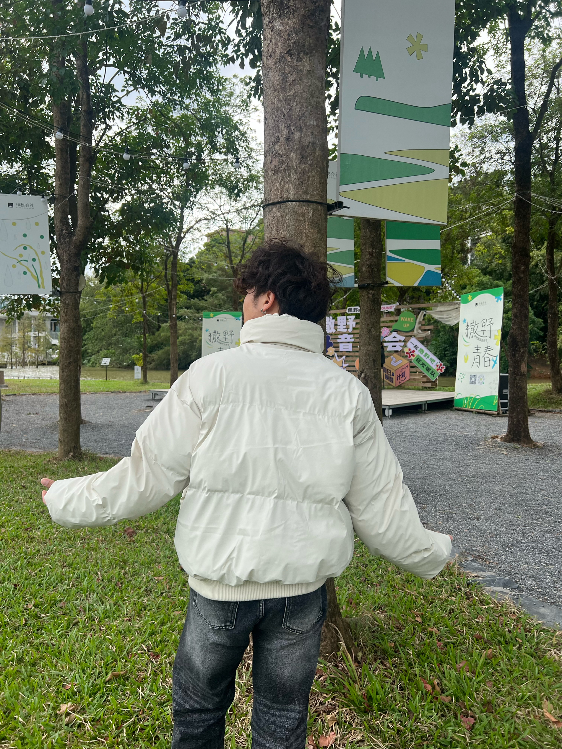 这件奶白面包服也太懂秋冬了!面料软滑还抗风,蓬松度刚好不臃肿,立领设计裹得暖乎乎~内搭基础白T适配度拉满,深灰阔腿裤垂感绝了,水洗做旧质感高级又藏肉!浅蓝鞋点亮整套,慵懒又有层次✨舒服保暖还能穿出少年感,这质量+颜值直接焊在身上!