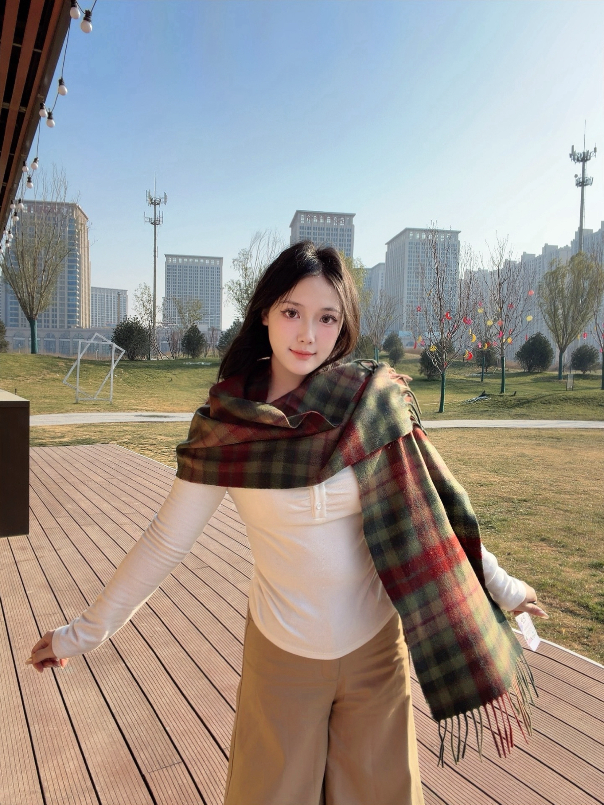 这个围巾🧣搭配白色小熊毛衣,真的很好看👀,很舒服,绝绝子。你们觉得呢?