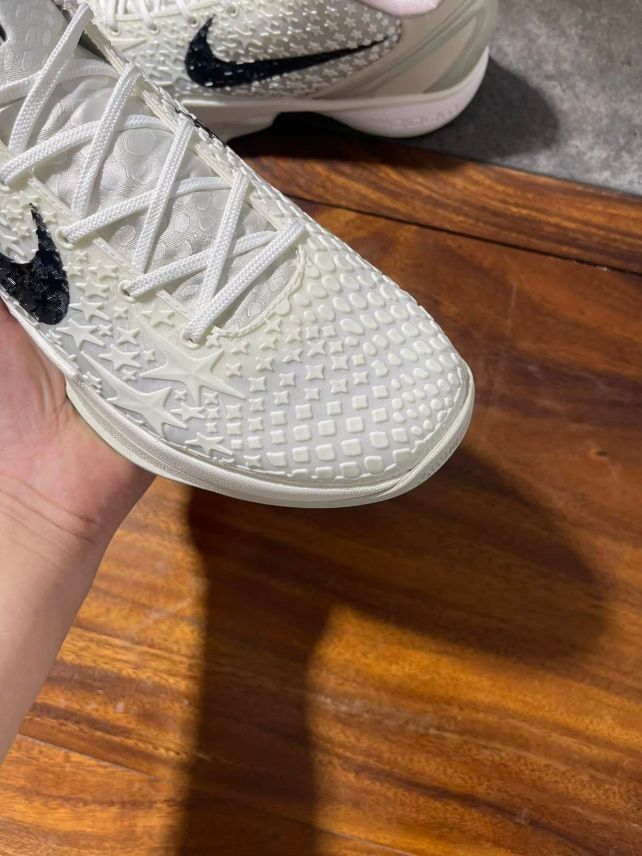 兄弟们,这双科比战靴的细节真的顶! 鞋面星星纹理+灰色渐变,实物比照片还好看。上脚踩开Zoom气垫后,反馈特别清晰,启动不拖沓。 后跟的签名细节和Mamba标识,懂的都懂。无论是压马路还是实战,都是一把好手。