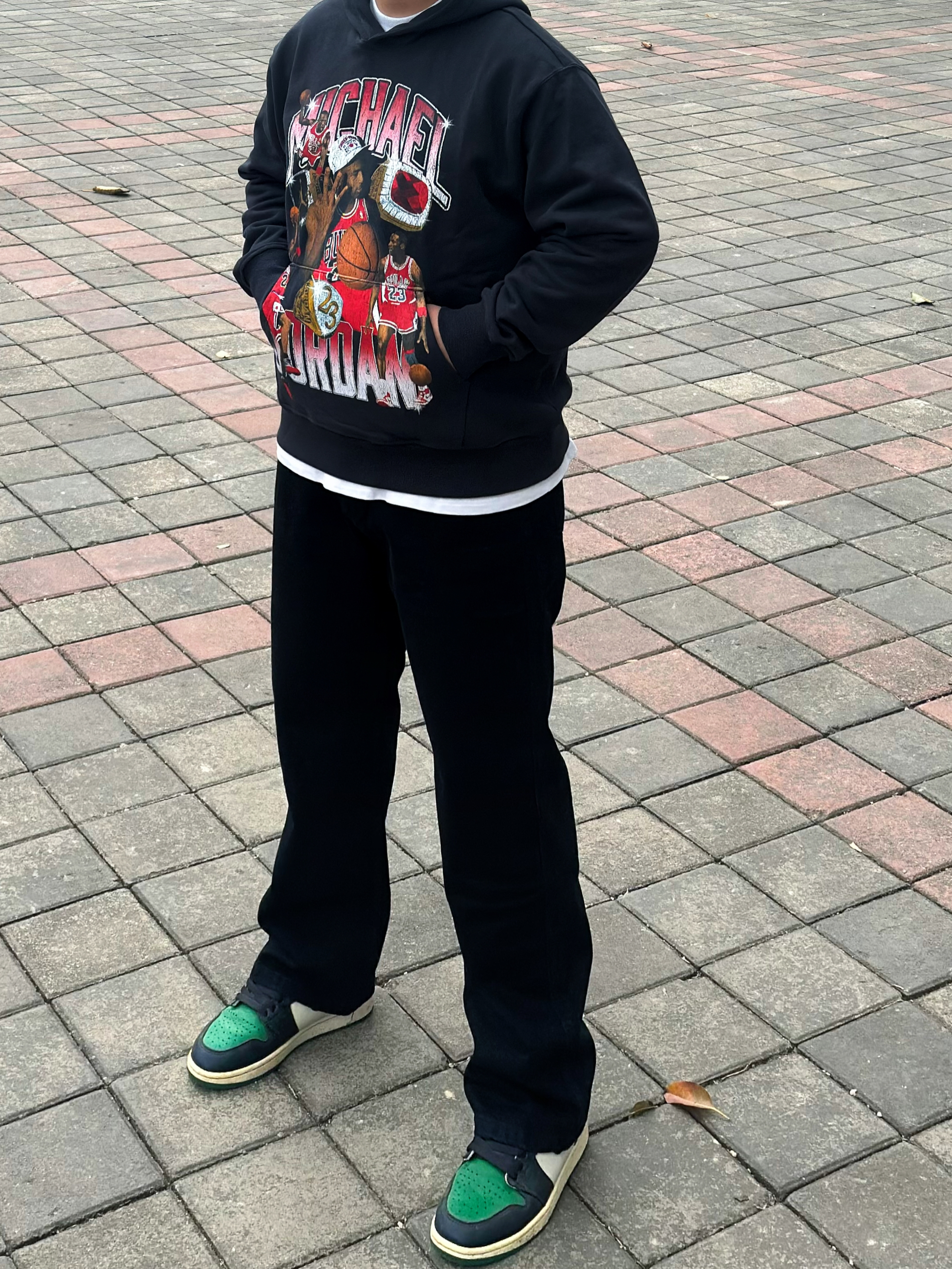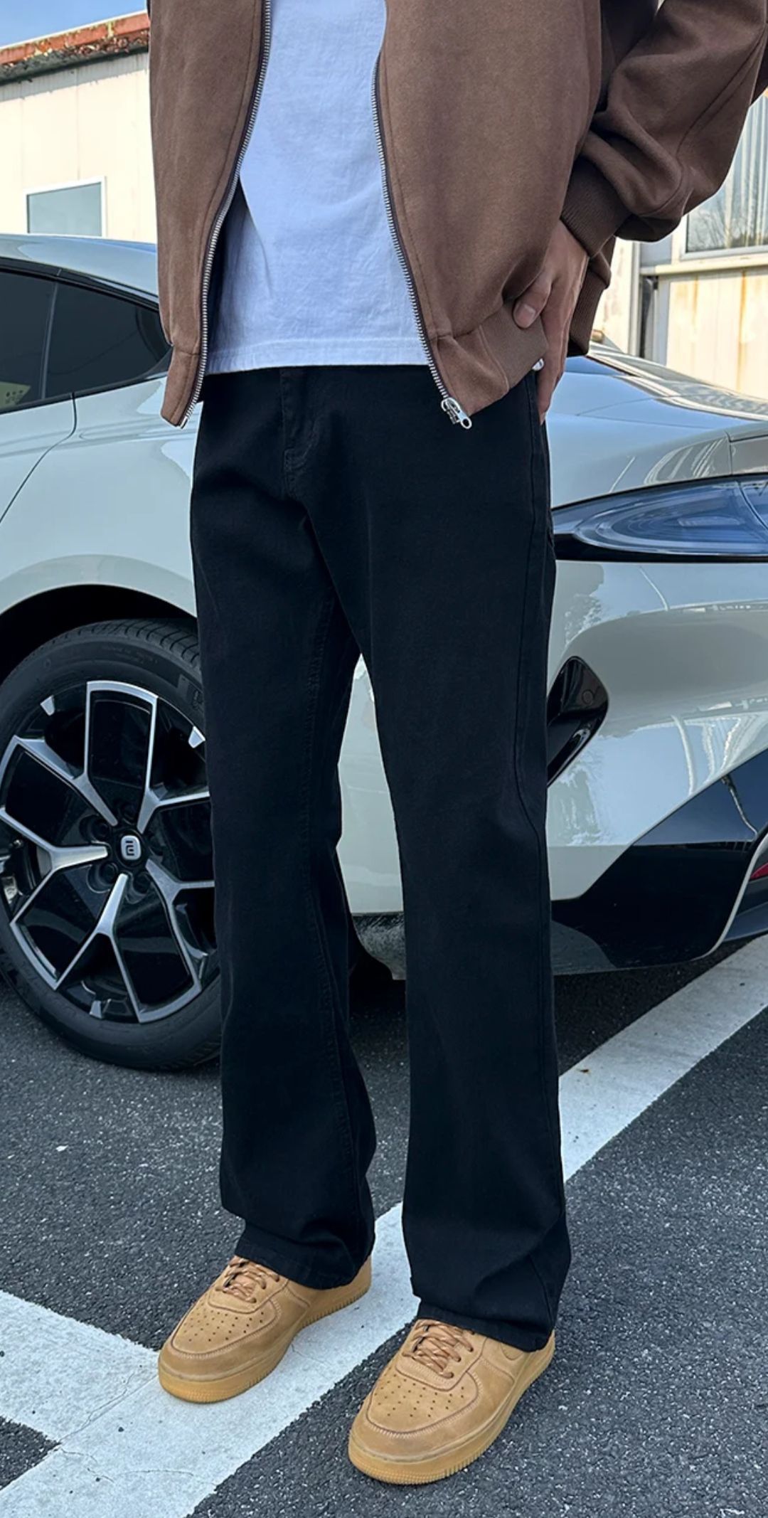 阿玛尼的黑色牛仔裤版型挺正,不管直筒还是微宽松款,都能遮腿上的小肉肉,日常穿耐脏又百搭,裤脚长度刚好不拖沓。 芬迪小眼睛板鞋上脚挺舒服,不磨脚,鞋面摸起来软软的,鞋侧的“小眼睛”标志很特别,不会太花哨,和黑牛仔裤搭着特别清爽。 整体就是简单好穿,配白T恤、基础卫衣或者普通外套都合适,出门逛街、上班通勤都能穿。