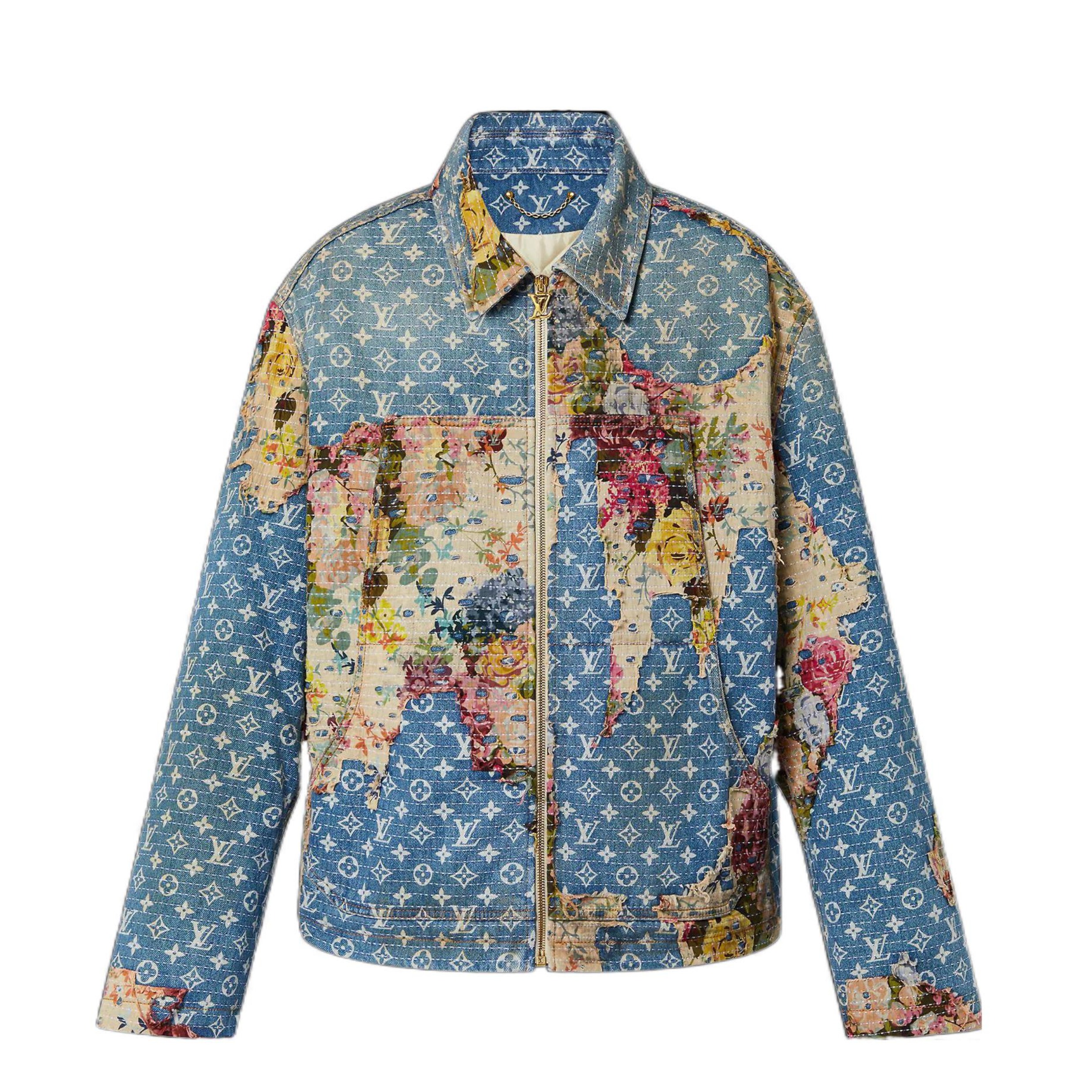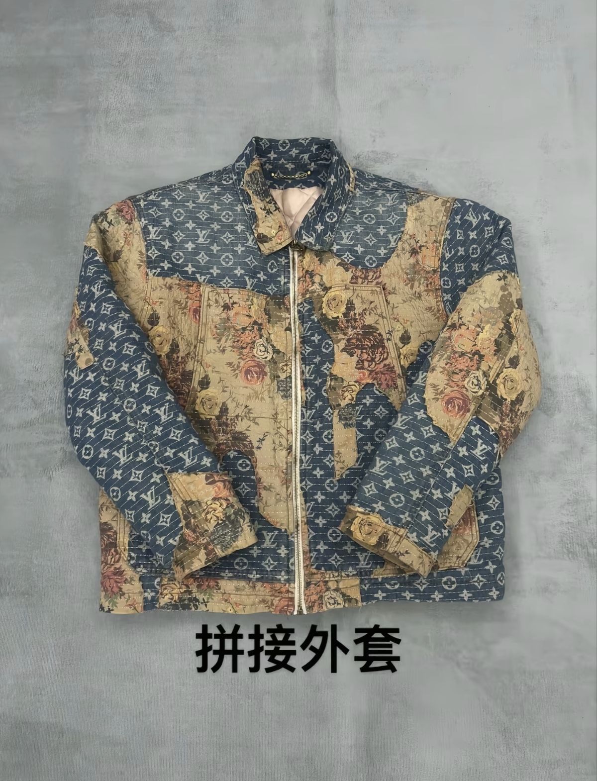 LOUIS VUITTON Logo图案印花拼接长袖牛仔外套 男款 蓝色