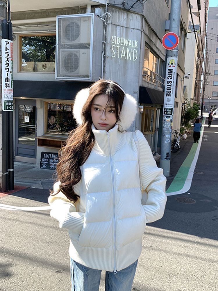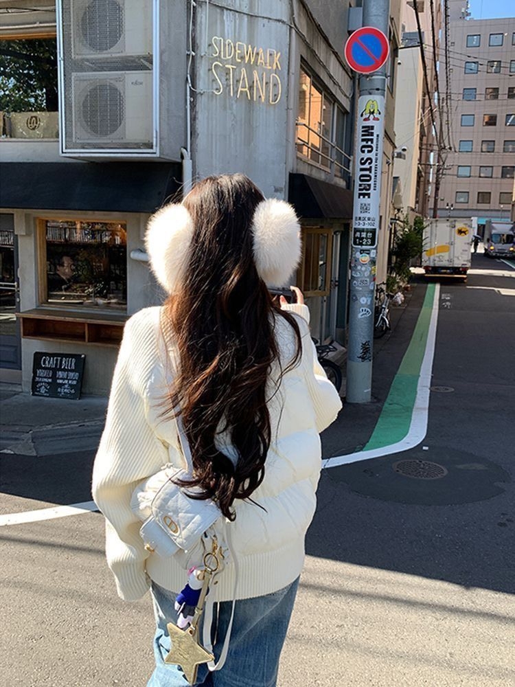 谁能拒绝这件“冬日氛围作弊器”外套啊!米白针织+羽绒拼接的设计太会了——针织部分暖糯亲肤,羽绒面蓬松挡风,拉链一拉连高领都省了。搭配大毛耳罩,软乎乎的质感直接把甜妹buff叠满,配浅蓝阔腿牛仔裤,松弛感和精致度同时拿捏。 不管是通勤赶早八,还是周末街拍约会,穿它既不用在保暖和好看里二选一,走在街上还能收获路人眼波攻击。现在入这件,整个冬天的时髦保暖全被它承包!