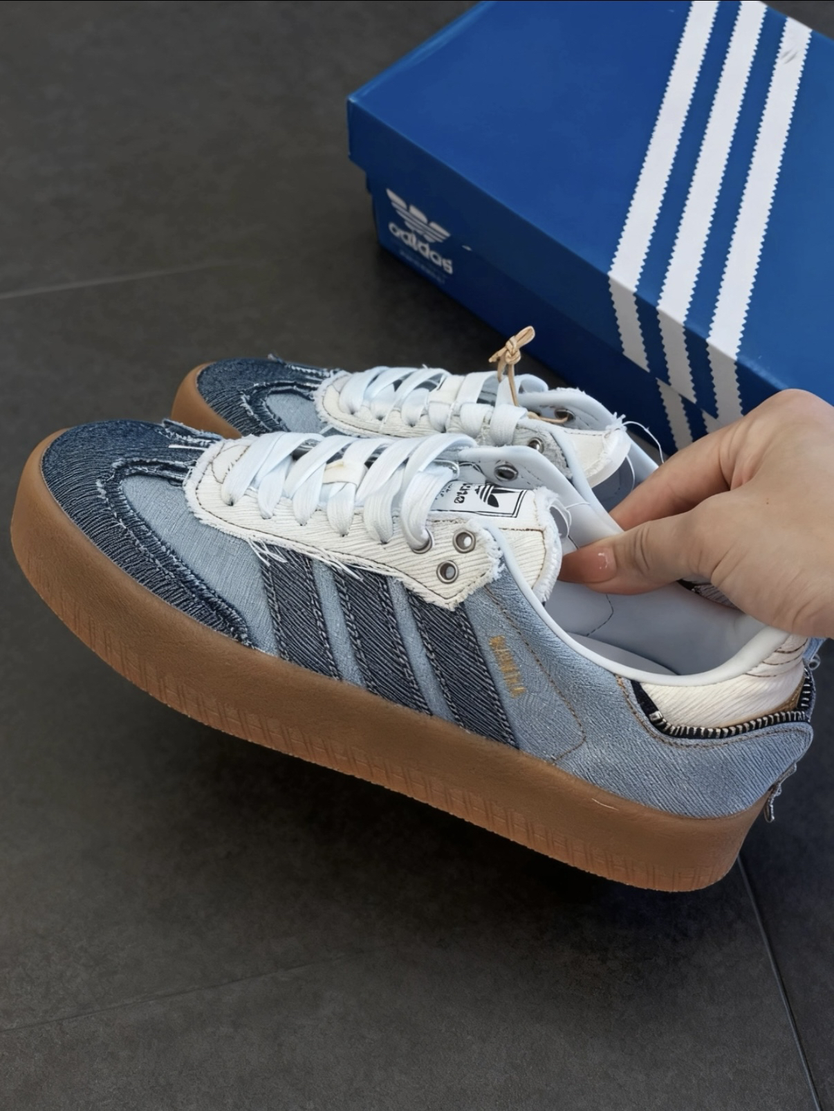 🌟我最近入手了一双超火的牛仔德训鞋,真的太好穿了!蓝色和白色的牛仔布打造鞋面,毛边处理的细节,让鞋面看起来层次分明🤩 后边的三叶草金属拉链独具个性提升质感,穿了一天脚感不错,真的很好搭,是最近ootd绕不开的鞋子