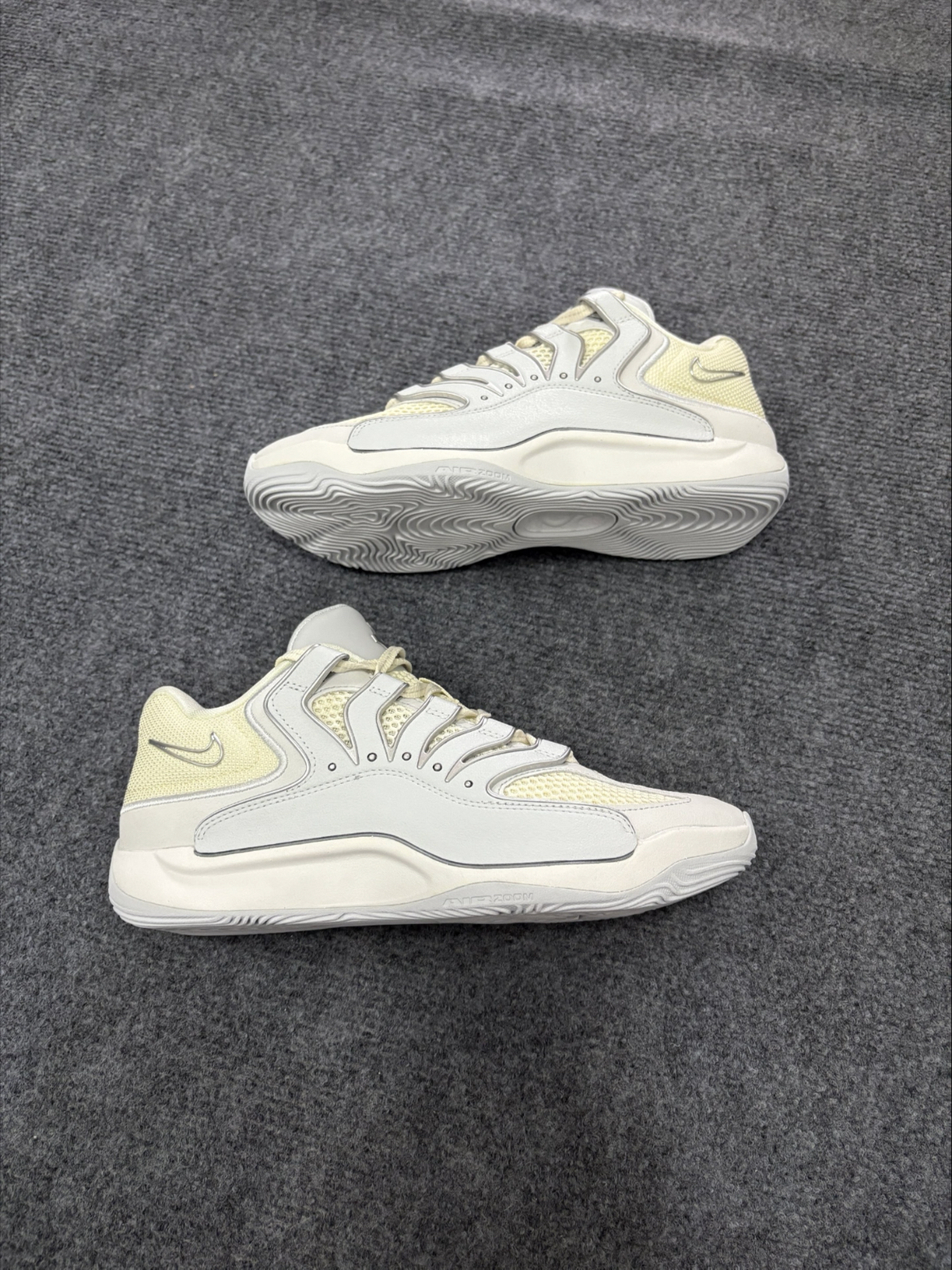 今天分享杜兰特 KD 18 EP球鞋👟 灰白干净配色➕侧面龙骨设计🤩 颜值在线,包裹性与防侧翻还是比较强的😊 网面鞋身透气性挺好的,没有感觉到闷脚 尺码不偏,正常即可