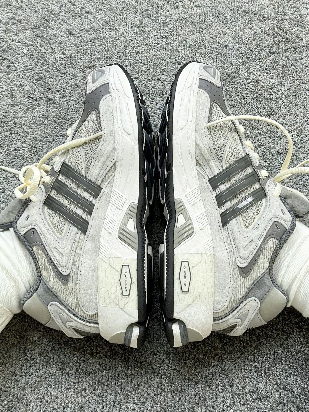 上个月入手了一双阿迪复古风老爹鞋,给大家分享一下我的真实体验~ 第一次是在网上看到这款鞋,到手真的没让我失望。灰色的配色很复古,真的很适合冬天。鞋面是麂皮+网面➕的拼接,透气性功能不错,夏天穿也不怕闷脚~ 上脚的舒适度还不错,软软糯糯的,上班通勤逛街都挺适合。鞋底大概有2-3cm的内增高,对于矮个子的女生就很友好了~ 日常搭休闲裤、牛仔裤、运动裤、浅色裙装都是比较好搭的。不过有个小缺点,就是老爹...
