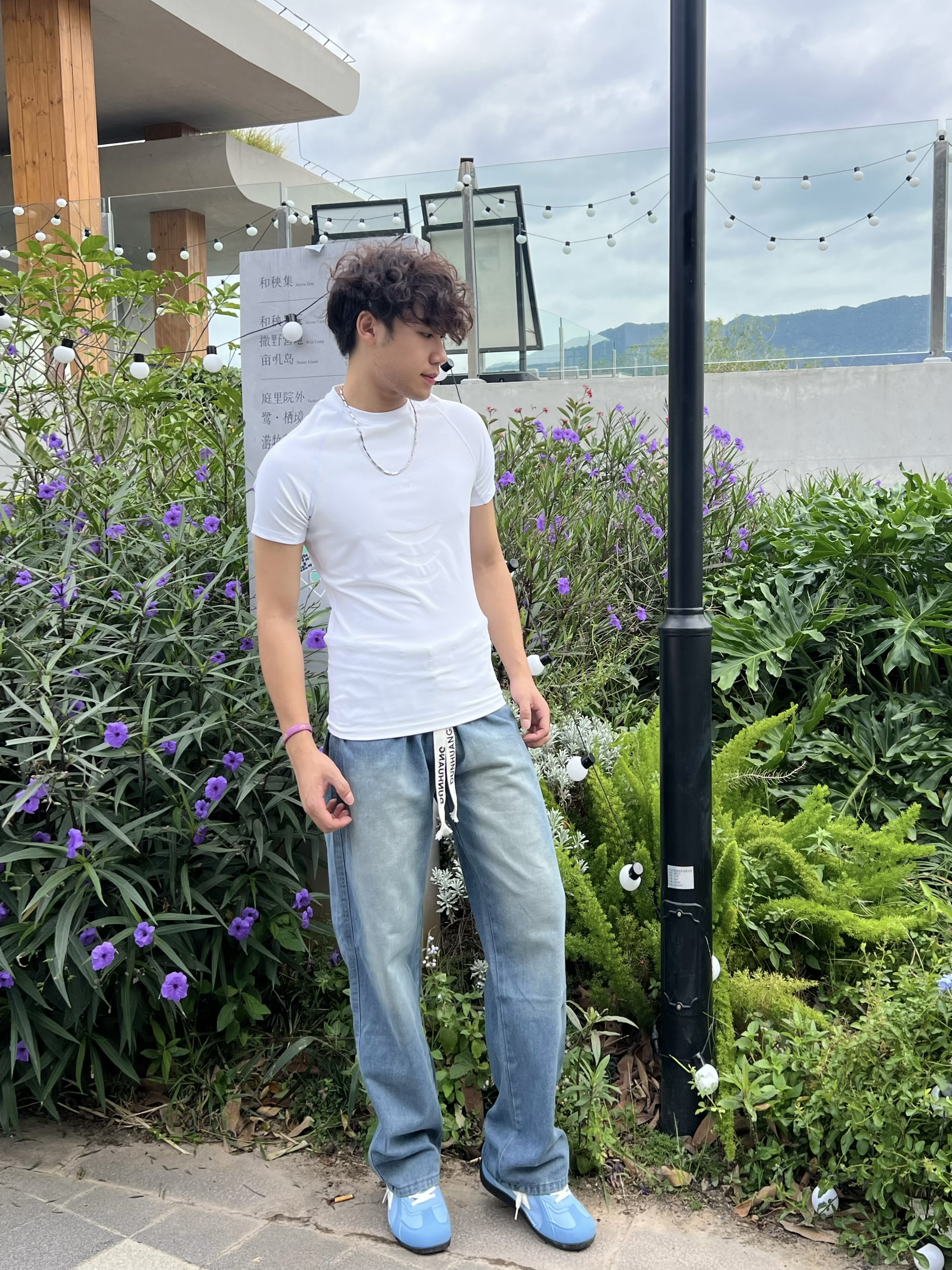这件白T的质感真的赢麻了!修身但不勒肉,面料软乎乎还透气,胸口的暗纹细节直接把简约变精致~阔腿裤是浅蓝水洗做旧款,垂感巨好,走路带风还藏肉,抽绳流苏一整个潮住!项链+浅蓝鞋首尾呼应,随便一搭就是清爽少年感,舒服又耐看的穿搭才是yyds✨
