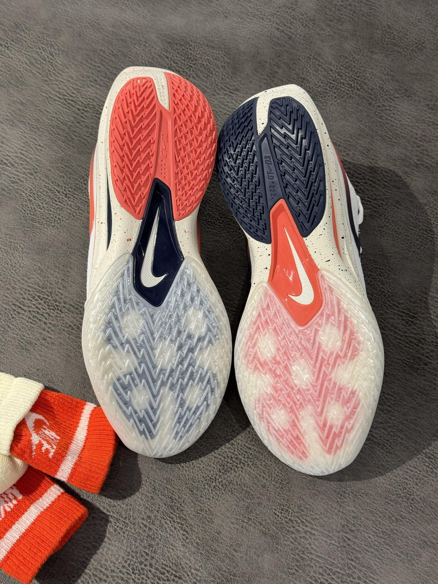 这双是AJ最新实战篮球鞋,整体走极简「奶白+浅灰」配色,鞋身点缀冰蓝色飞人Logo,鞋边的泼墨细节让干净的色调多了点随性质感~ 配置直接拉满:中底标着“ZOOM”,脚感软弹又有支撑力;鞋面是透气网布+顺滑皮革拼接,夏天穿也不闷脚;鞋底的波浪纹路抓地力超稳,不管是打球还是日常出街都适配~ 鞋舌处的“G+篮球”刺绣(应该是球员专属标识),加上后跟的艺术化飞人标,细节感直接戳中潮人审美!现在这双...