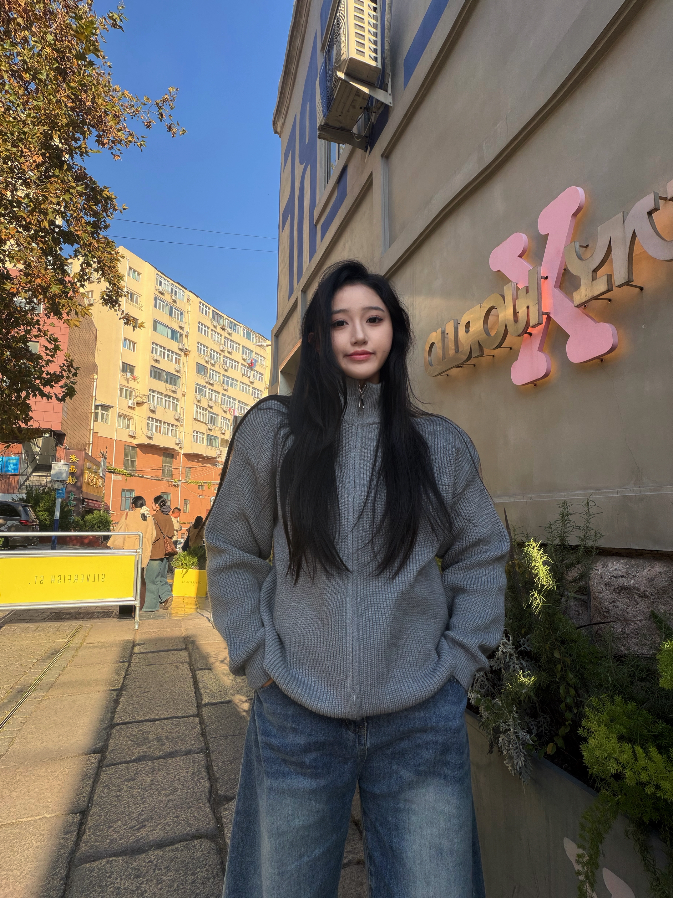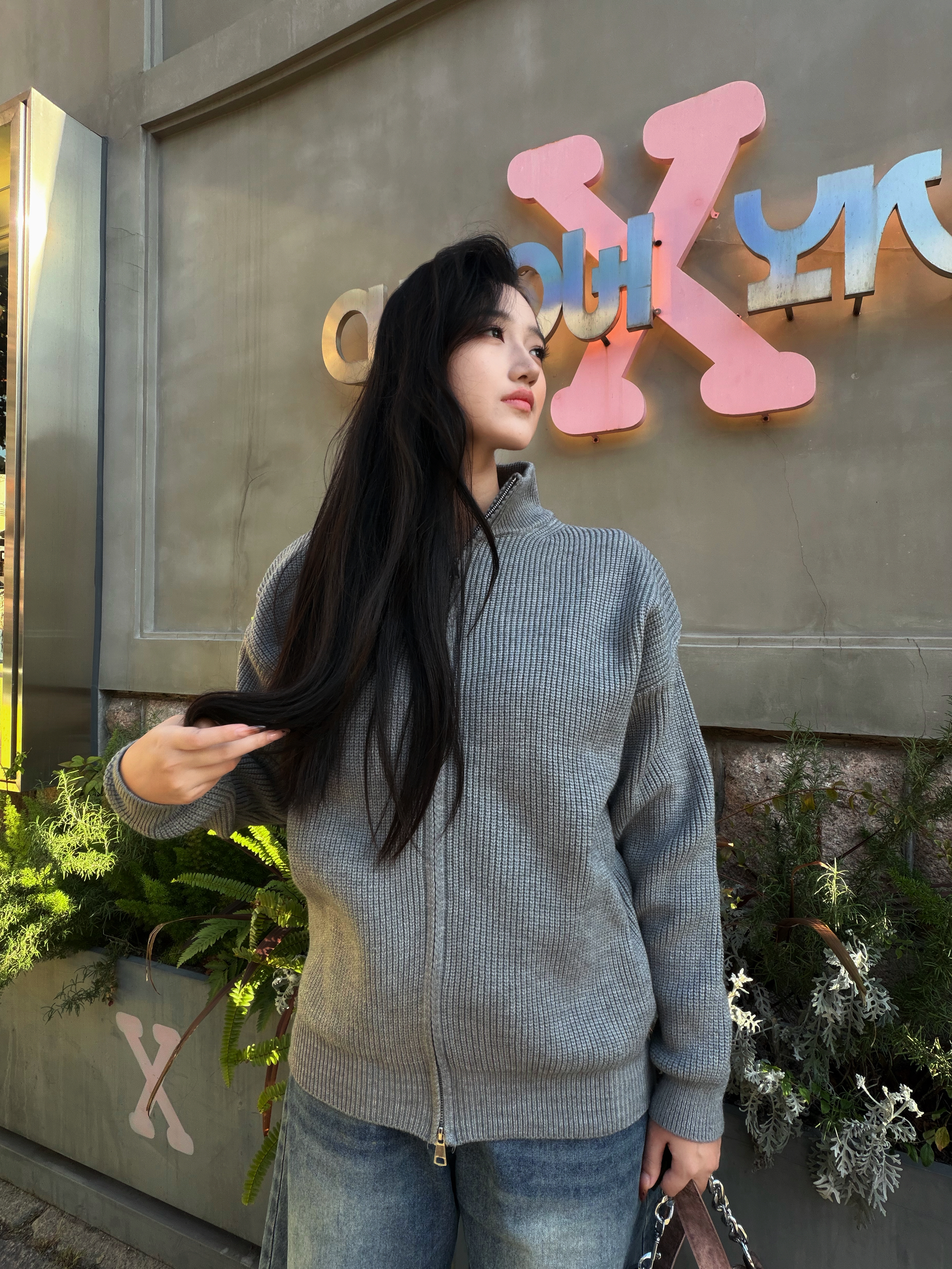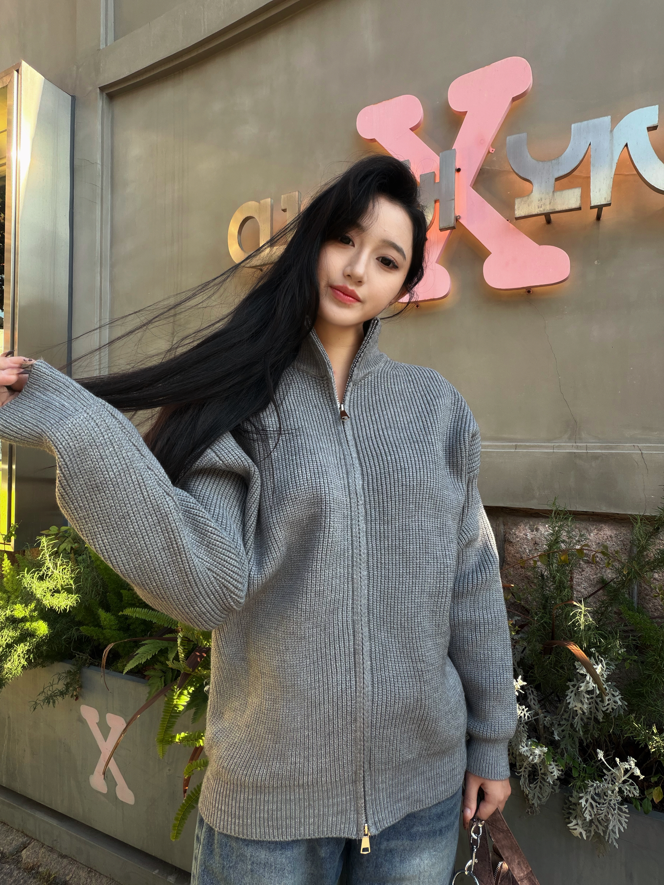 登登,今天出门穿上这毛衣外套,发现出片又舒服😌 腈纶混纺的面料软乎乎的,贴肤像裹了层云朵☁️ 不闷汗还抗风,秋冬穿刚好舒服~ 立领+双开拉链设计,冷了拉紧保暖,热了半开露锁骨,一衣两穿太会了! 搭配阔腿裤,cleanfit松弛感直接GETGET❤️❤️ 男女同款不挑人,套上就能出门的citywalk天菜✨