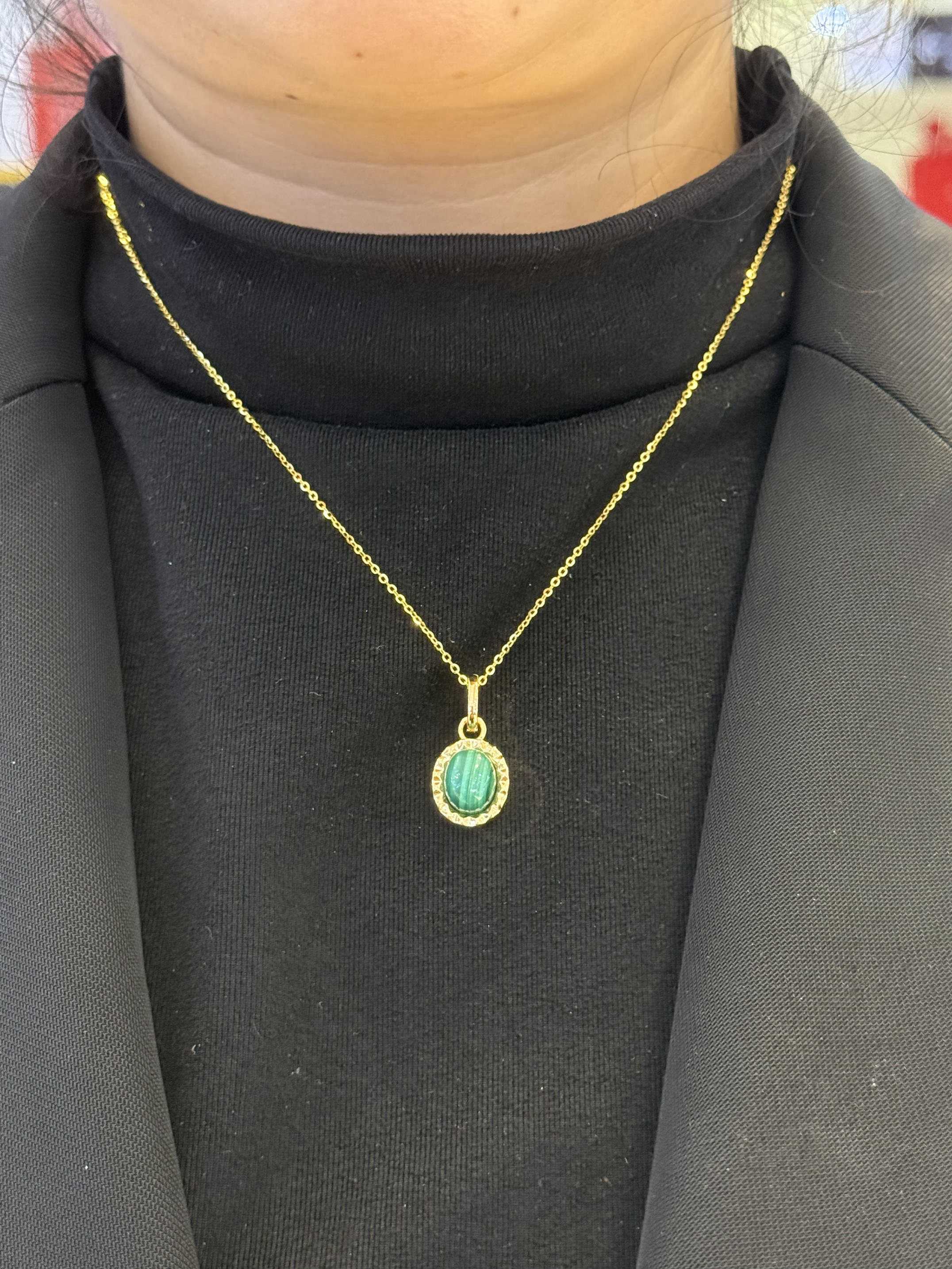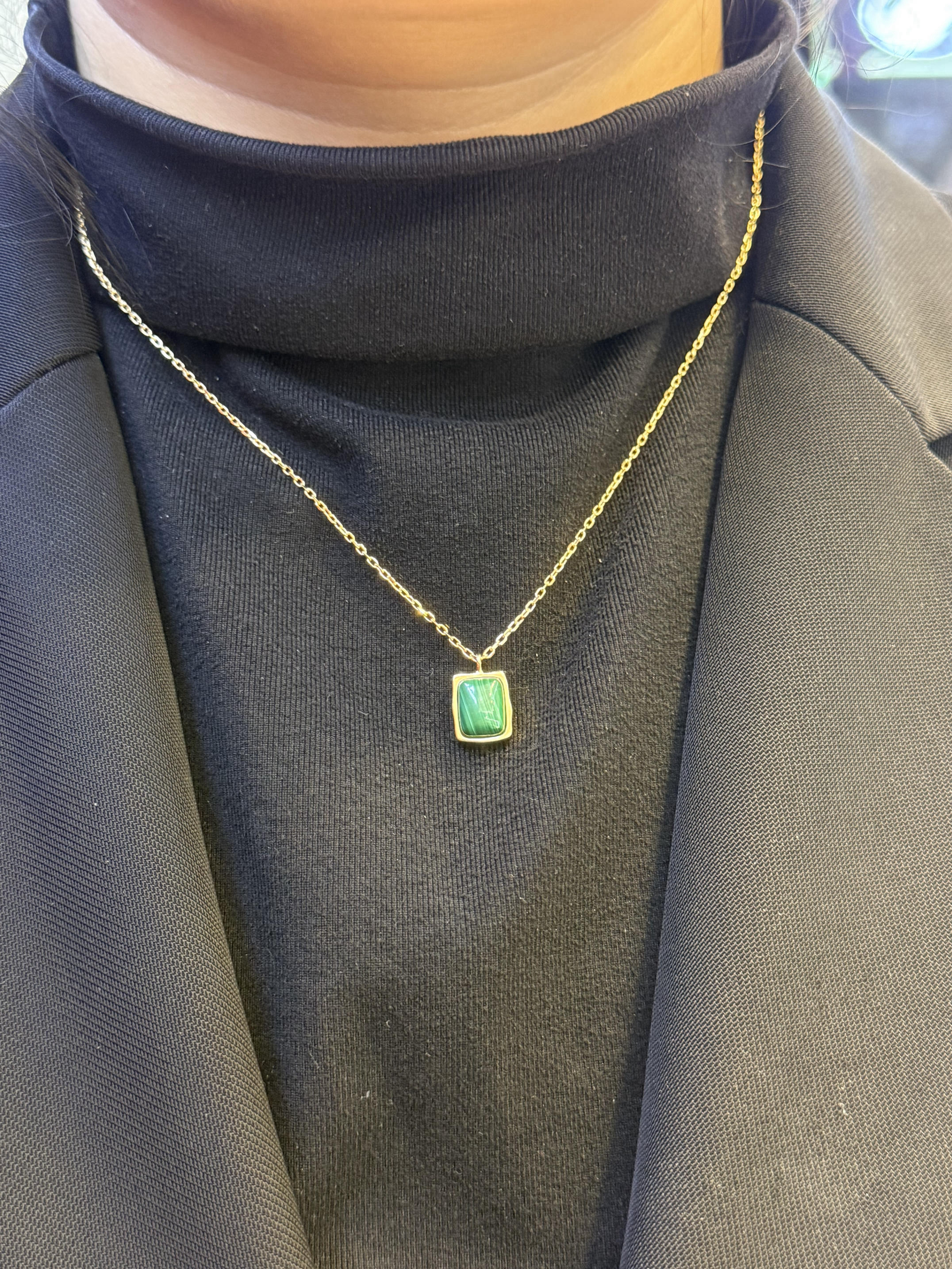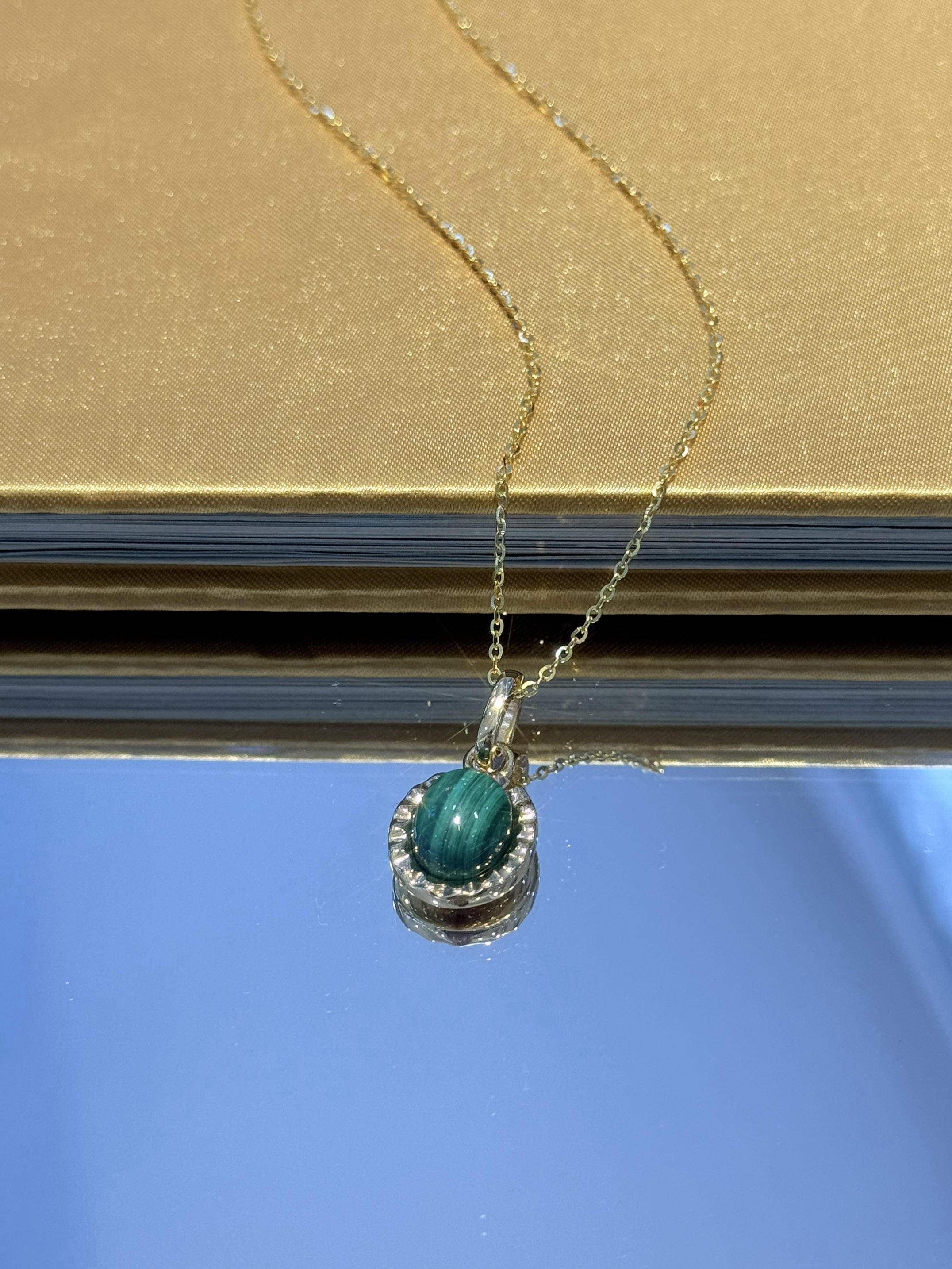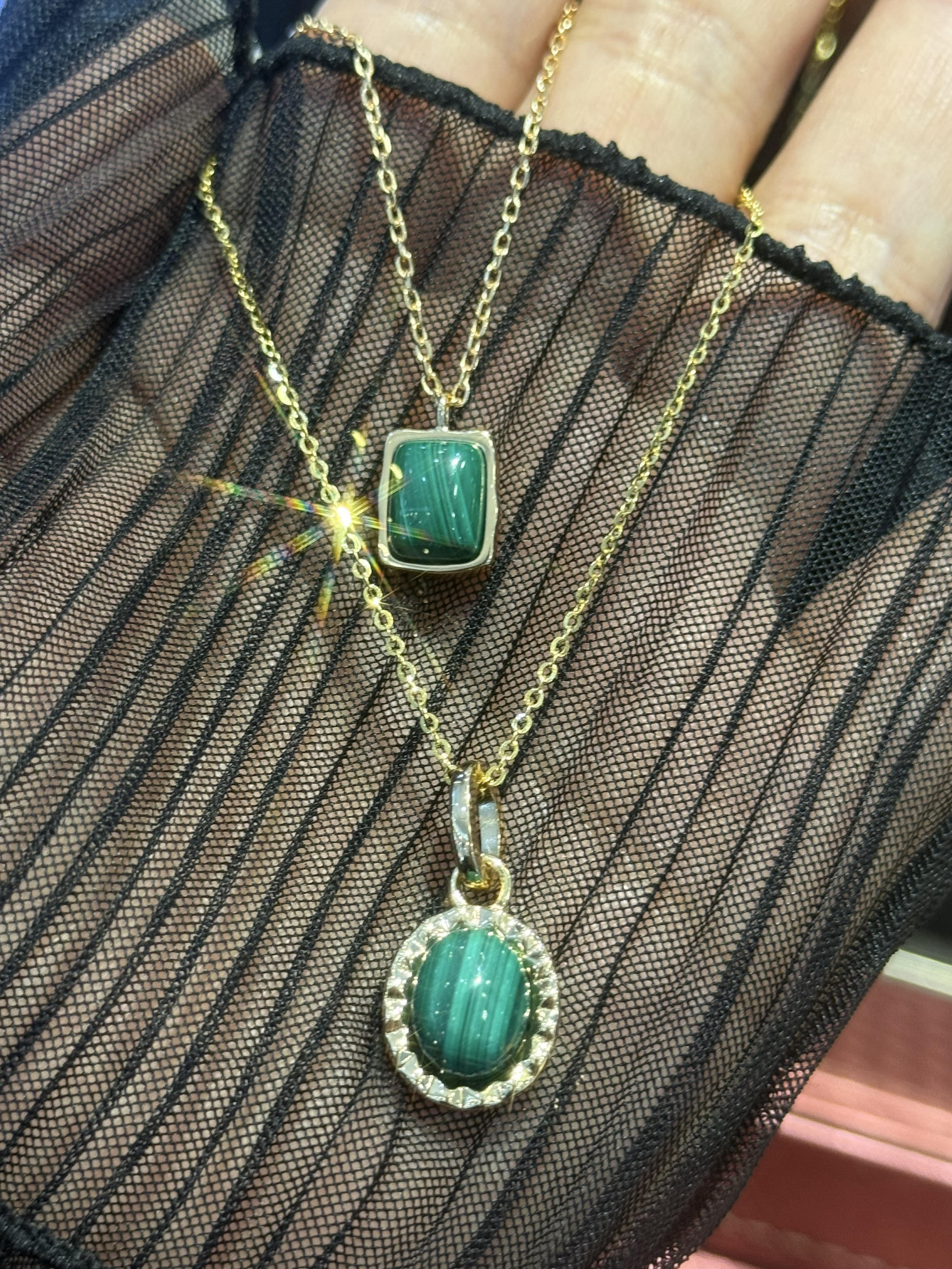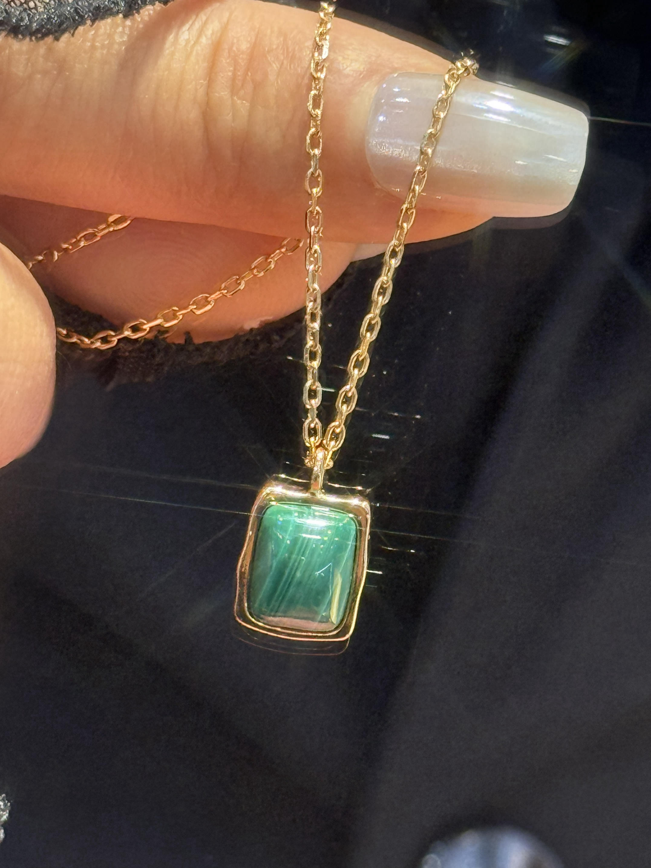 六福这条孔雀石项链一整个戳中我审美~ 金色链条+方形孔雀石,复古又精致,戴上自带低调奢华的滤镜,黄皮也能衬得气色超好! 上班搭针织衫温柔通勤,约会配小裙子氛围感拉满 大家都喜欢什么样的项链挂坠呢?欢迎评论区讨论一下。