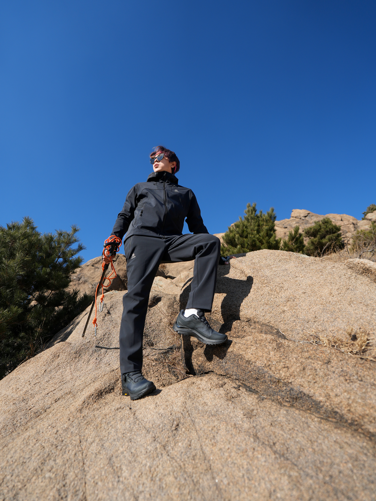 本来可以睡一个懒觉但我偏偏就要走出去 早上5点30起床洗漱换上登山装备出发去攀登 开车1个半小时到蛇山⛰️ 今天天气很不错阳光明媚蓝天没白云 这里面山石道路沙粒比较多非常滑 坡度也是比较大 山不是特别高 上山松树🌲比较多走在松树下面感受清香的松味道 山顶风大 辛亏搭配这款 凯乐石KAILAS M8 IC-MAX户外运动登山徒步Gore-Tex防风保暖连帽 软壳衣 材质很有质感日常出街很好搭配...