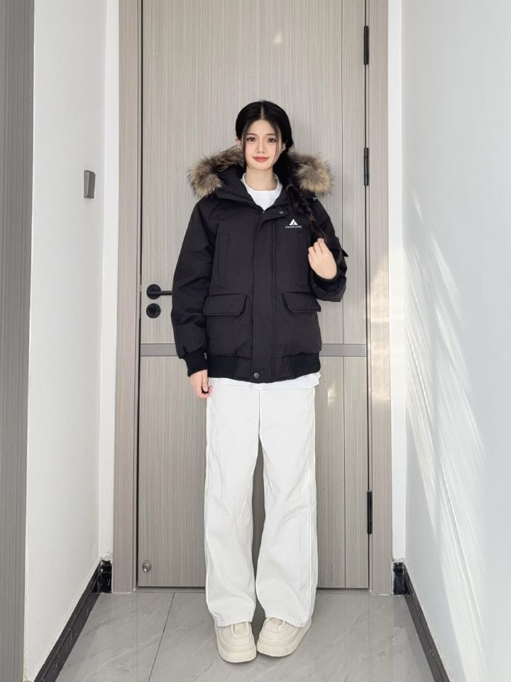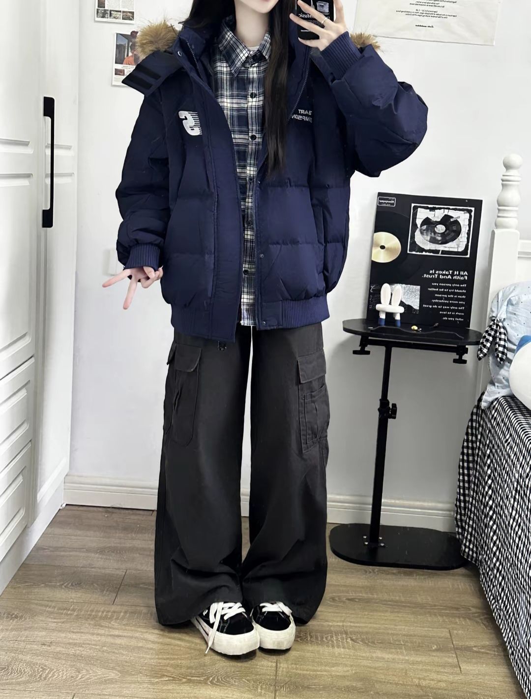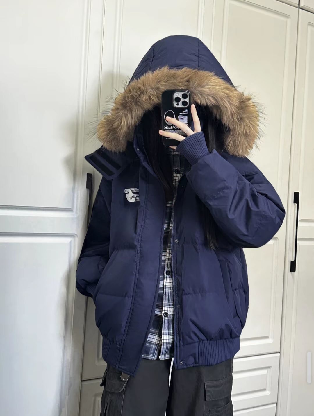好喜欢藏青色大毛领工装派克服!!叠穿yyds!!