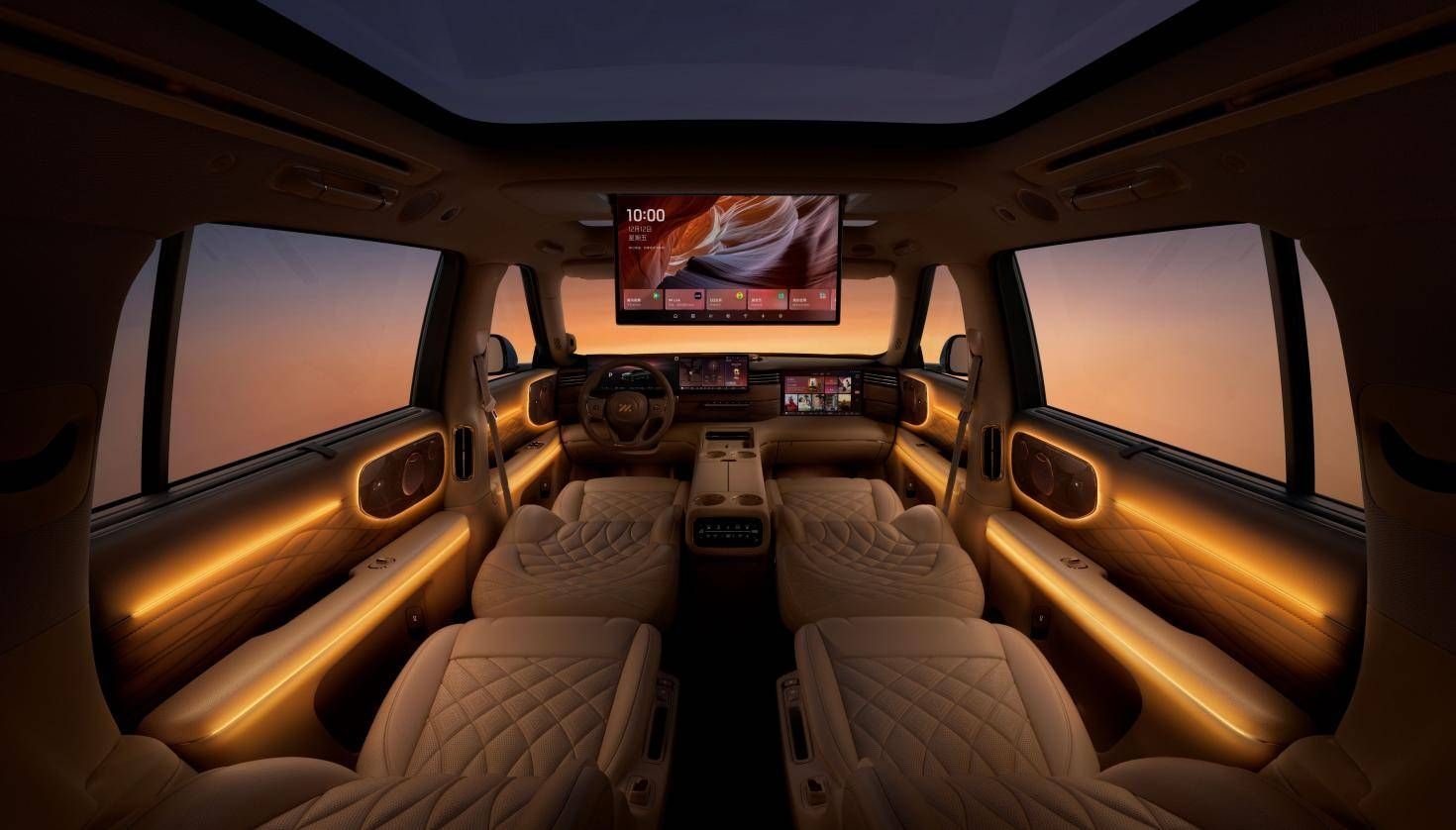 内饰配置上,智己LS9配备了27.1英寸中控屏与15.6英寸副驾娱乐屏,以及后排21.4英寸娱乐屏。并首搭丹麦B&O音响、4D机械按摩座椅、12.3L双开门冰箱、以及石墨烯后排地暖系统等奢华配置,致力于打造“移动野奢酒店”般的舒适体验。