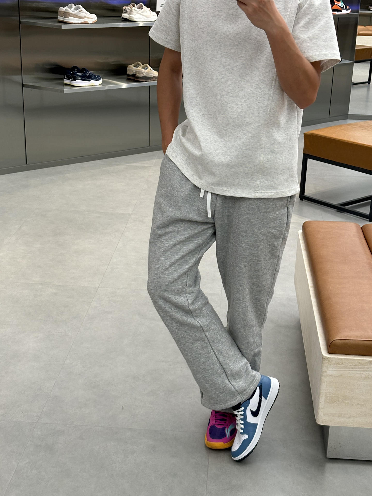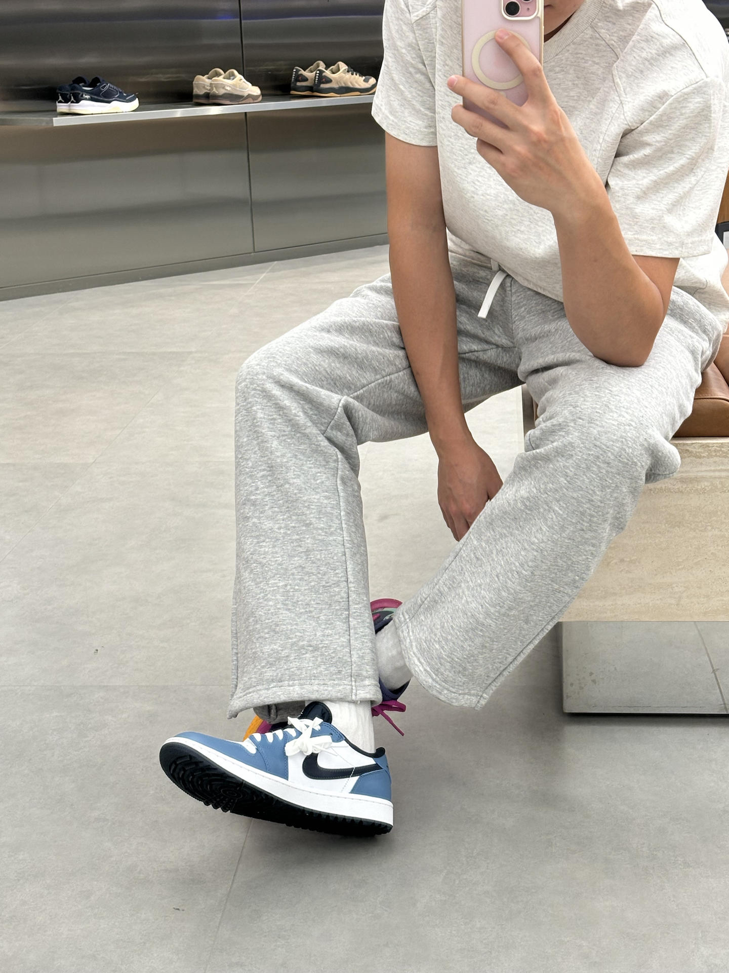 #冬日穿搭速成攻略 最近出差去广东就这么穿的 简单的太空棉短袖 搭配一点加绒直筒裤可以开叉设计 一双aj1 golf墨蓝色 就是简约还高级 学生党还有通勤都可以很舒服的一套