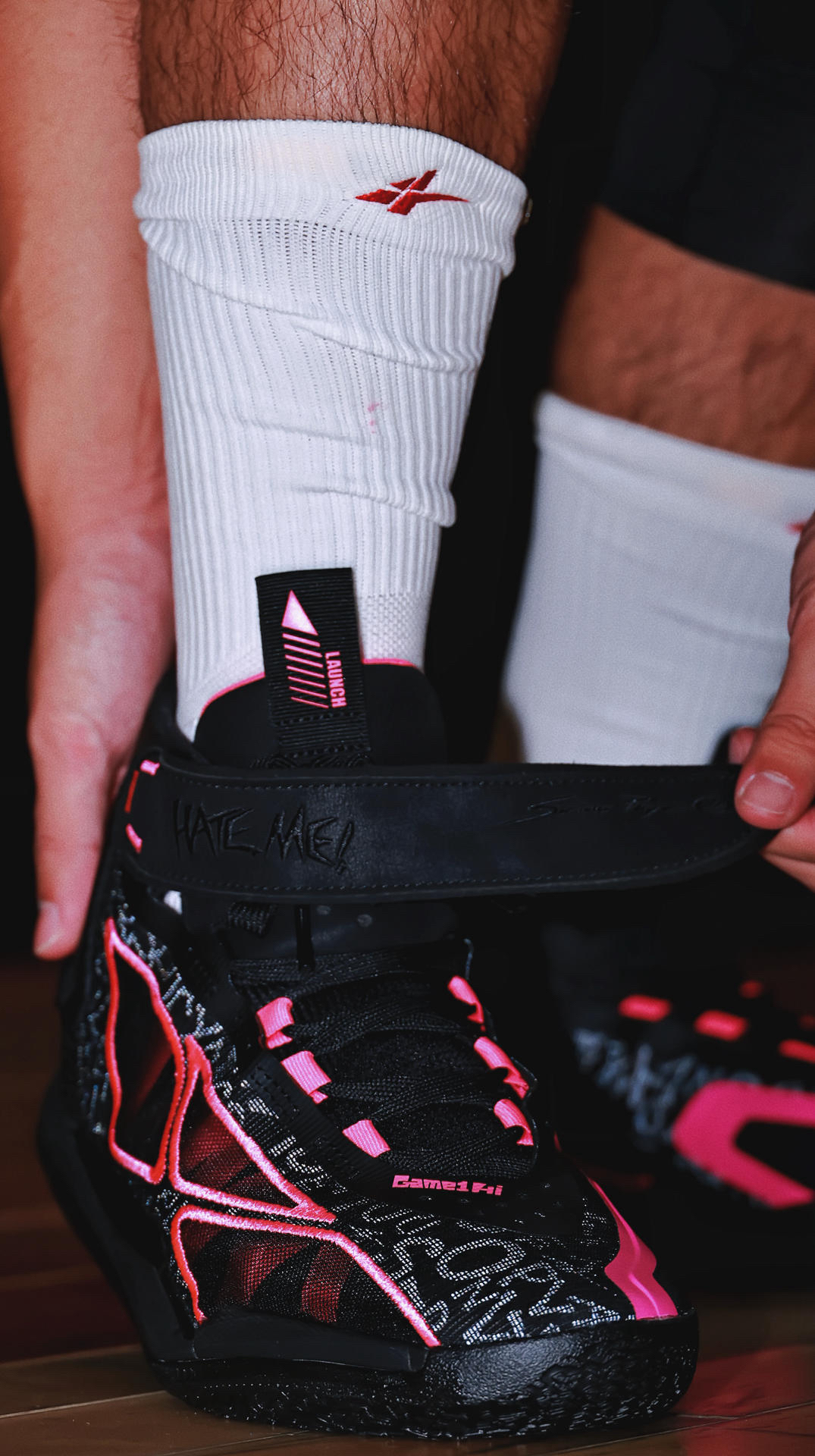 #交出你的鞋靴链接 现在篮球鞋都在往低帮轻量化卷,很难得见到像 Game1 Hi 这样专门为高帮保护性推出的鞋款,并且缓震和包裹还做得这么出色。 「包裹感:从脚面到脚踝的“专属贴合”」 鞋带一系,织带拉到帮角的设计很出色,脚面从前到中到后被贴合得很紧密,突破变向时脚在鞋里稳固不动;魔术贴采用接近水平的角度,如同给脚踝套了个“稳定圈”,蹬地起跳时无需担心魔术贴松开,即便脚腕偏粗,也能找到合适...