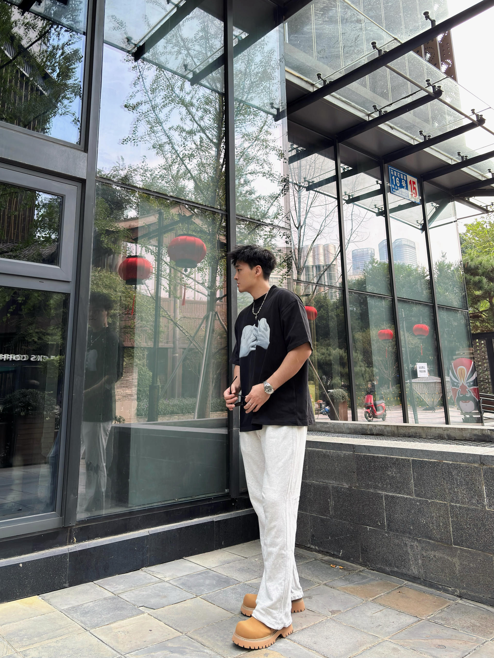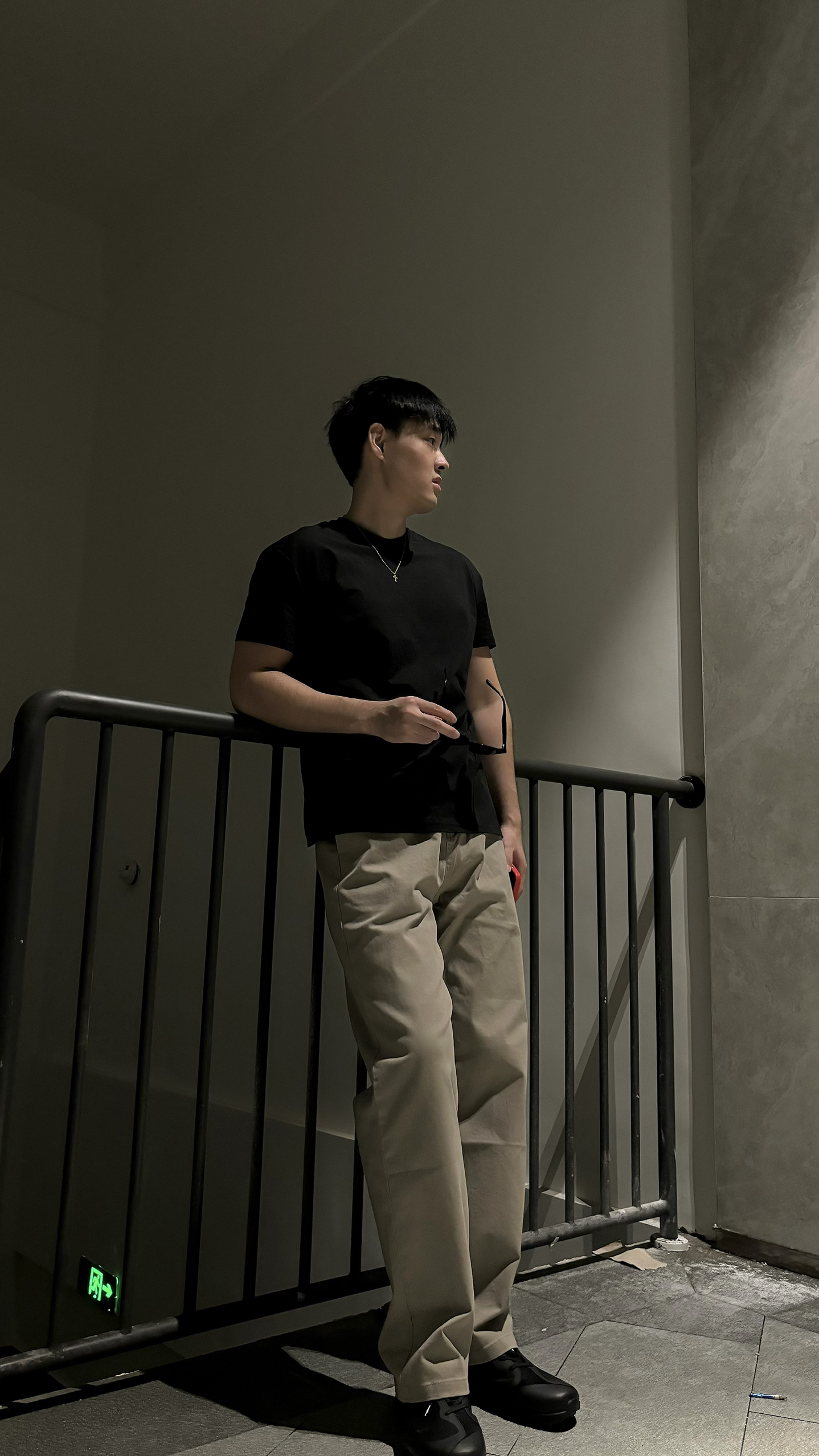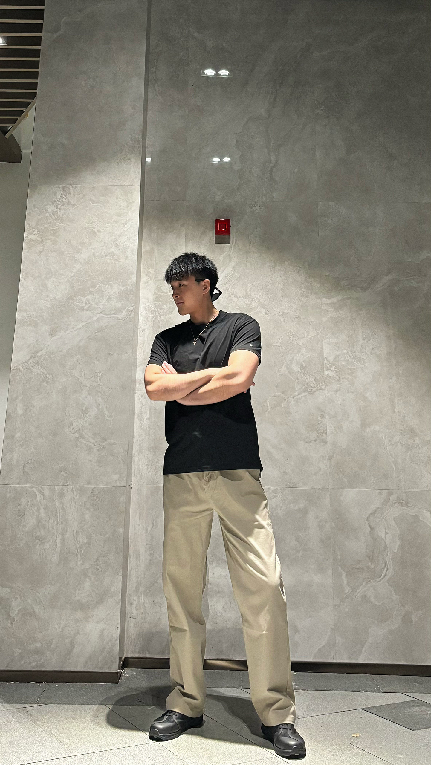 谁说简约就等于单调?这套黑棕穿搭把“高级感”焊在身上了! 黑色基础款T恤简约不简单,质感拉满还特显身材;卡其色阔腿裤自带松弛感,显瘦又显高,日常通勤、约会逛街都能hold住; 再搭一双黑色运动鞋,利落又有格调,小细节里的十字架项链更是点睛之笔~ 主打一个随性不随便,极简风男生这样穿,回头率直接拉满! #男生通勤ootd #ootd今日穿搭 #男友穿搭 #今天穿搭分享OOTD分享 #硬汉穿搭